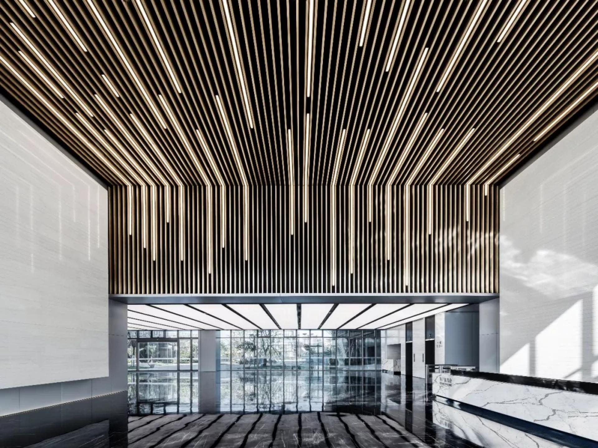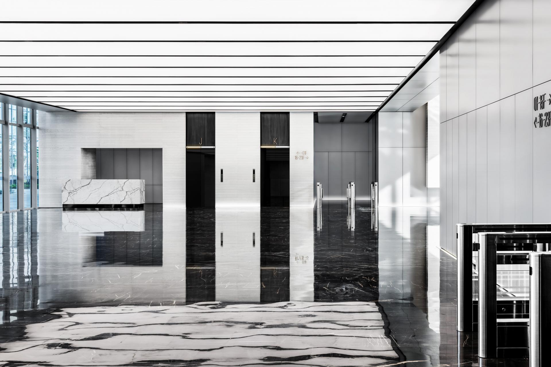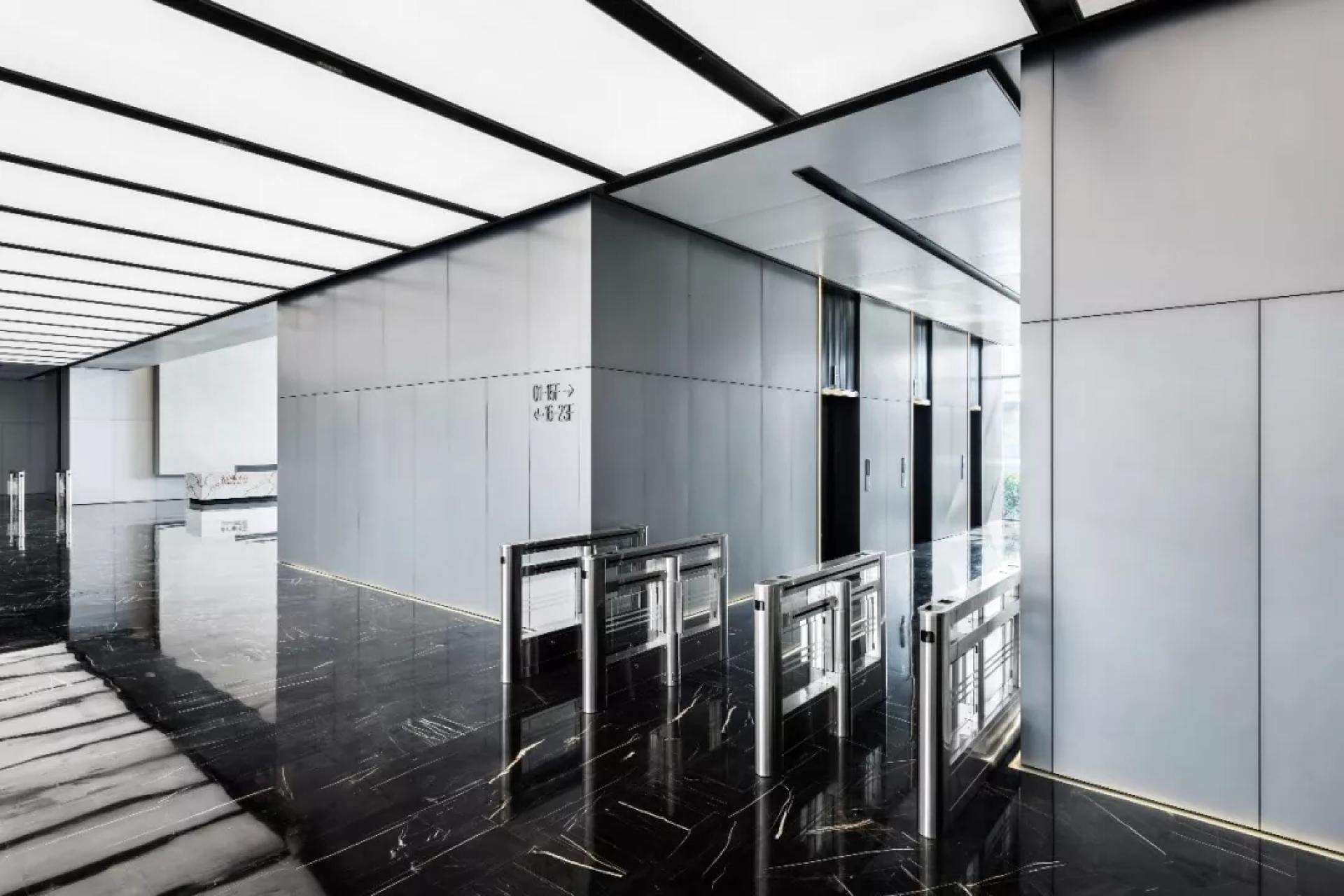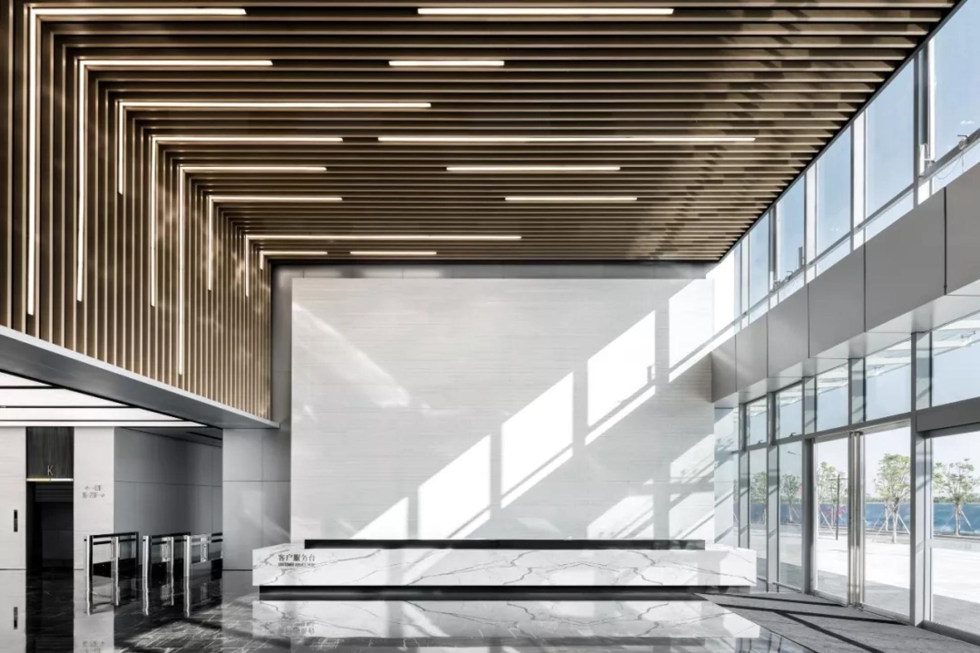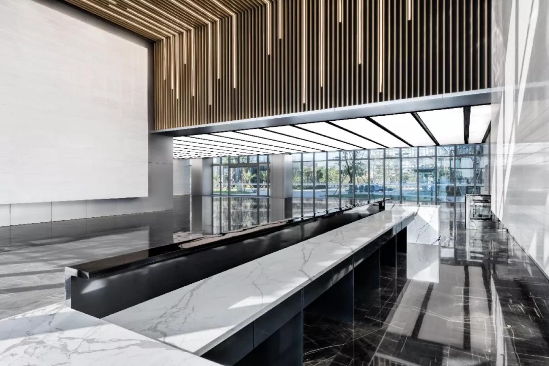Inspired by the linear elements . Against the background of fast life and fast pace, the strip and linear elements give people the feeling of "high-speed development, leading to the future". The building facade and interior lobby design inspiration also comes from this. The lines of dense rhythm contrast, and the glass curtain wall of general blocks, reflect the rapid progress and vigorous development of Nansha New Area.We set paths in different directions and a variety of experience modes in the space, and realize the concept of functional compound in the limited space. The multi-functional compound layout meets people's use needs and maximizes the value of the space. We extend and connect public Spaces with different forms and personalities. From the perspective of users and the environment, we carry out the nature and comfort to the end, allowing people to feel the spirit of places that vary from person to person and time to time in a limited space.