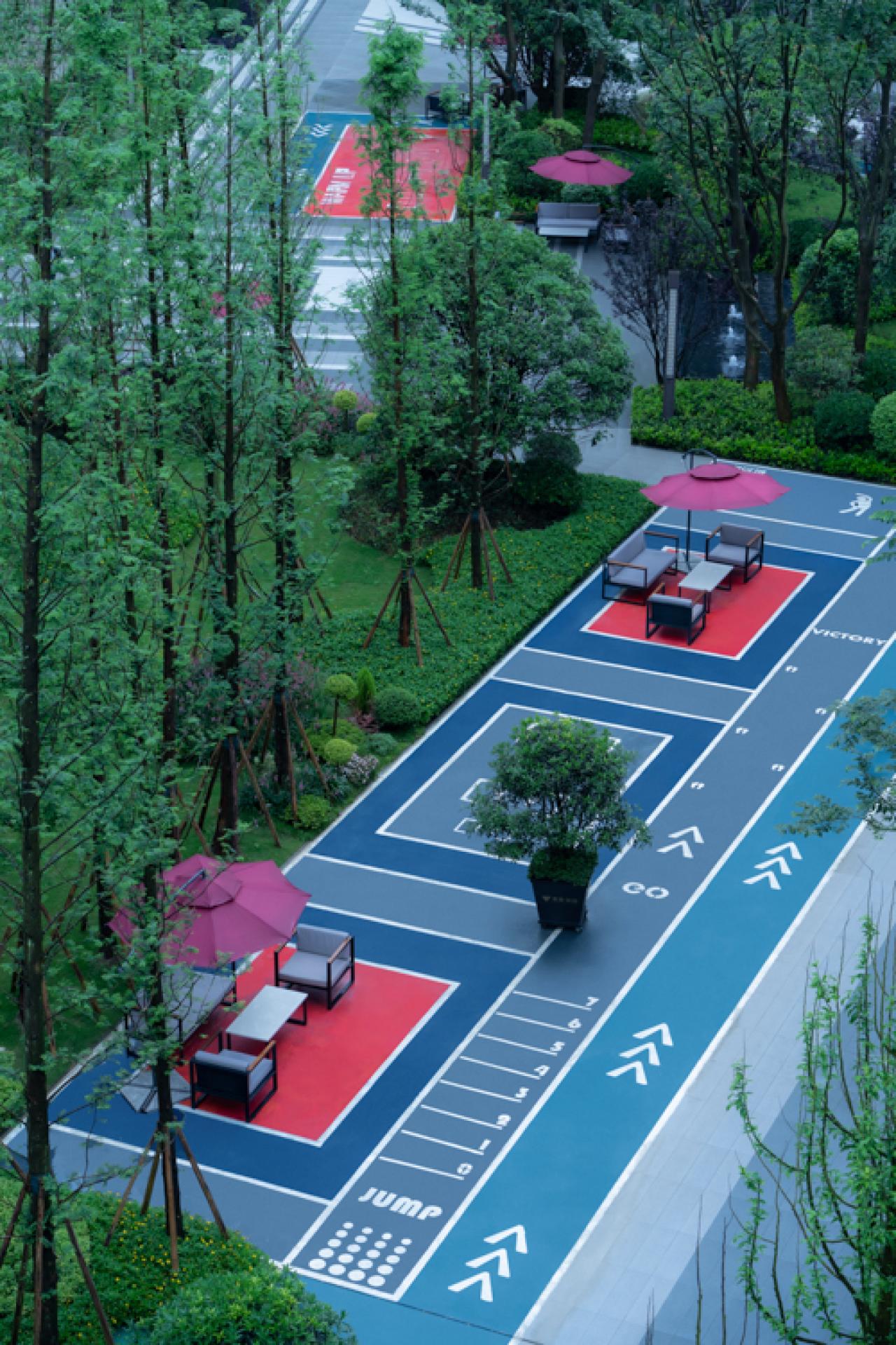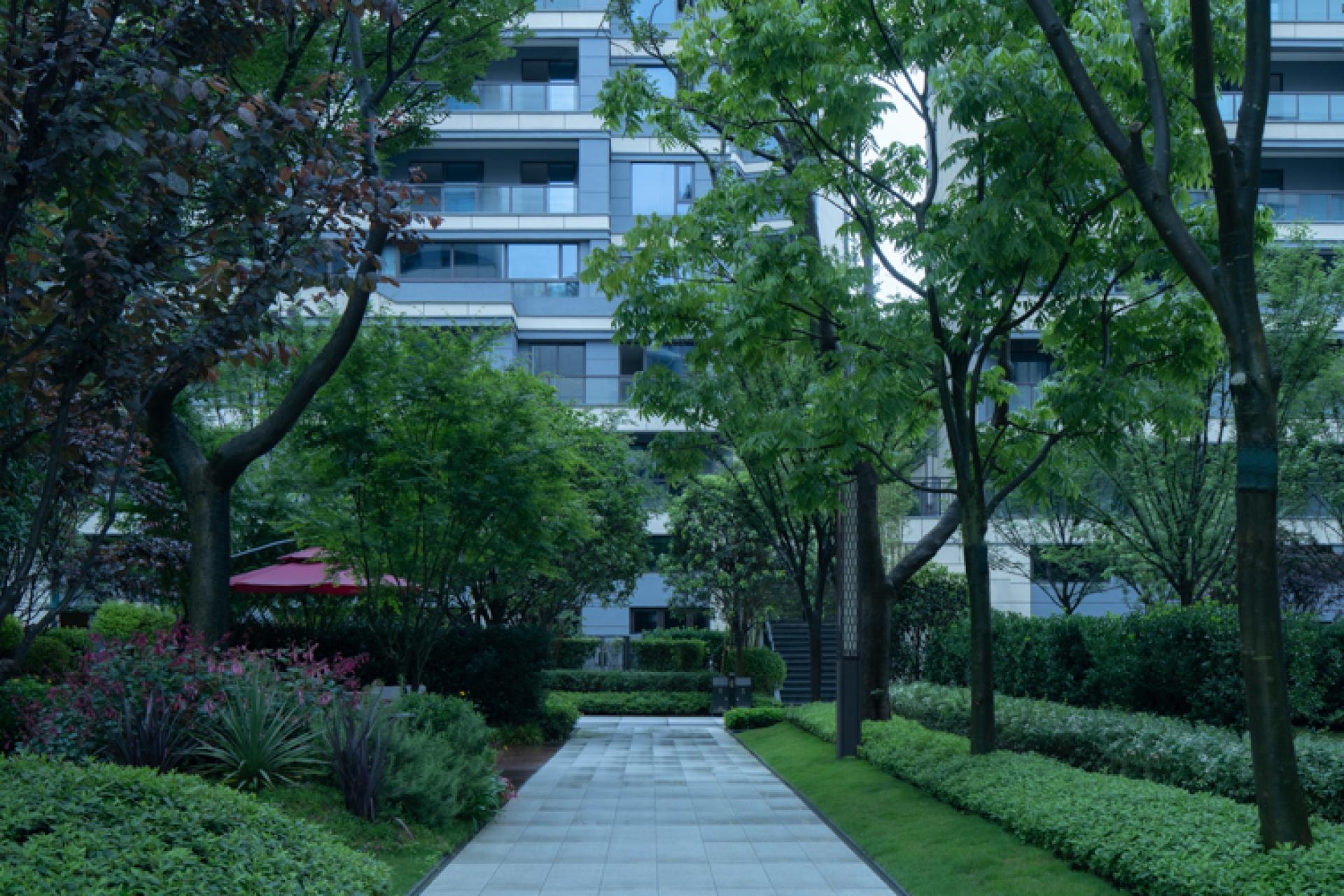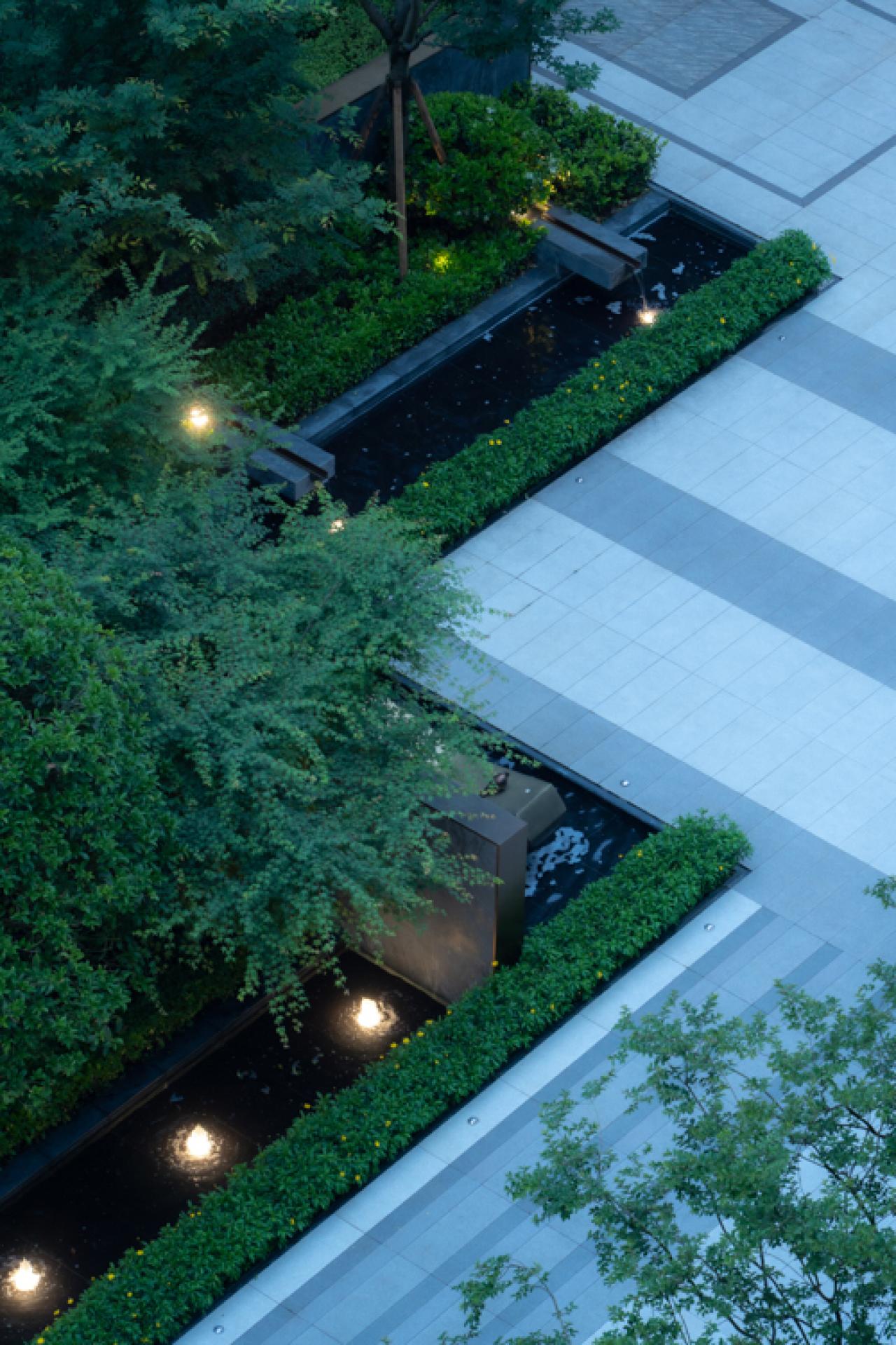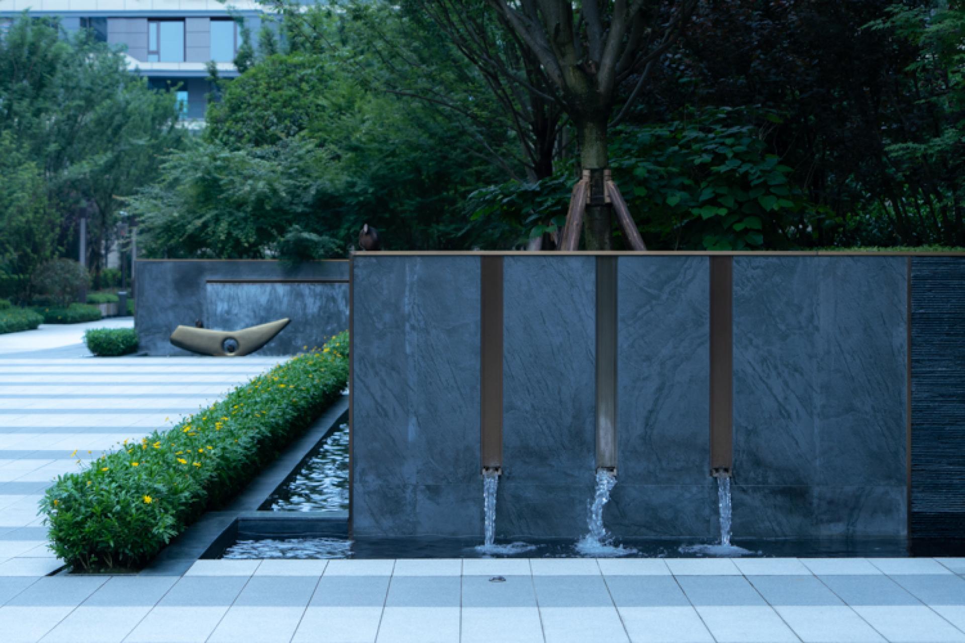 The community is built halfway on the mountain, with a hundred-meter water axis throughout the area. The selective beeches on both sides set the main tone for greeting visitors, and the whirling forest shadows are so bewitching. You can shuttle between the forest and the water to feel the language of the fragrant forest. The murmur of streams comes from afar, as if you can smell the dampness of the mud in the forest.