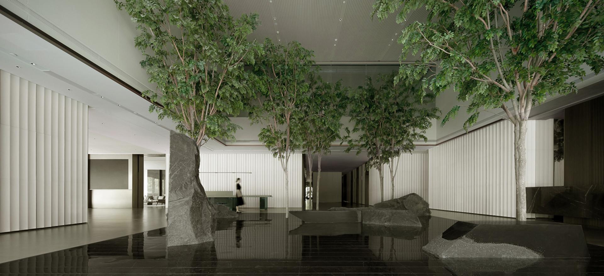 Cloud Land is one step away from Hangzhou Xixi Wetland Park, which is intended to explore the new trend of future office in the city. This time, we are also responsible for landscape design and overall interior furnishings, and have the opportunity to bring nature into the interior environment and create a "scenery penetration" that is indistinguishable from inside and outside. Cloud Land implements the three major criteria for evaluating a good garden, namely "appropriate density, complete twists and turns, and scenery in front of you". Although the visible proportions, techniques, materials, and craftsmanship are all modern, the wild, vigor, hidden nature, and hazy artistic conception you feel while walking are the spiritual connotations of oriental aesthetics. We proposed the concept of "indoor landscape" in the atrium, and suggested that the outdoor landscape should be extended to the interior to form a unity of indoor and outdoor elements, thus creating a "useless space" that is completely different from the conventional "useless space". The coherent inner courtyard is landscaping and named "The Atrium of Picking Up Memories". In the design concept of Cloud Land, the "permeable landscape" is not only a simple flow of inner and outer space, sight lines, and charm, but also includes the possibility of people, plants, buildings, and cities participating in nature. The isolated relationship is transformed into site respect, organic coordination, and artificial concessions, so as to achieve a sustainable ecological model of sharing, symbiosis and coexistence and a practical way of ideal construction.