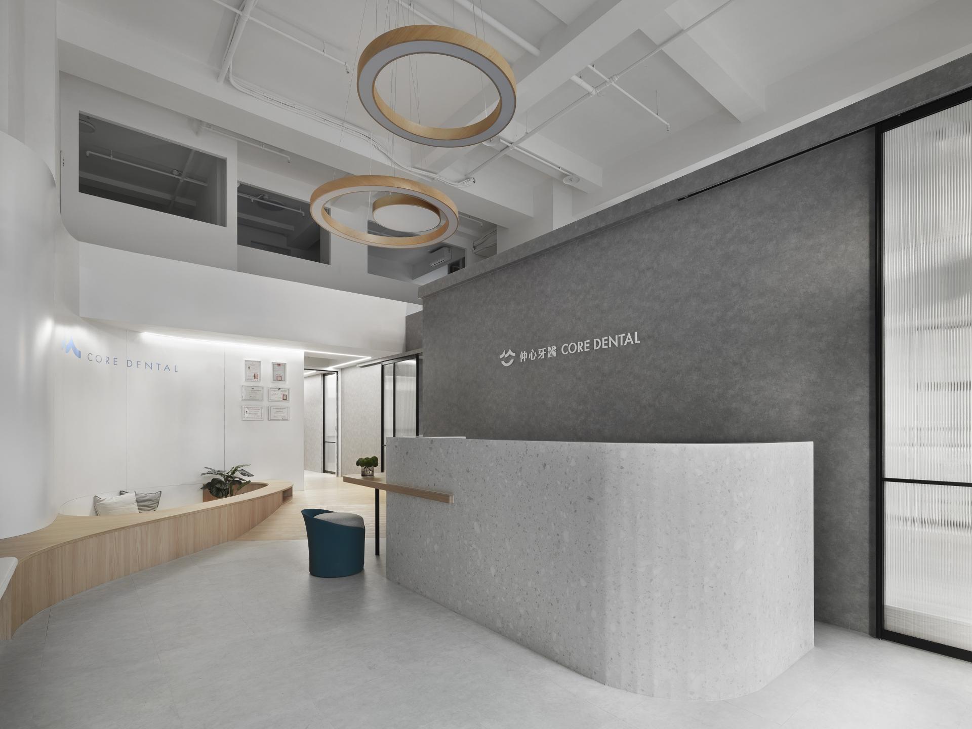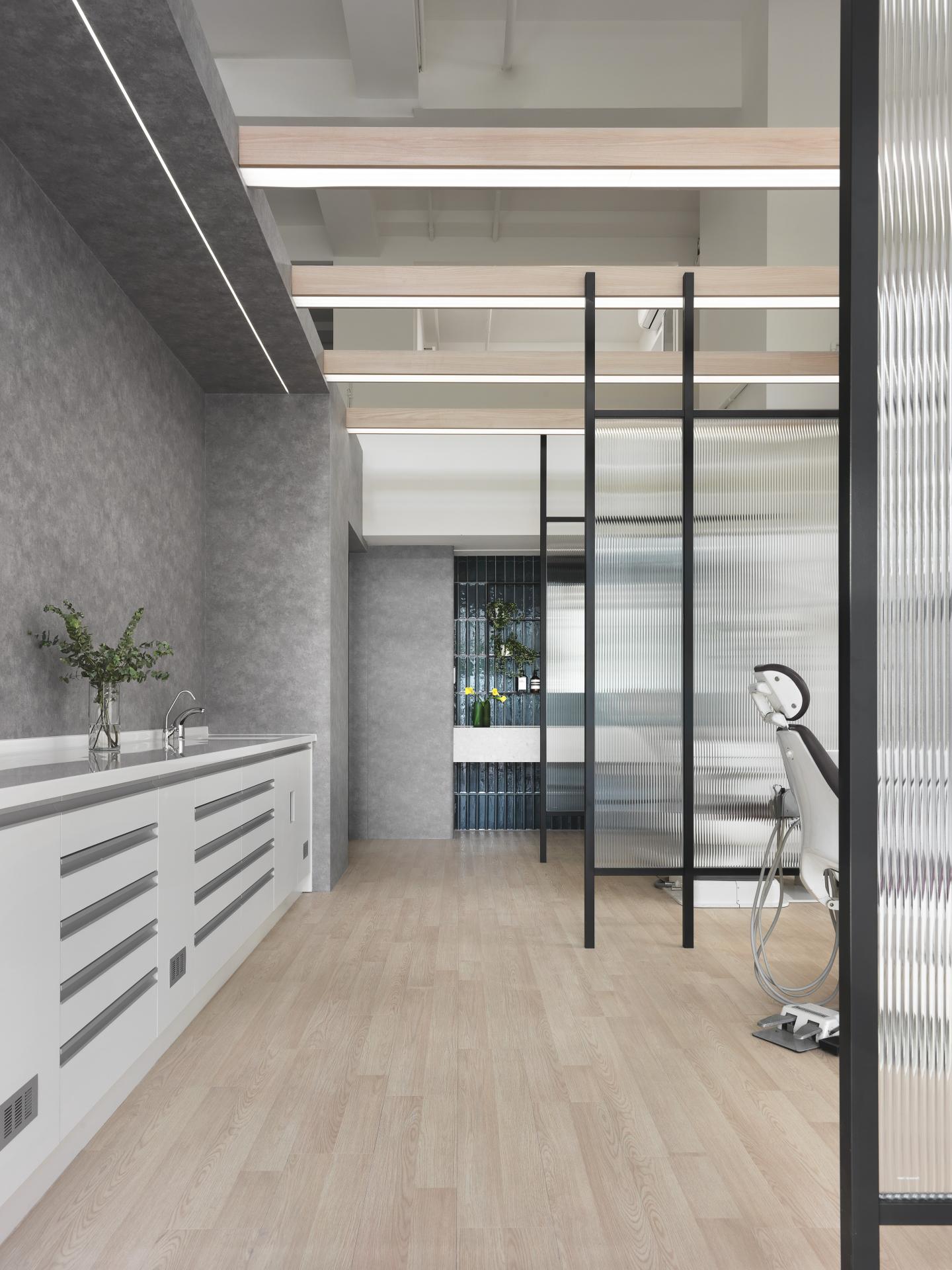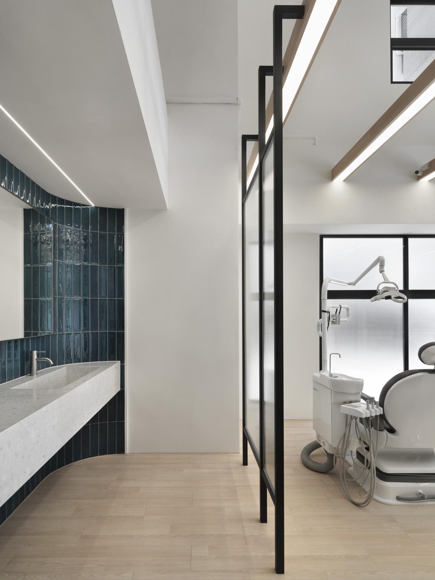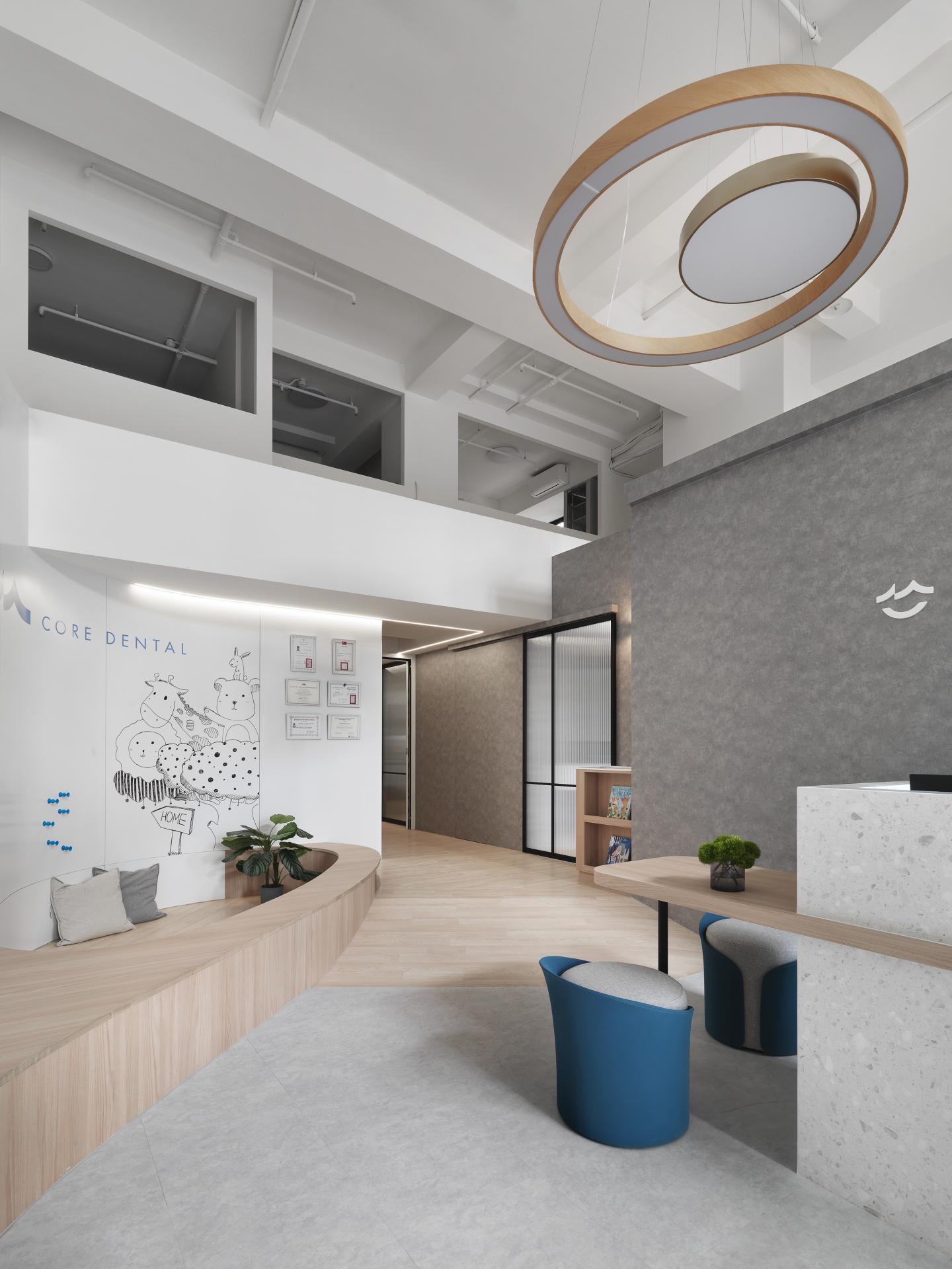 As people pursue a more worthwhile upgrade and optimization of living environment and medical care, the space planning of medical institutions is also inseparable from the experience of consulting a doctor. This case is a dental clinic in downtown Kaohsiung. The concept of "creating a perfect smile curve" creates a single-minded diagnosis and treatment experience for patients through a parent-child friendly space and people-oriented holistic treatment. It is located on the first floor of a high-rise mansion. The interior space combines the first floor and the second-floor mezzanine. From the lively street, you can see that the clinic signboard is based in blue. The large floor-to-ceiling windows form a very transparent facade, creating a bright and professional, welcoming atmosphere.