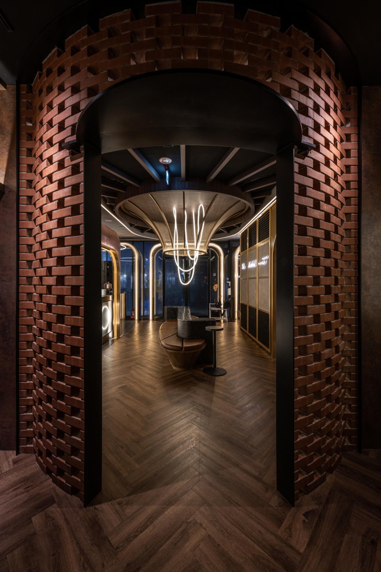 From the street outside to the light arch on the first floor of the building, it will walk through the light diffused reception counter and the performance bar as well as the lounge area; then through the red brick arch with the building history, it finally reaches the dining area made of a variety of raw materials, which gradually changes in space and time conversion, within the short distance, let the customers gradually get into the situation in both pace and mood, so that the connection between the city, building and restaurant is more interactive.