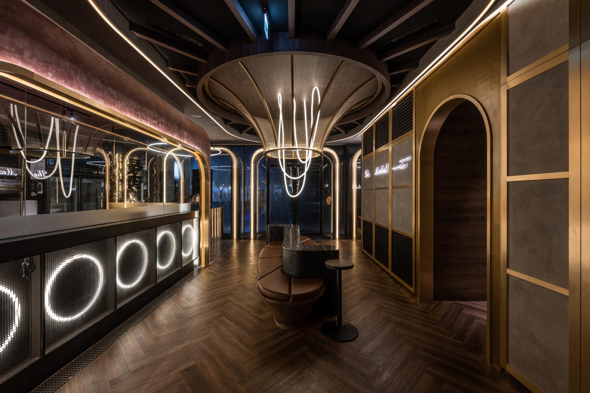 With the fusion of brand concept, this case takes the virtual images as "smoke" and "fire", and the real volume bodies as "raw material" and "bar", to integrate the four elements through a variety of virtual and real forms, presenting the adult nature, quenching sense, and unconstrained rough taste, and pulling up the sense of hierarchy and tone of space.