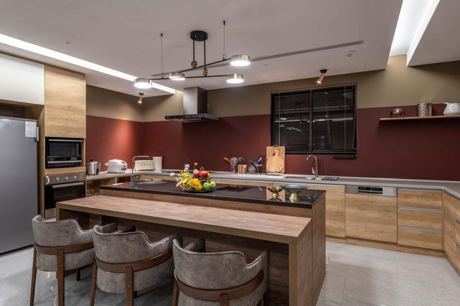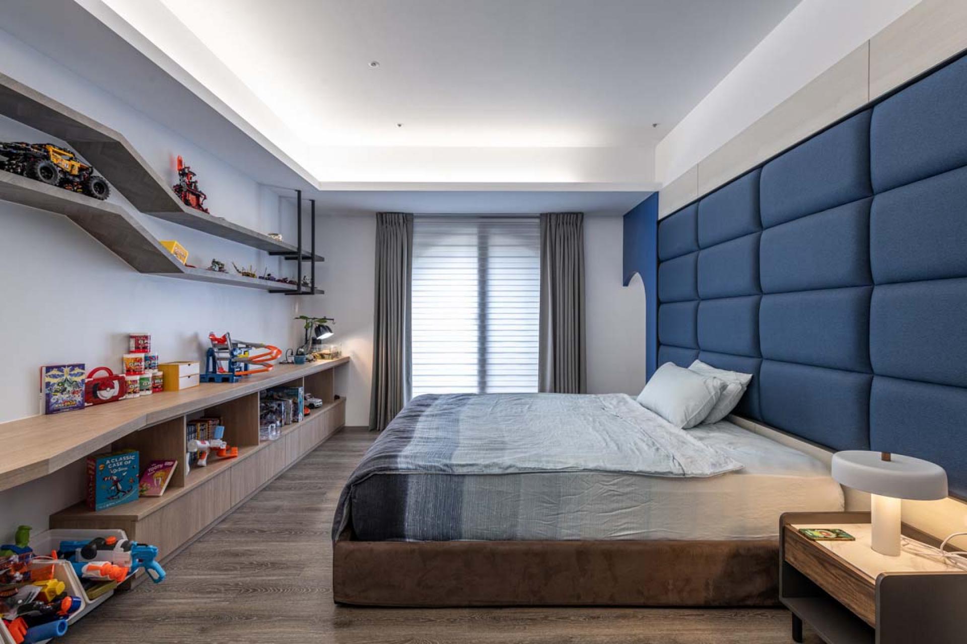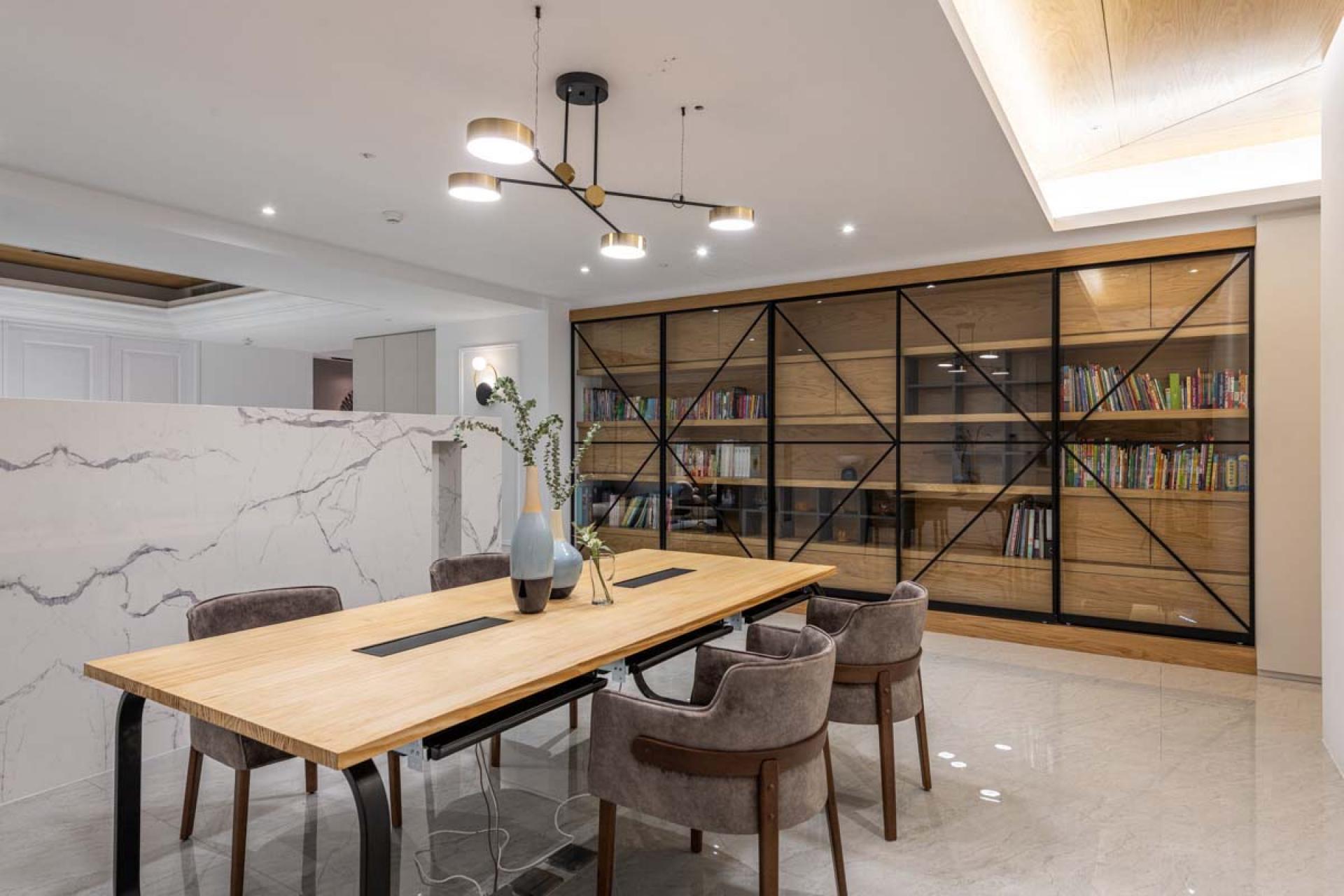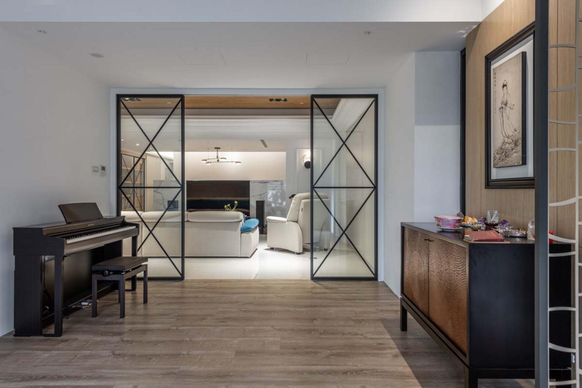 The height of the building in this project is relatively low, further complicated by large beams in the interior, making the space visually confined. The wall is decorated with indirect lighting and the doorway allows the area to emanate a sense of spaciousness. In addition, there were no partitions in the space at the beginning. The design team designed the layout according to the needs of the homeowners, ensuring the most satisfying layout and décor for the homeowners.