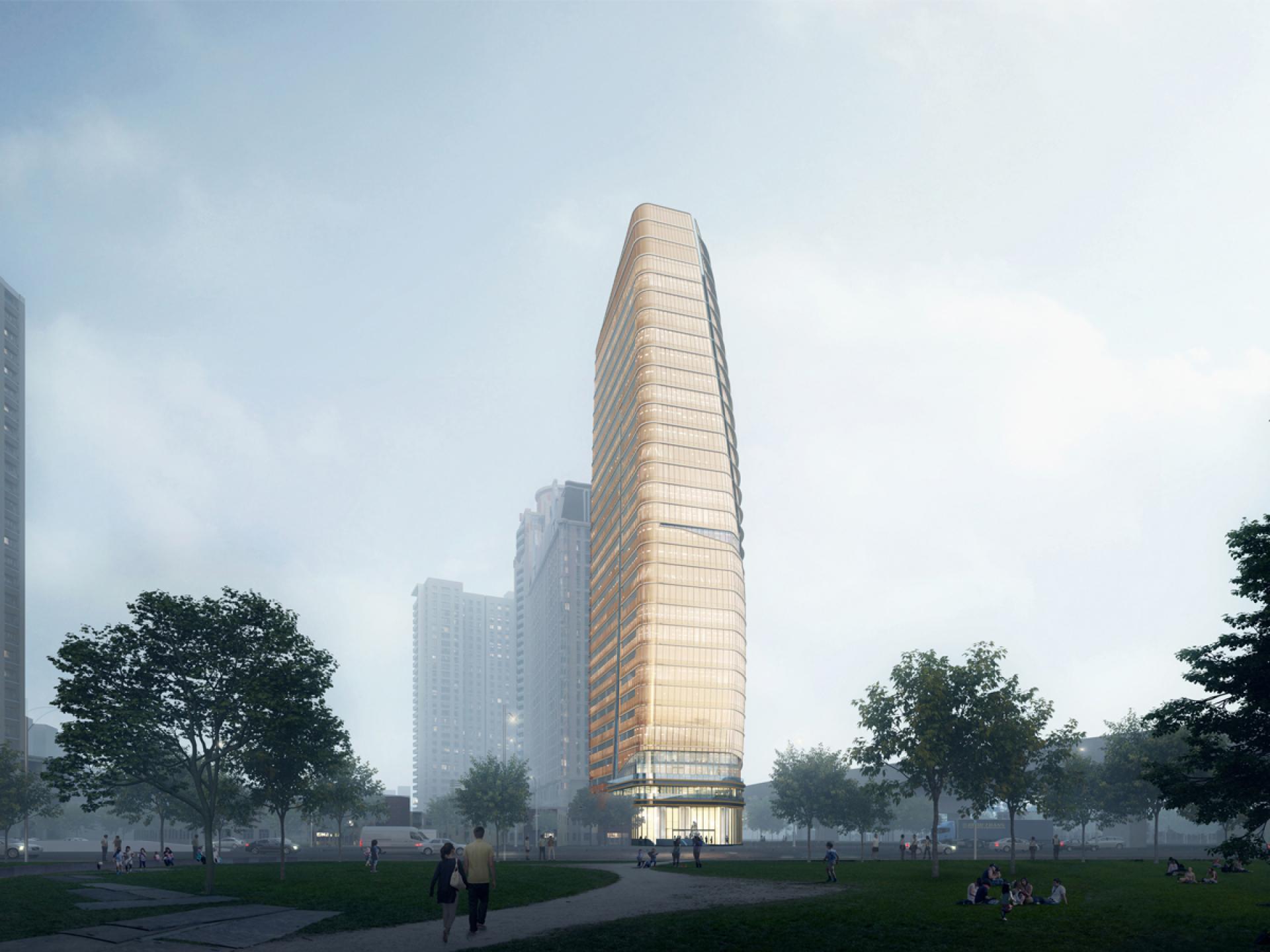 Site located in Huiming Section, Xitun district, Taichung, Taiwan, this project is a 30,859 sqm, 28 stories high, 131.5m mix-use office developed by Highwealth Construction. The design adopted the concept of traditional Chinese dressing (known as cheongsam), embedded an elegant “S” curve into tower’s main façade. The curvy gap flows down straight to the podium, and presented an impressive city image. In the meantime, several minor curvy cuts and the tapered top curtain wall makes the building shape more dynamic and elegant. When the S curve comes down to the bottom, the cantilevered podium terrace with planting on its edges created a welcoming city living room by the side of highway.