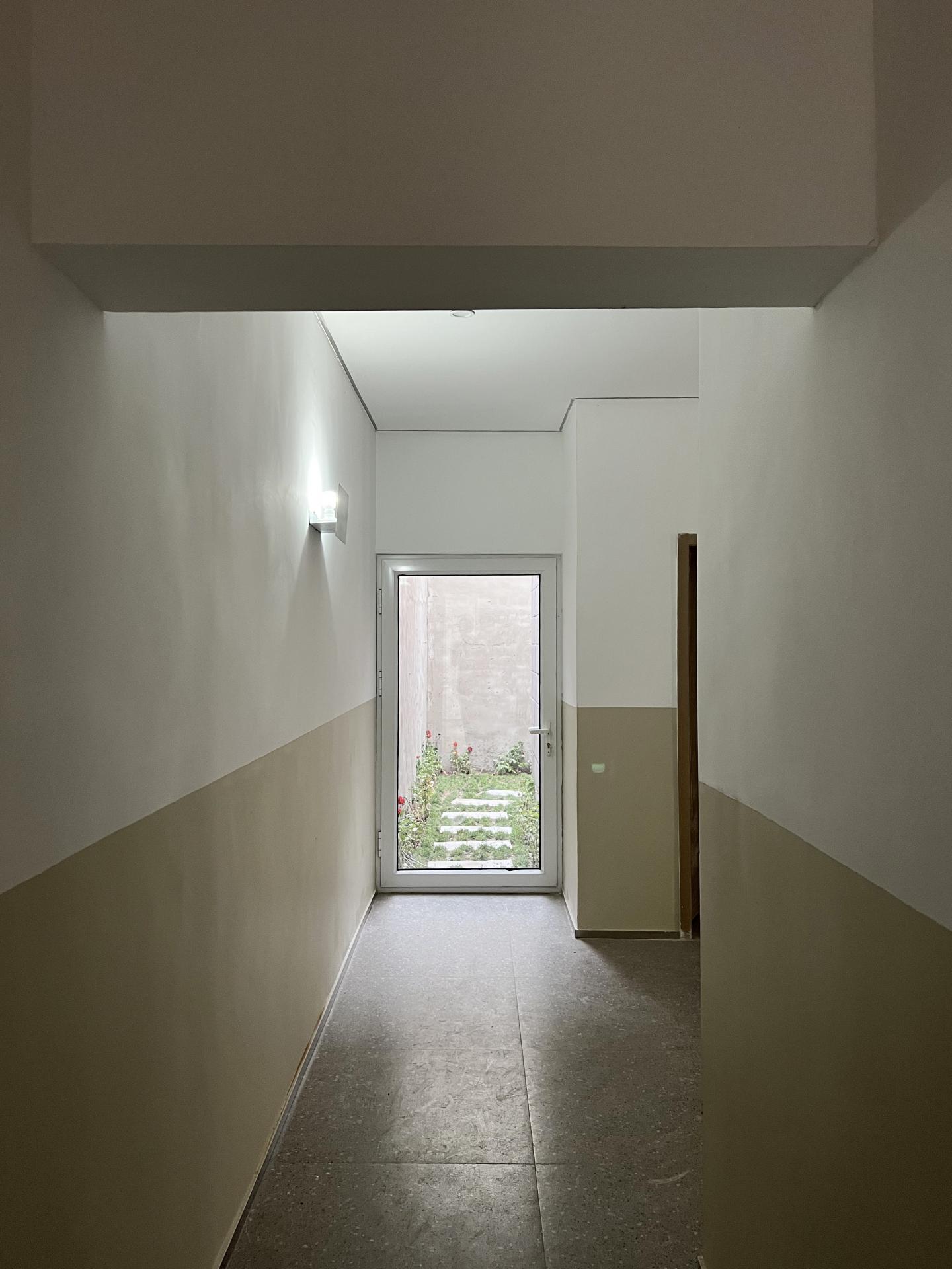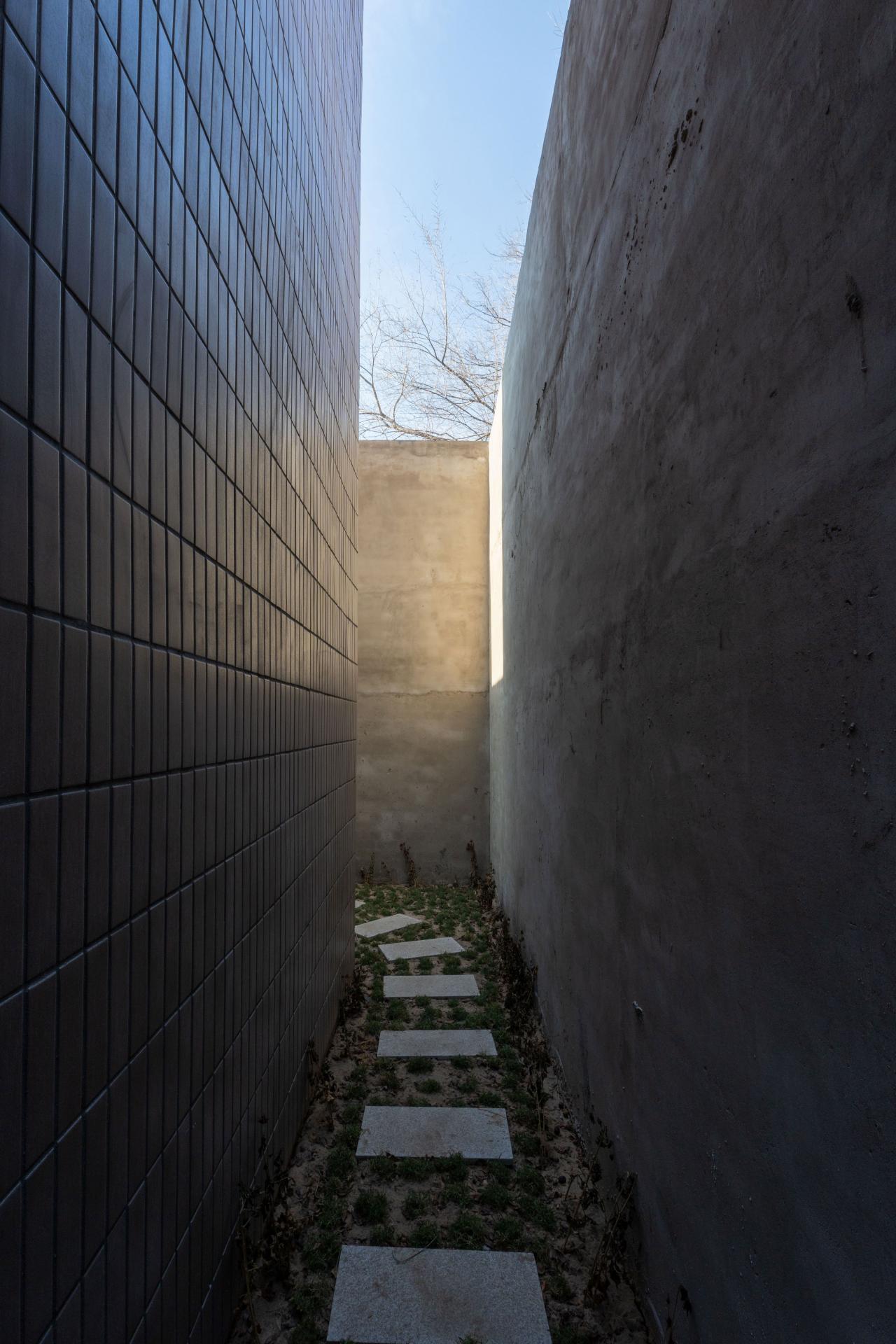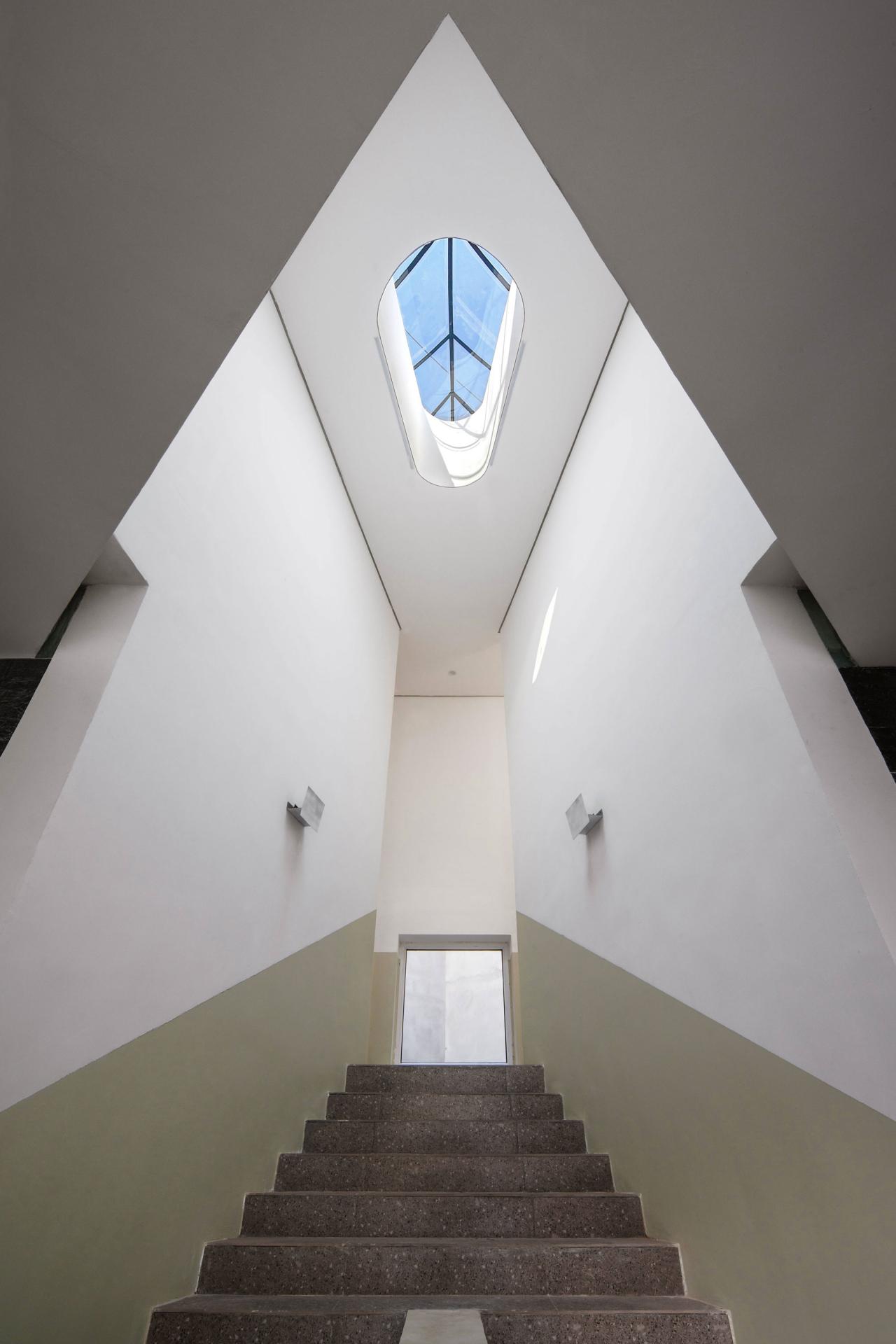 The passage and corridor bring warmth and sufficient light through natural light. An outdoor garden is set along the wall at the end of the corridor, and the green plants add life and beauty. The stairs leading to the second floor create a streamline guide with a unique skylight.