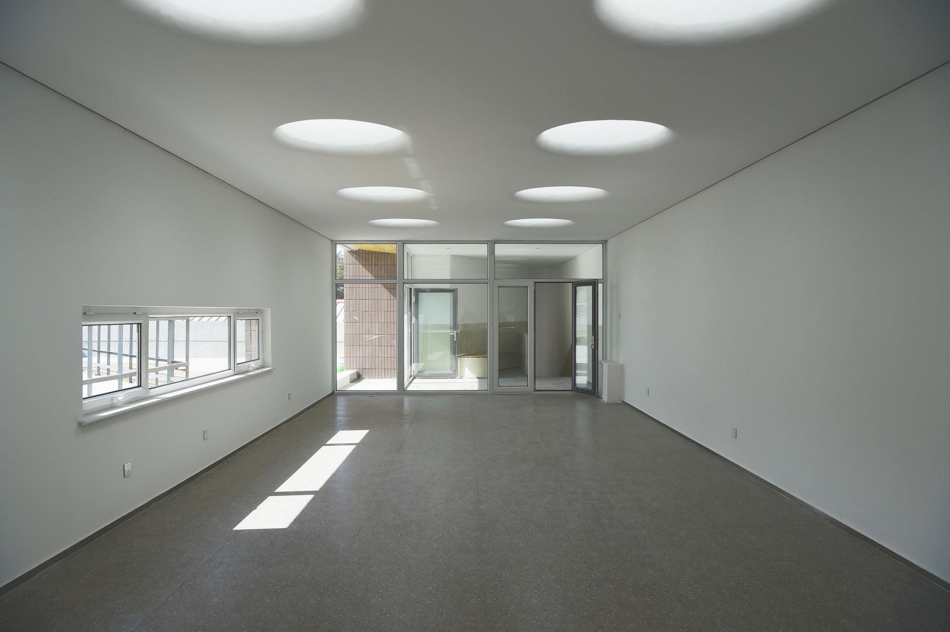 A large activity room is set on the second floor, with uniform light and convenient for multiple functions. At the same time, an exit to the roof platform is set on the second floor, and a movable flower box and planting area are set on the roof for the elderly in the community to exchange activities and achieve the fun of flower cultivation and planting.