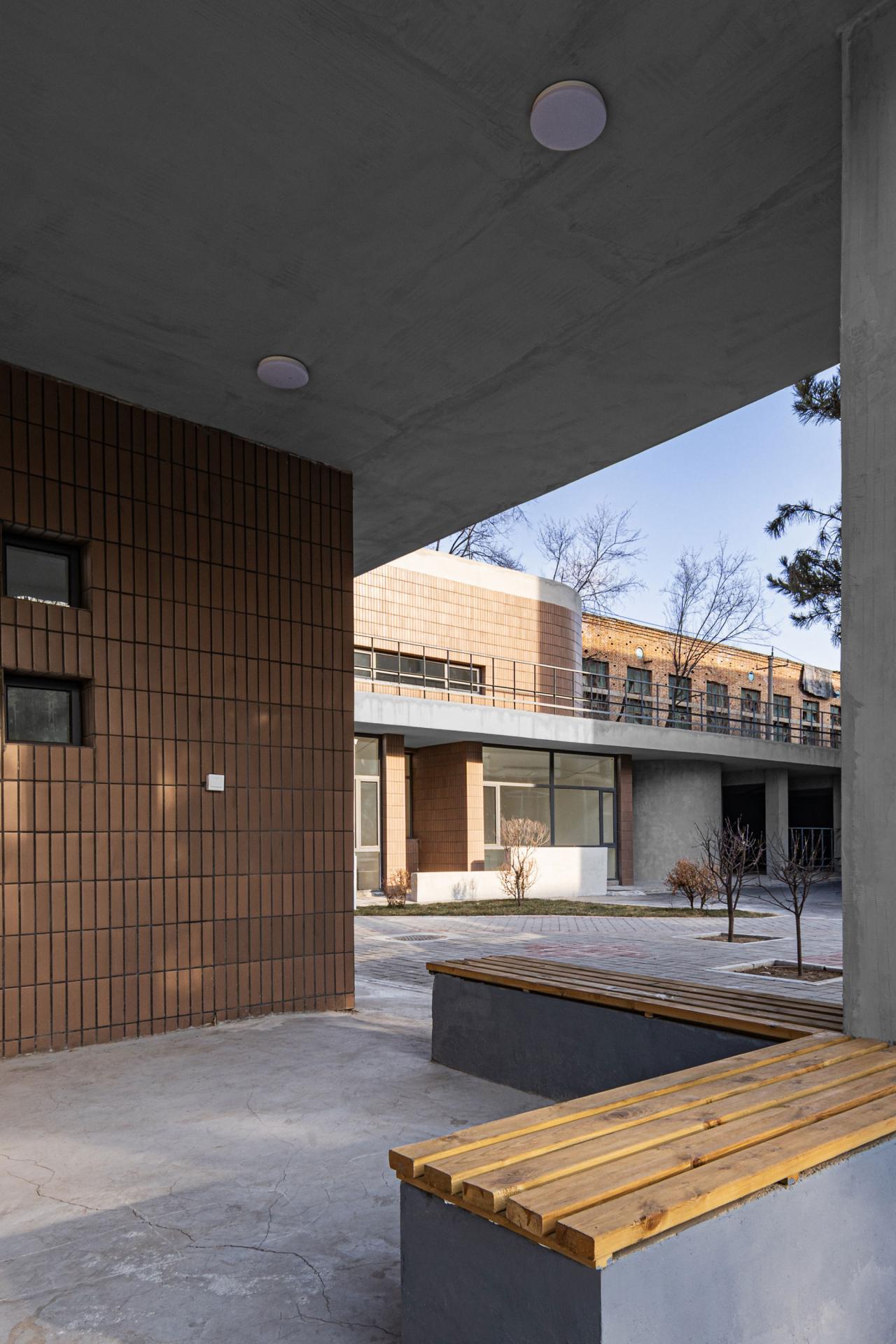 The Armed Police Apartment Community Activity Center is a node reconstruction and expansion part of the 2022 old residential reconstruction project in the new urban area of Hohhot. Located in the Apartment Yard of the Armed Police Corps in the east of Inner Mongolia University of Technology, the current construction site was originally a color steel car shed and two dilapidated buildings that were in disrepair. After many studies and judgments, it was decided to demolish and rebuild them to meet the new use needs.