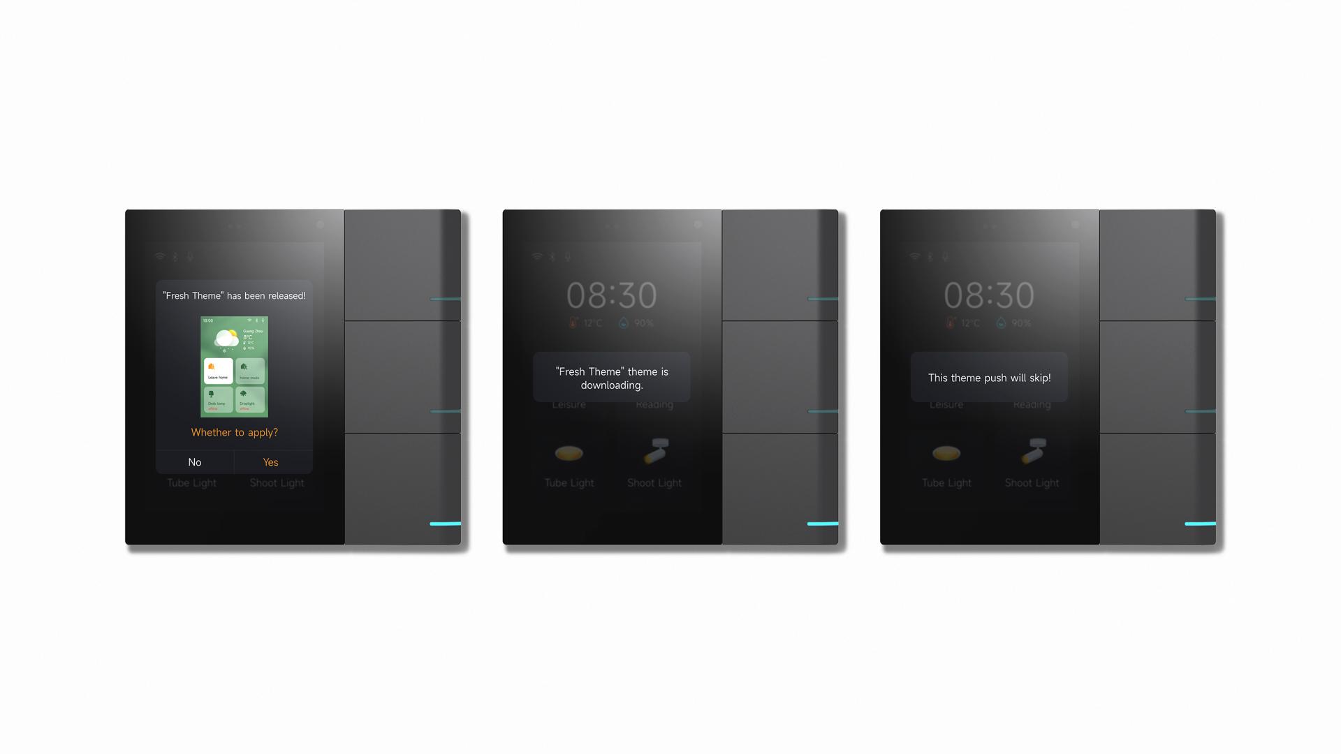 As for the UI design, the icons utilize neumorphism, a new design style that incorporates realistic elements without overwhelming details or textures. These icons visualize the working status of each smart home appliance, real-time weather conditions, and indoor conditions through intuitive animation effects. This comprehensive visual presentation greatly simplifies status monitoring, enabling users to timely adjust appliance settings via the panel.