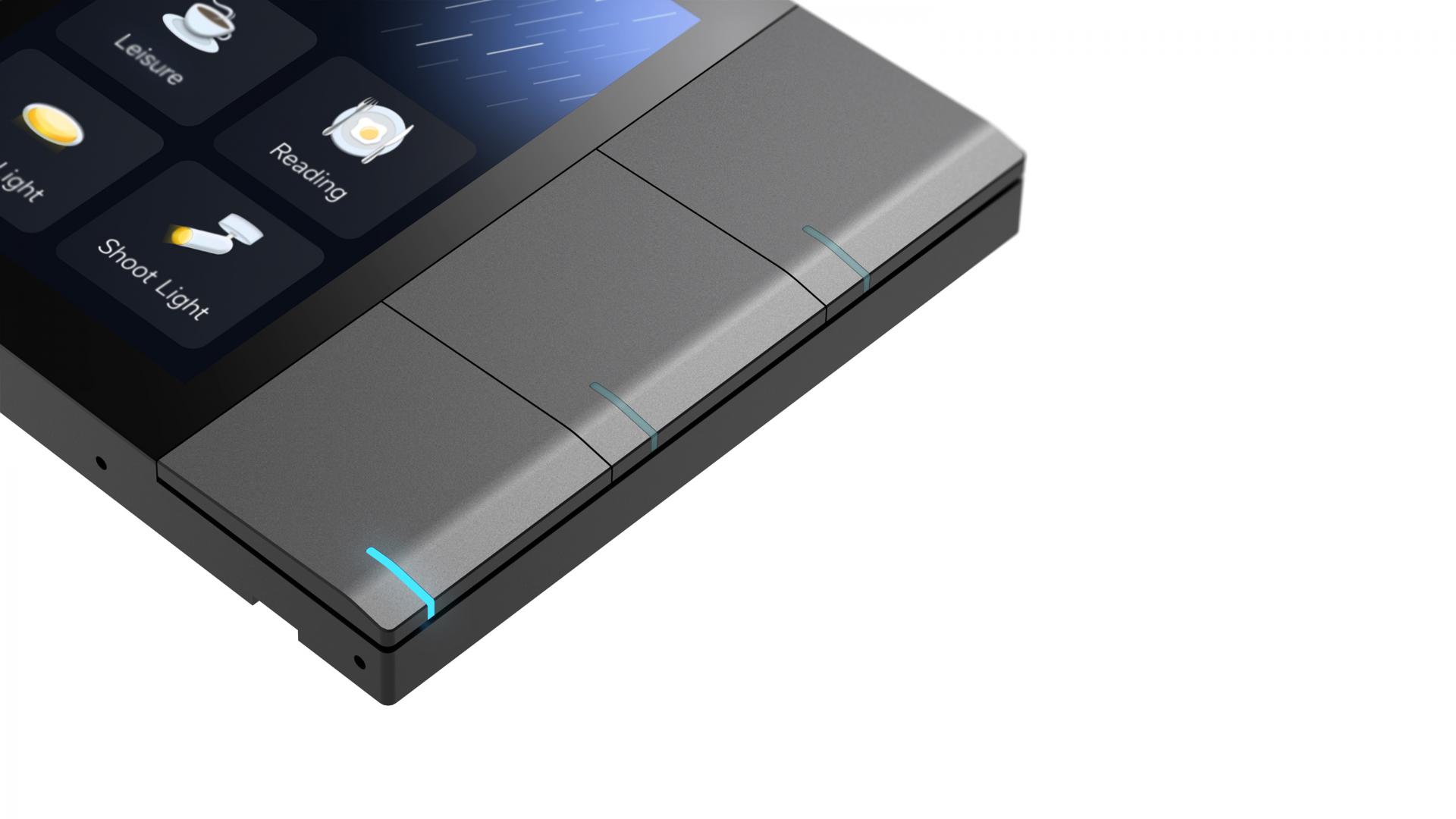 The entire panel is frameless and has three physical buttons, each with sleek beveled edges inspired by the black keys of a piano. This design approach seamlessly merges fashionable allure with user-friendly operation. Additionally, each button is integrated with an indicator that can automatically change brightness with the ambient light conditions. This adaptive feature not only adds a touch of high-tech aesthetic but also brings more convenience in use.