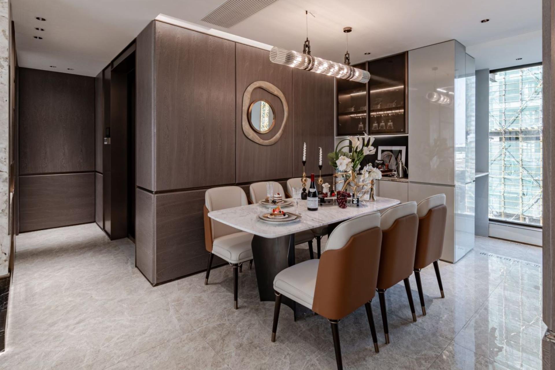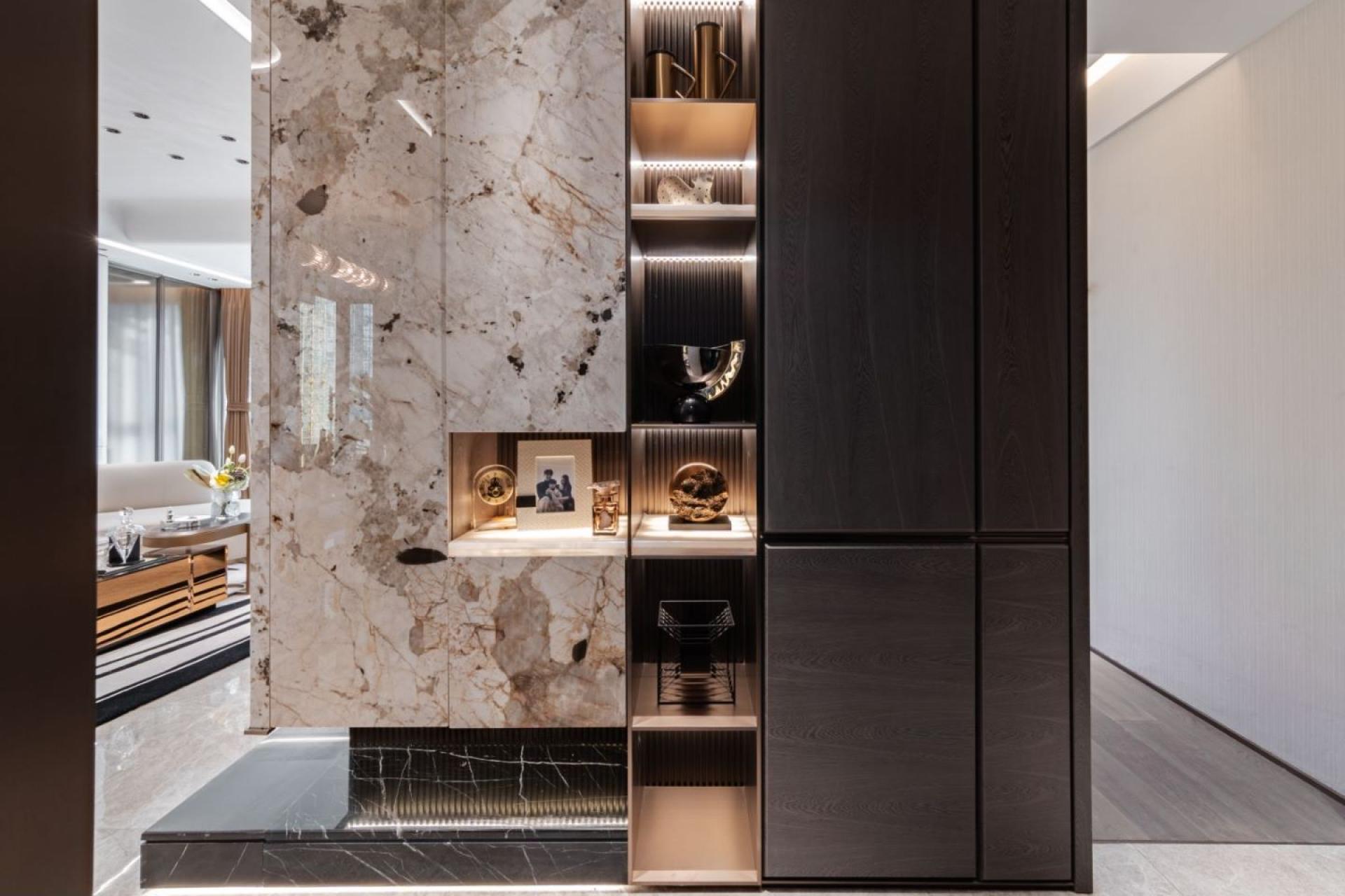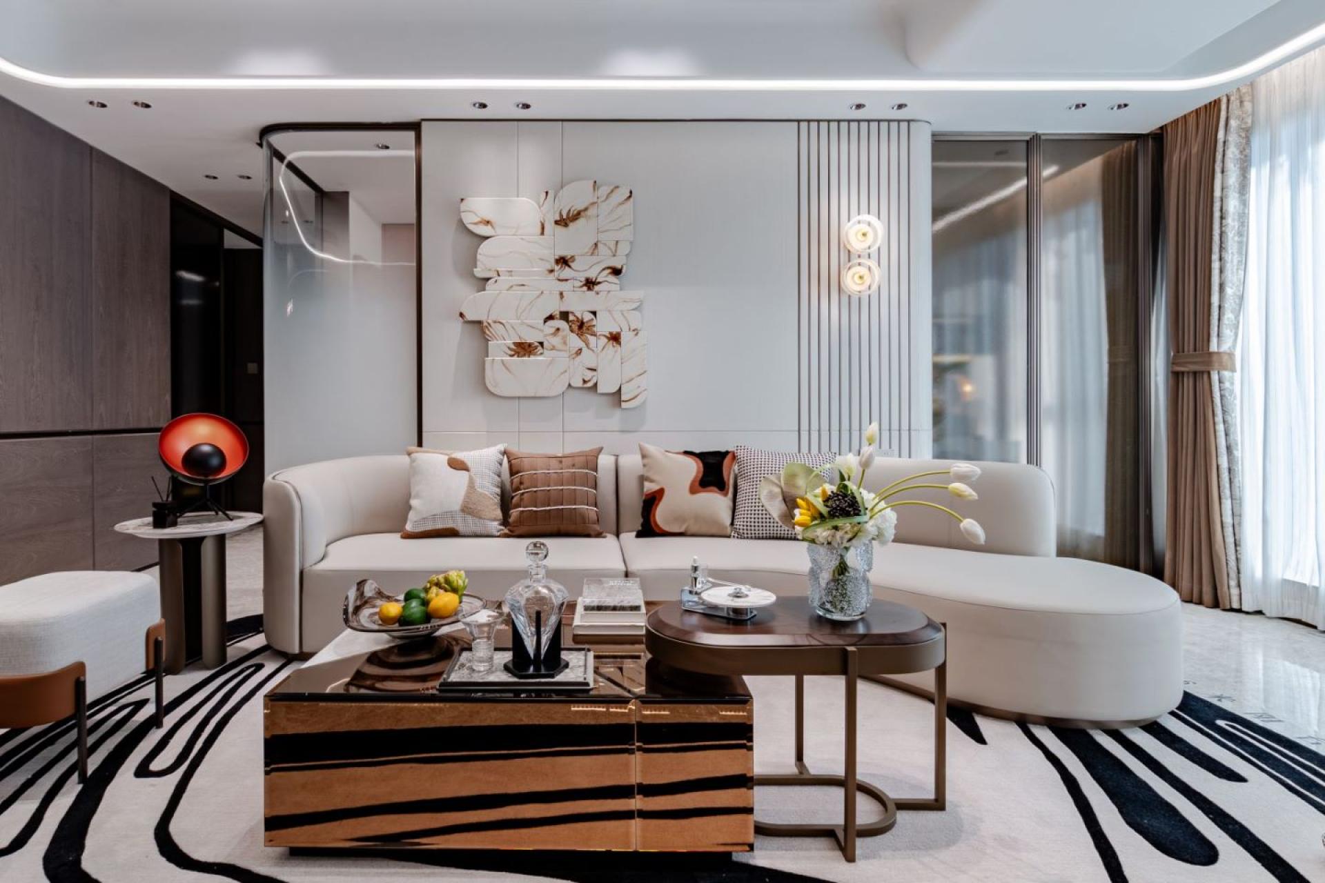 The project attempts to combine traditional Chinese art and culture with modern design. The space opens up a color palette of elegant life with off-white, warm brown, bronze, and lacquer gold, blending luxury and daily life with art. The art decoration and furniture furnishings are interesting in their own right, but also complement each other. With the secret realm of luxury and luxury, it deeply interprets the high-end living life hidden in the city.