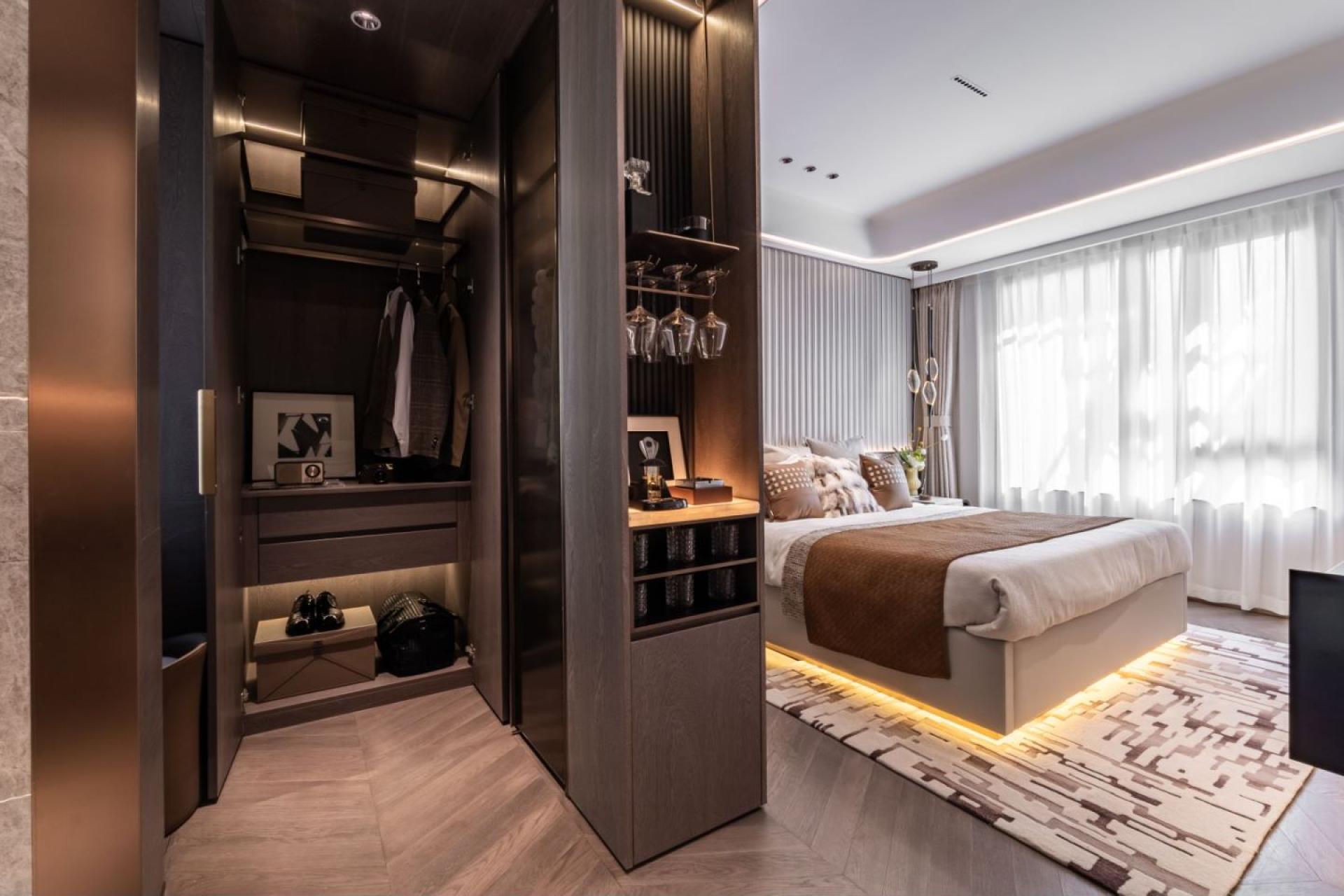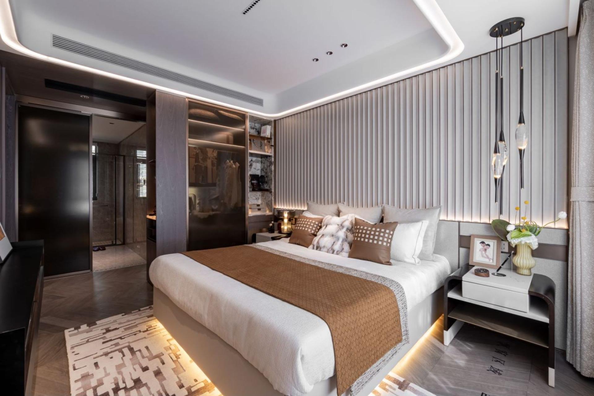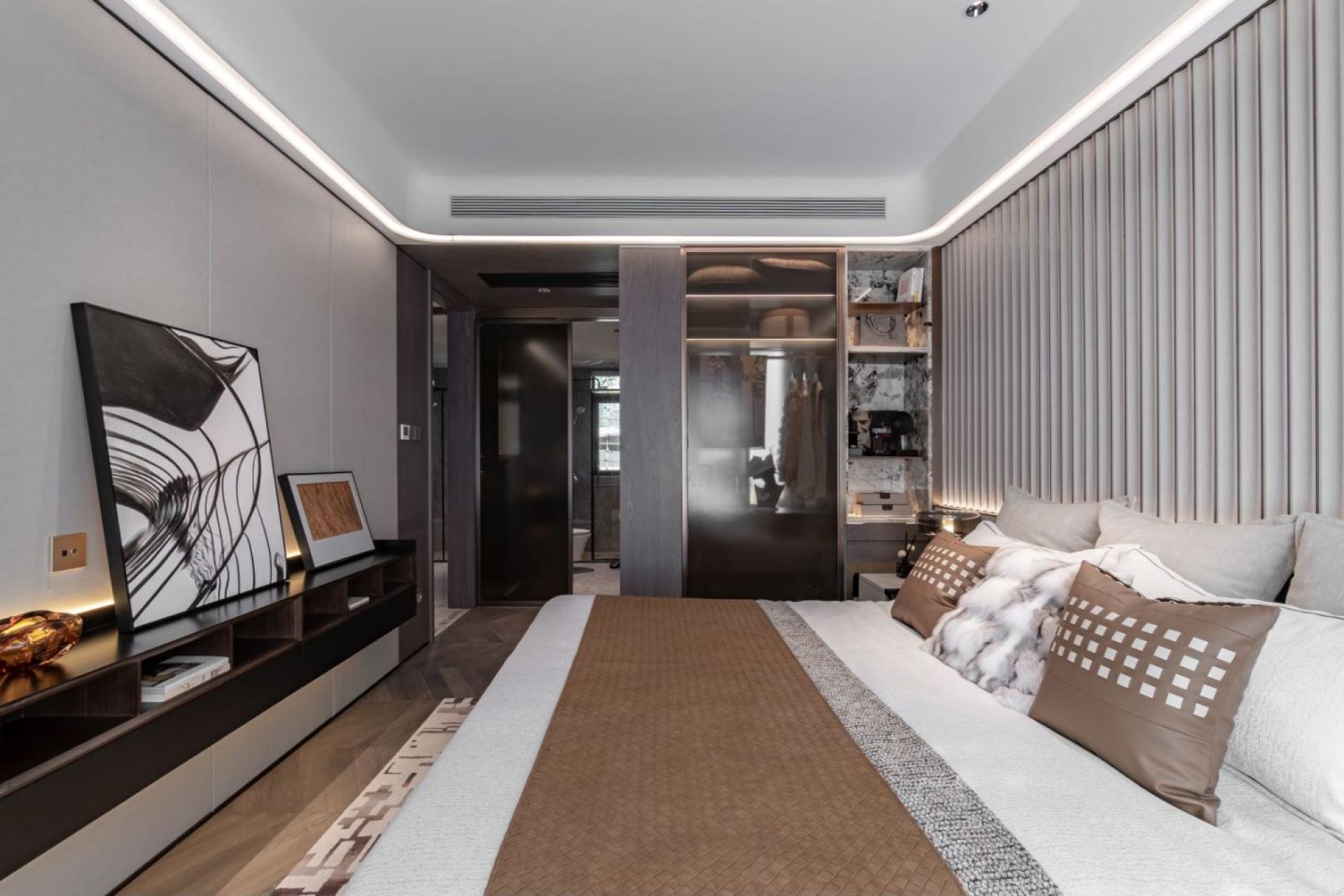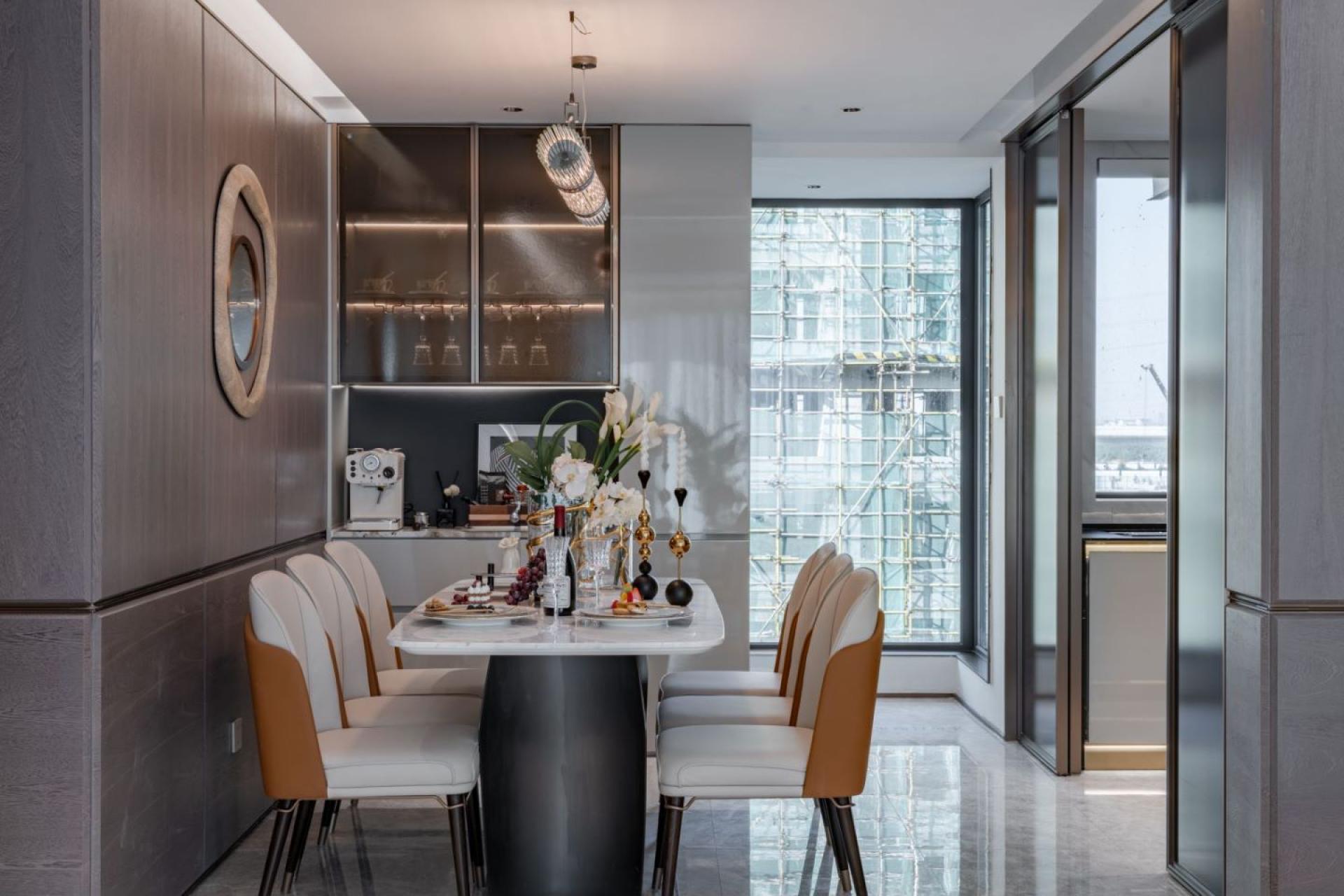 The project attempts to combine traditional Chinese art and culture with modern design. The space opens up a color palette of elegant life with off-white, warm brown, bronze, and lacquer gold, blending luxury and daily life with art. The art decoration and furniture furnishings are interesting in their own right, but also complement each other. With the secret realm of luxury and luxury, it deeply interprets the high-end living life hidden in the city.