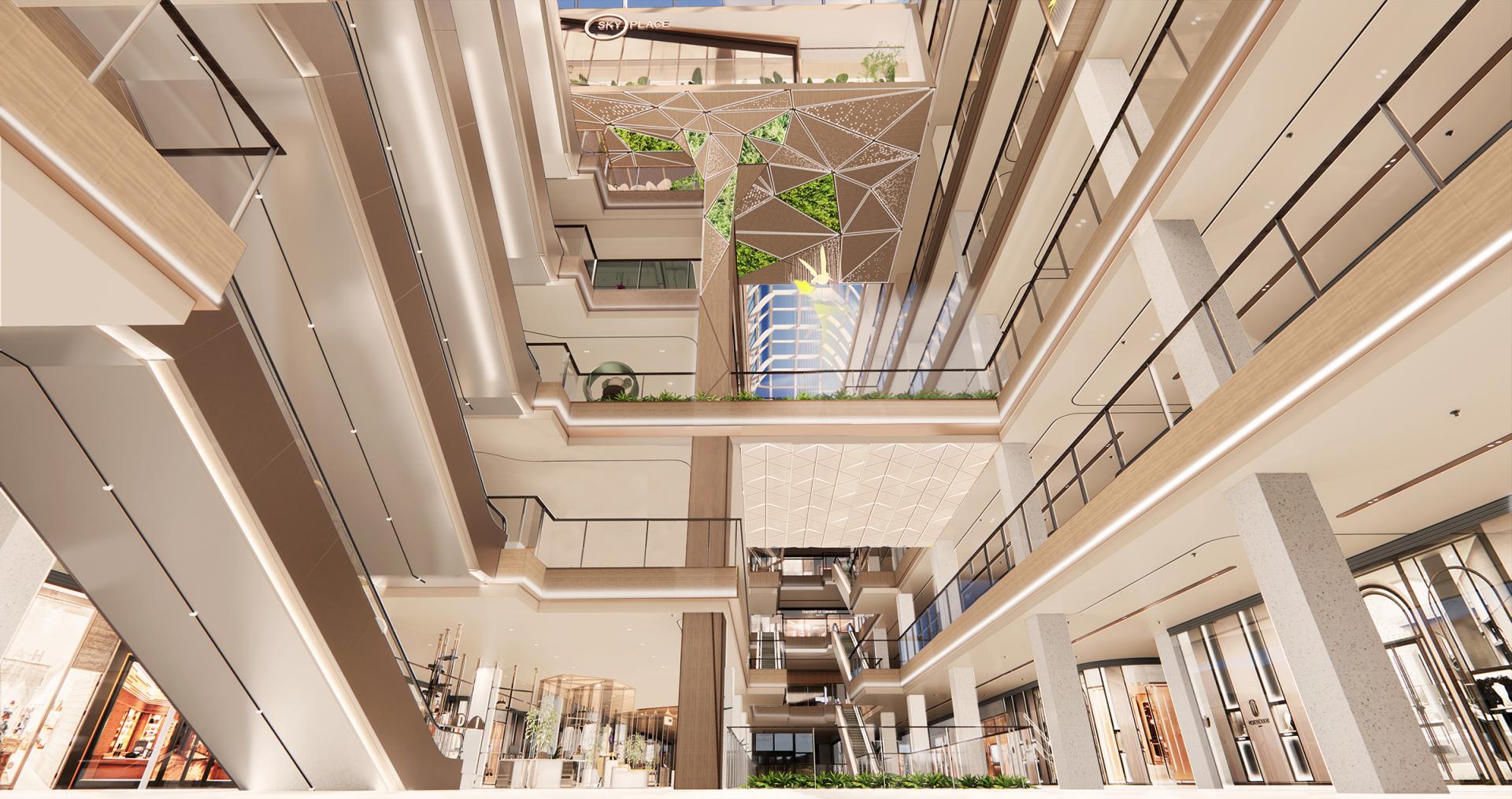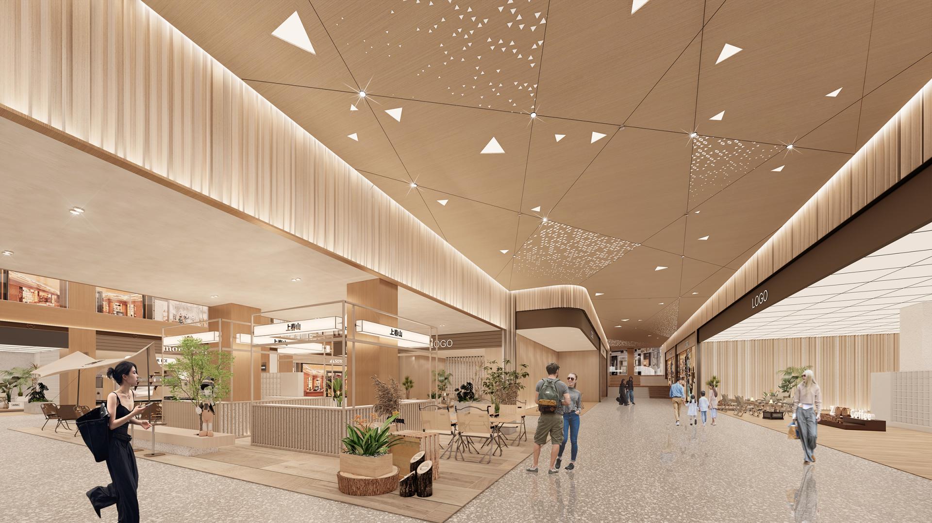 Gather Space is a new type of comprehensive shopping plaza, located at the intersection of Hongqiao Road and Shuicheng Road in Changning District, Shanghai. The plaza consists of one underground level and six above-ground levels, occupies 65,000 square meters. The overall design takes "FOREST Path" as its theme with three main highlights: the main entrance "Forest Garden With Shadows," the main atrium "Vertical Forest Cabins," and the mezzanine atrium "Light Aerobic Camp." Memory points are scattered throughout to enhance the space's sense about experience and reusability, to create a relaxing, colorful, and forest-like space for leisurely strolls. it feels like being on a pleasant sycamore-lined street while wandering through. The main entrance employs a spatial design technique with scattered boxes combined with the design concept of " Light and Shadow of Sycamore ", to create an entrance with mottled shadows and relaxation, make people feeling like they are under the sycamore tree. The main atrium is designed with the concept of "A Stroll Tour Under the Sycamore", integrate the core IP, light cascade, green plants, and multiple functions to create a scene-friendly, fully experiential and interesting vertical forest house and complexing space. The mezzanine atrium and secondary entrance follow the design language of sycamore tree shadows with the changing sense of light and flowing shadow through the space, complement the distinctive commercial shops, to create a vibrant, oxygen-rich camp fulling of vitality around the clock. In addition, Gather Space features numerous distinctive design elements scattered throughout the space, such as an outdoor-themed food market, a leisurely open-air bookstore, and a relaxing children play area, provide the citizens with a diverse array of recreational experiences. Shanghai Gather Space with its dynamic wandering paths and unique vertical forest house design creates a novel commercial experience space where various brands and formats seamlessly integrate. It meets the public needs for daily socializing, strolling, and resting, offers citizens a brand-new commercial experience. It is settled to become a new main venue in Gubei area, to be a new landmark of international vibrant commerce, to lead a new trend in urban consumption.