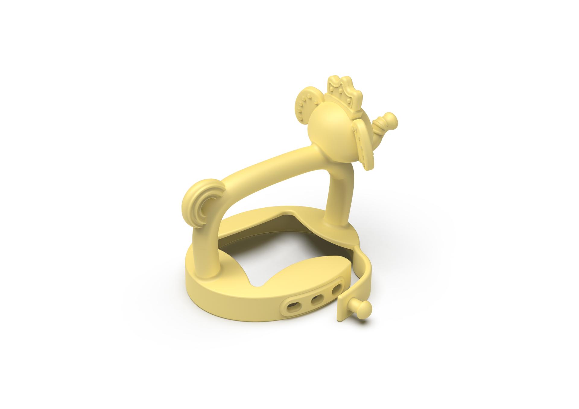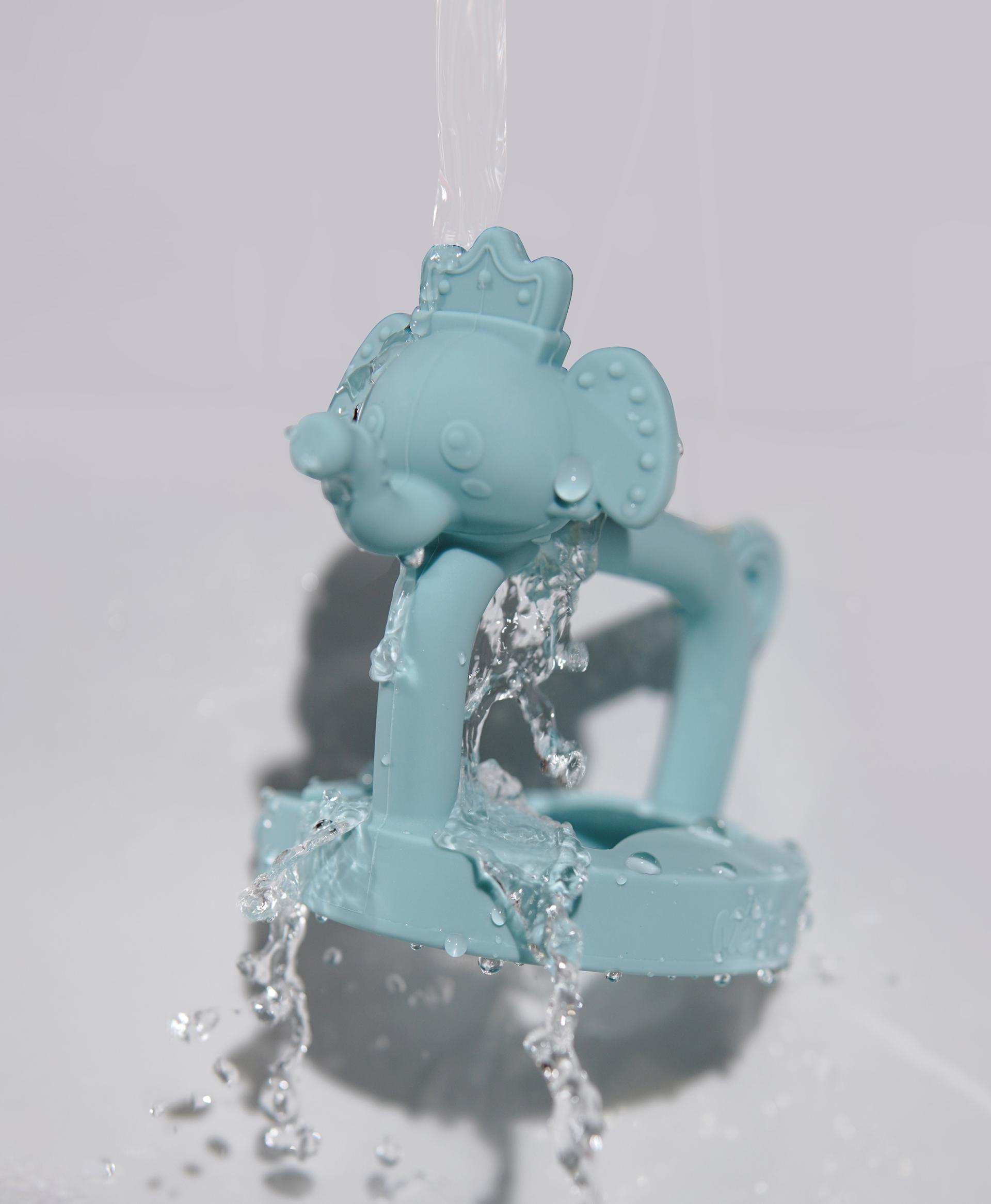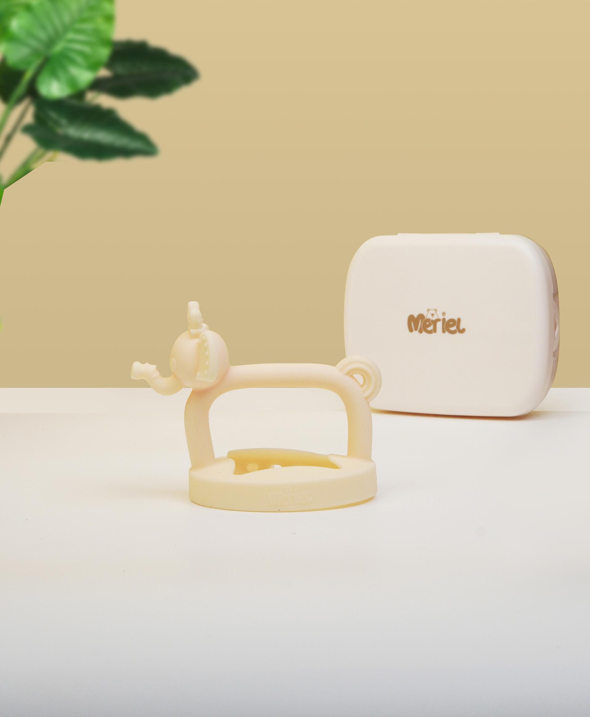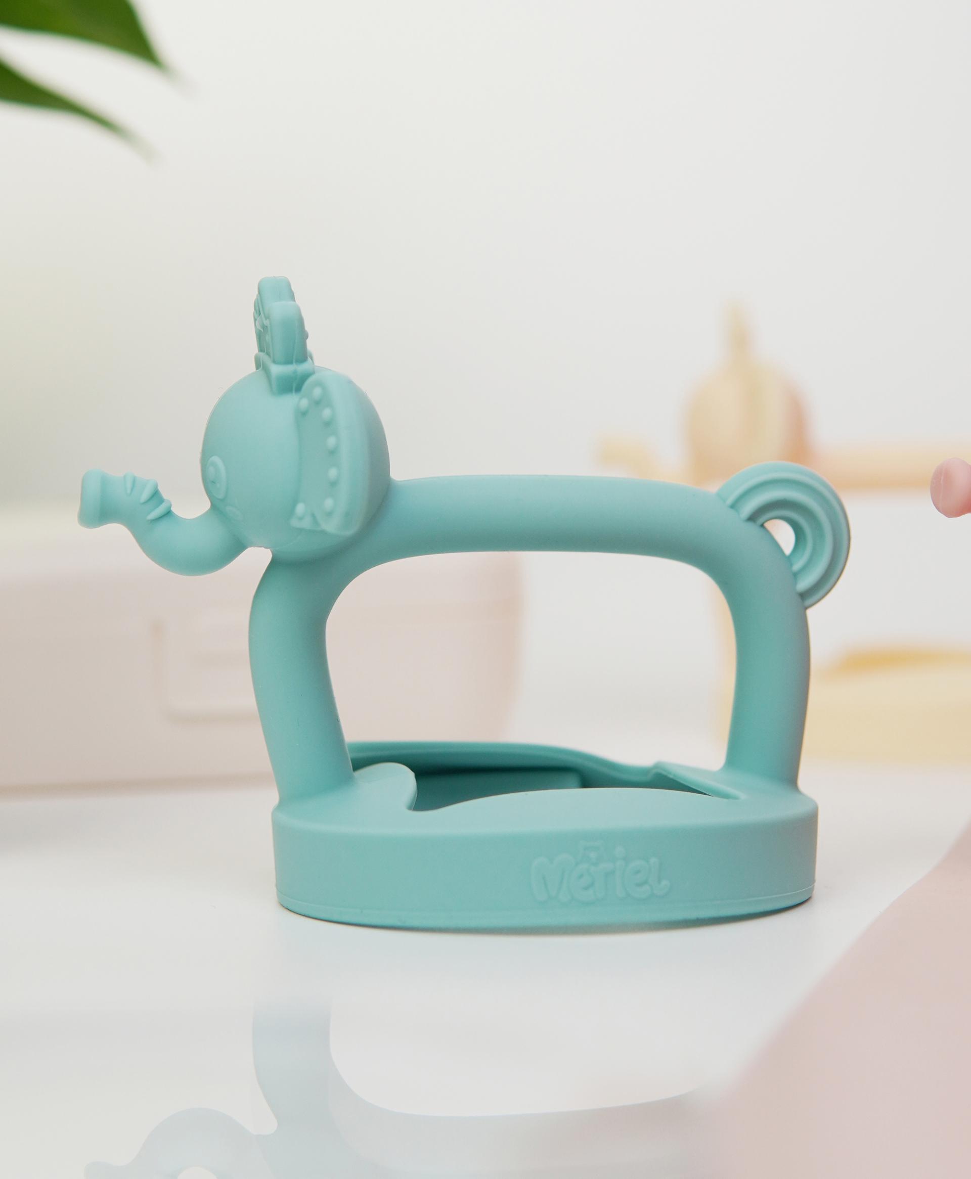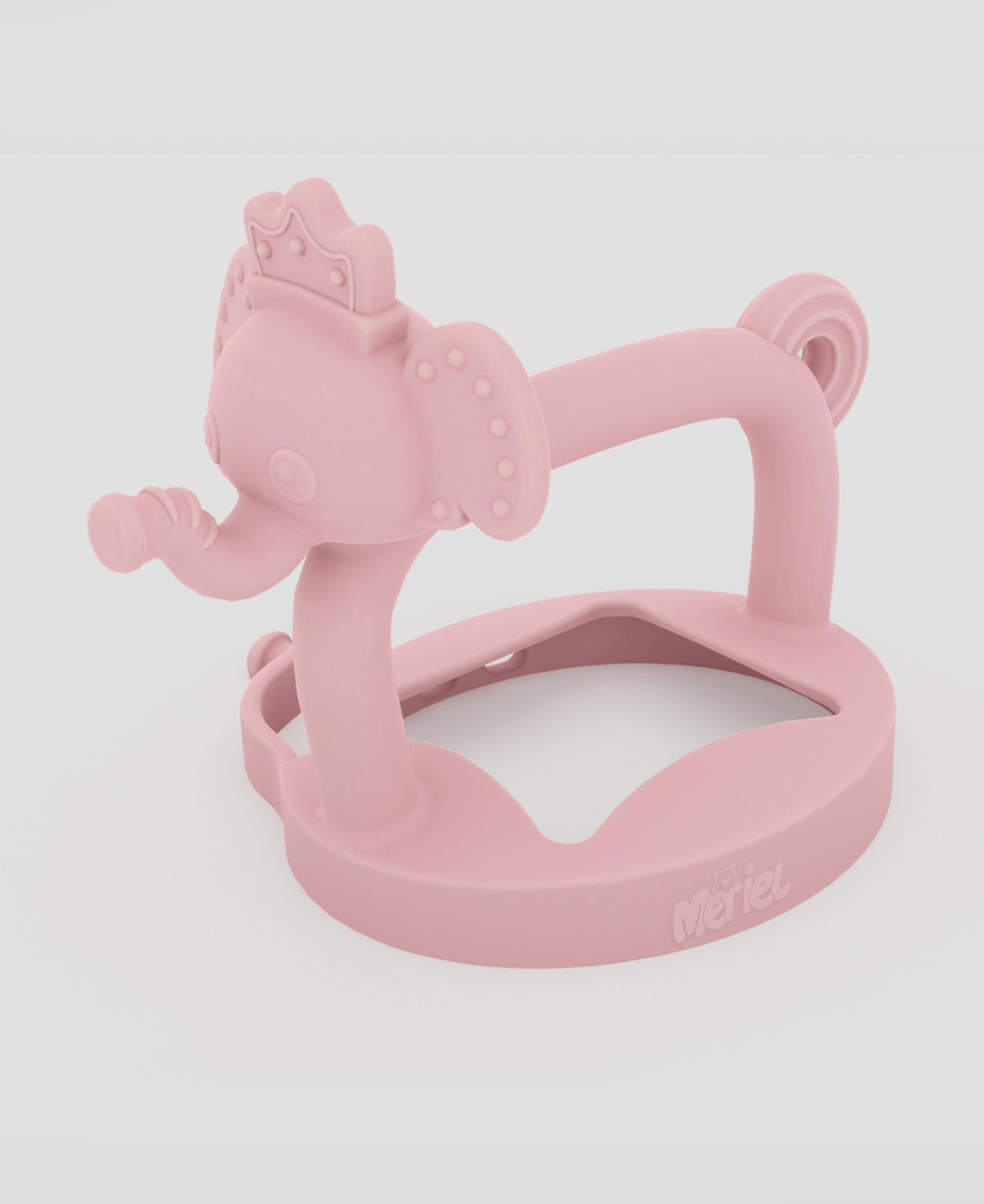 This is a bracelet type baby teether in the shape of elephant, which is characterized by being worn directly on the hand to prevent it from falling, and the bracelet can be adjusted according to the needs of the elastic which can be fastened on the armrest of baby stroller during the outing. The middle crossbar part is designed to be easy to grasp for babies. The teether is made of liquid silicone as a whole, which help the baby to bite more comfortably. The cute elephant character is used in the design which attracts the baby. The teether has a total of 5 bite points, and the baby can grasp a variety of ways which keeps the teether more fresh feeling for play and bite.
