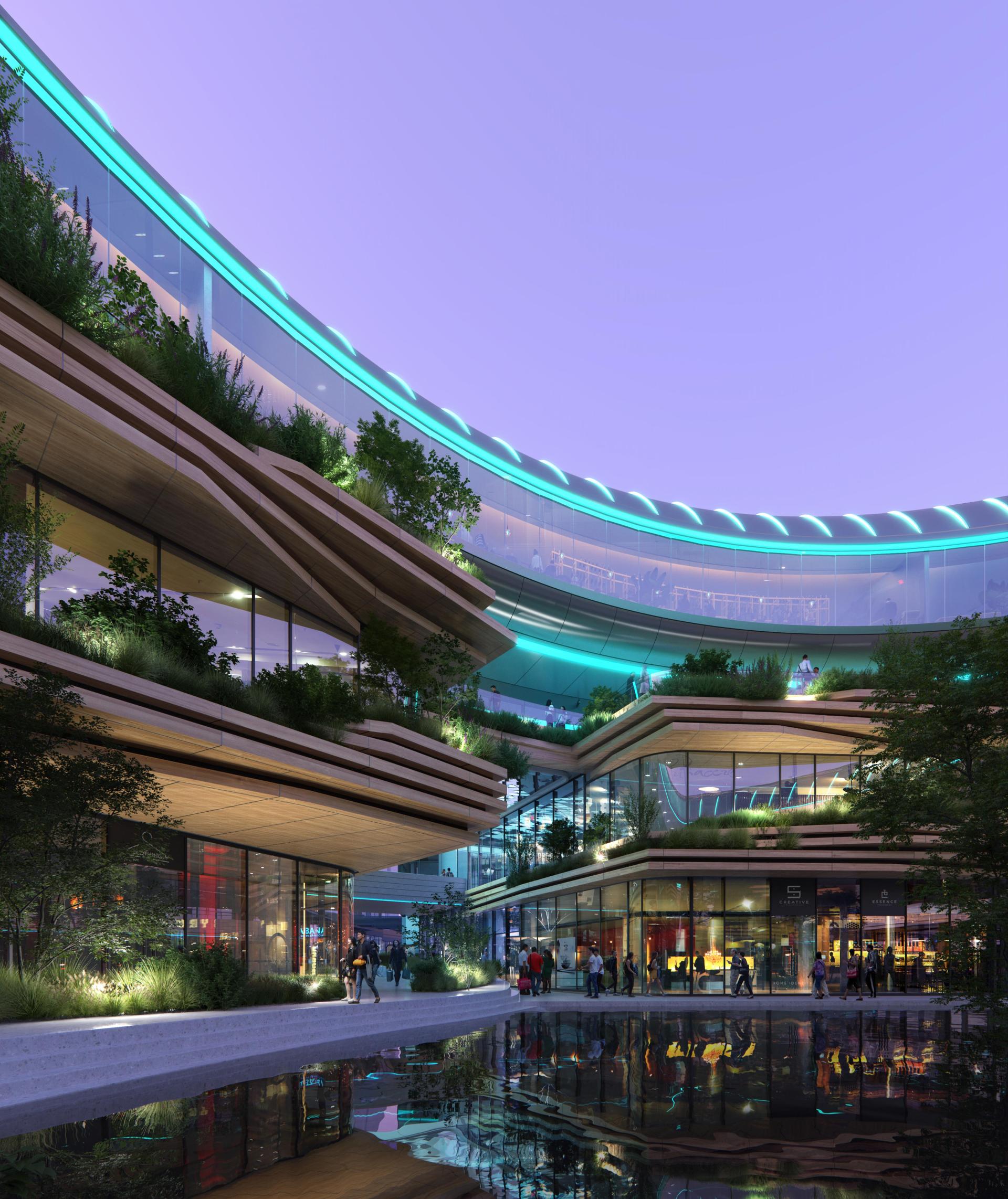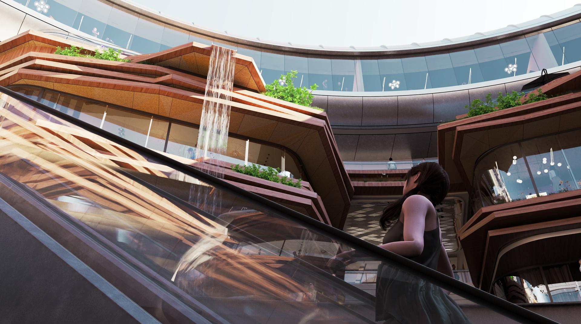 This project aims to create a harmonious urban space that interacts seamlessly with nature. It moves beyond traditional designs, focusing on form and spatial atmosphere to integrate commercial spaces with ecological principles.