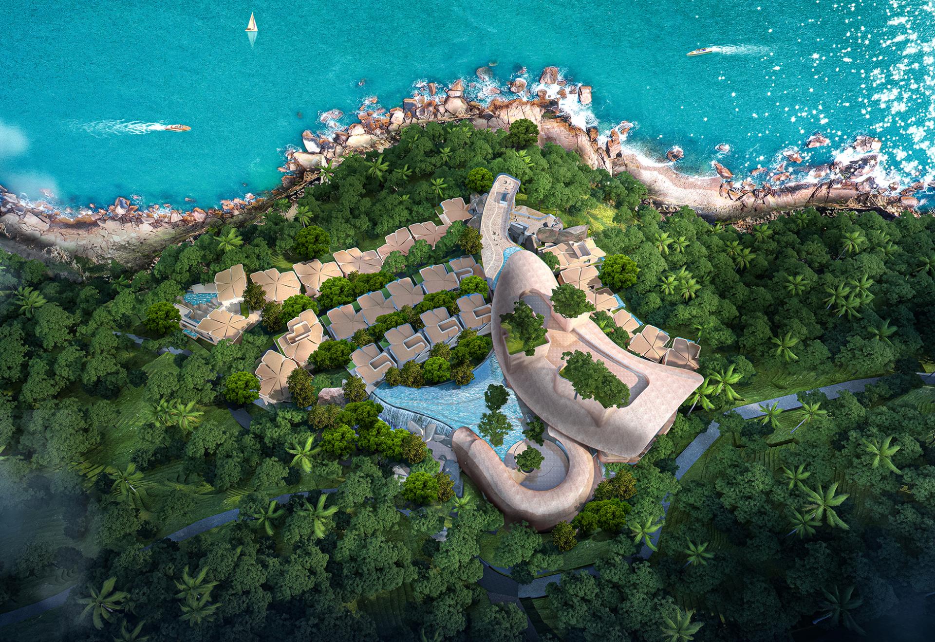 The project aims to break the homogenization trend in the Chinese resort hotel market by customizing a high-end island resort hotel following the laws of the natural environment and embodying Eastern Zen aesthetics for upscale clientele, young groups, and families. It aims to lead the luxury boutique resort hotel market in the Greater Bay Area and promote Zhuhai as a high-end tourist resort area featuring island resort hotels.
