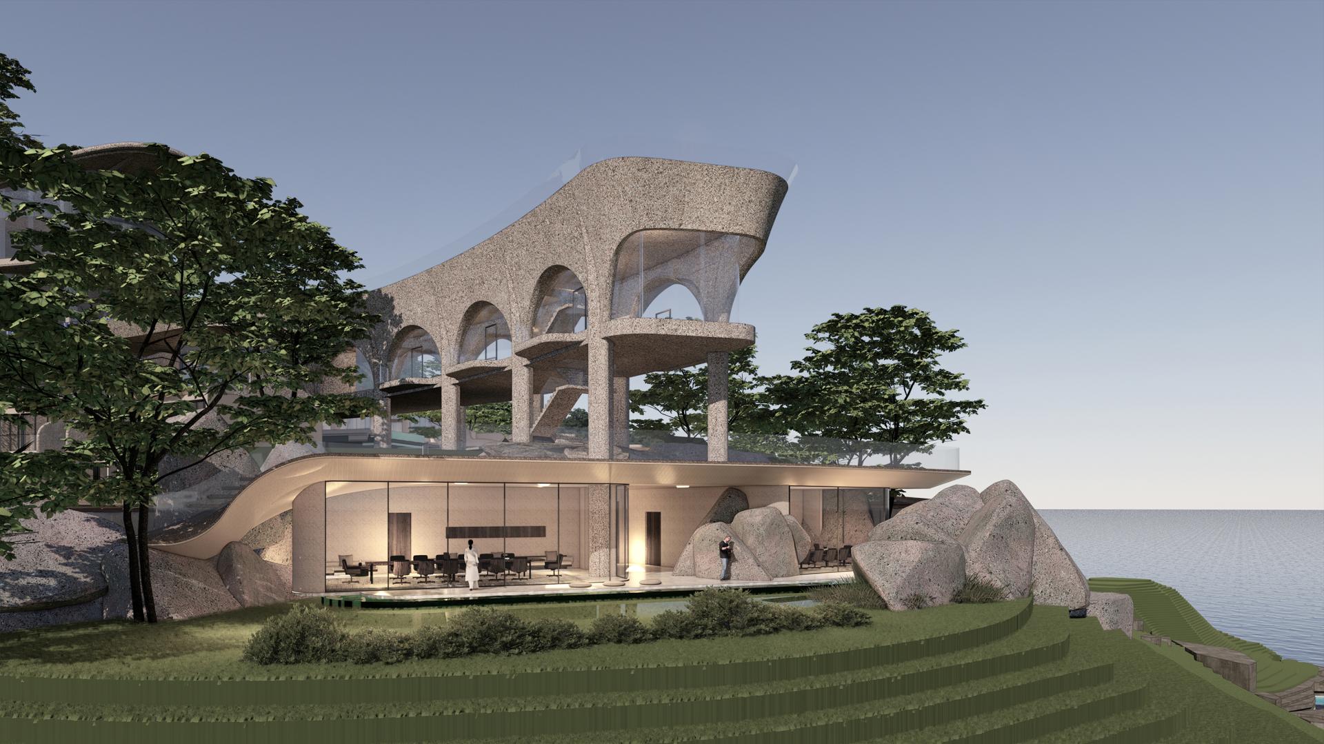 The uniqueness of the site has inspired a personalized design language to shape the distinctive character of the architecture. By fully incorporating natural elements found on the island, such as red coral from the seabed, granite reefs weathered by the South China Sea, and the resilient trees standing against the wind, these elements are integrated into the architectural design to blend the buildings with the island environment, becoming part of the island itself.