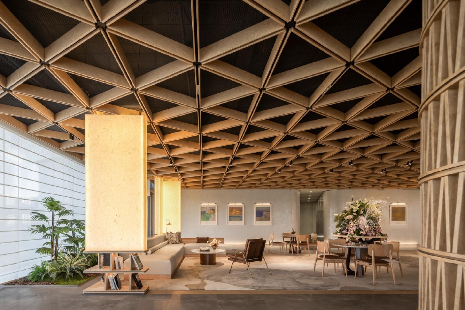 With low-carbon life and rebirth aground as the core concept, this design creates a vacation-like space through sustainable environmental protection materials and tropical rainforest atmosphere. Interaction with nature can promote the release of dopamine, serotonin and other neurotransmitters in the human body, making people relaxed and happy.