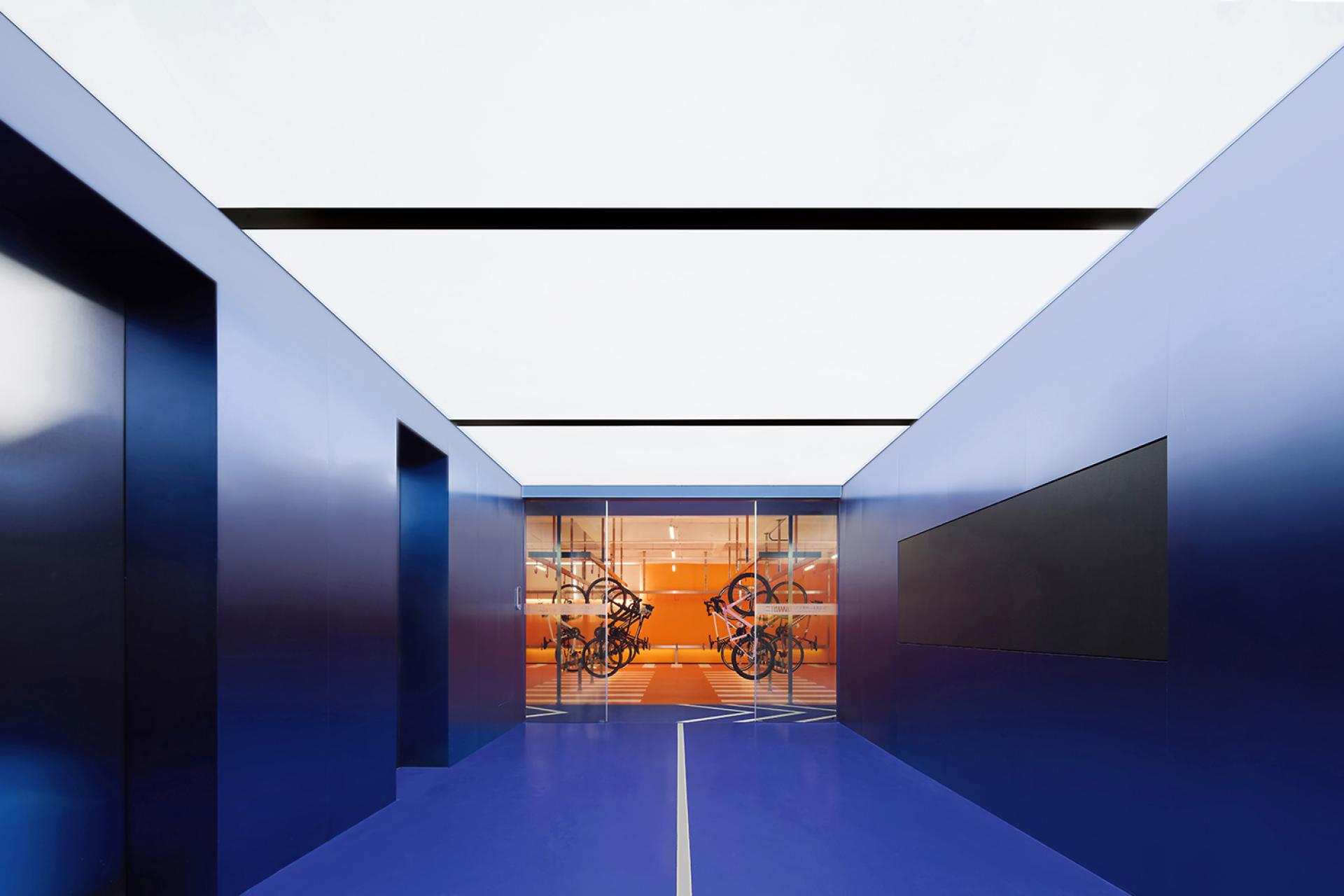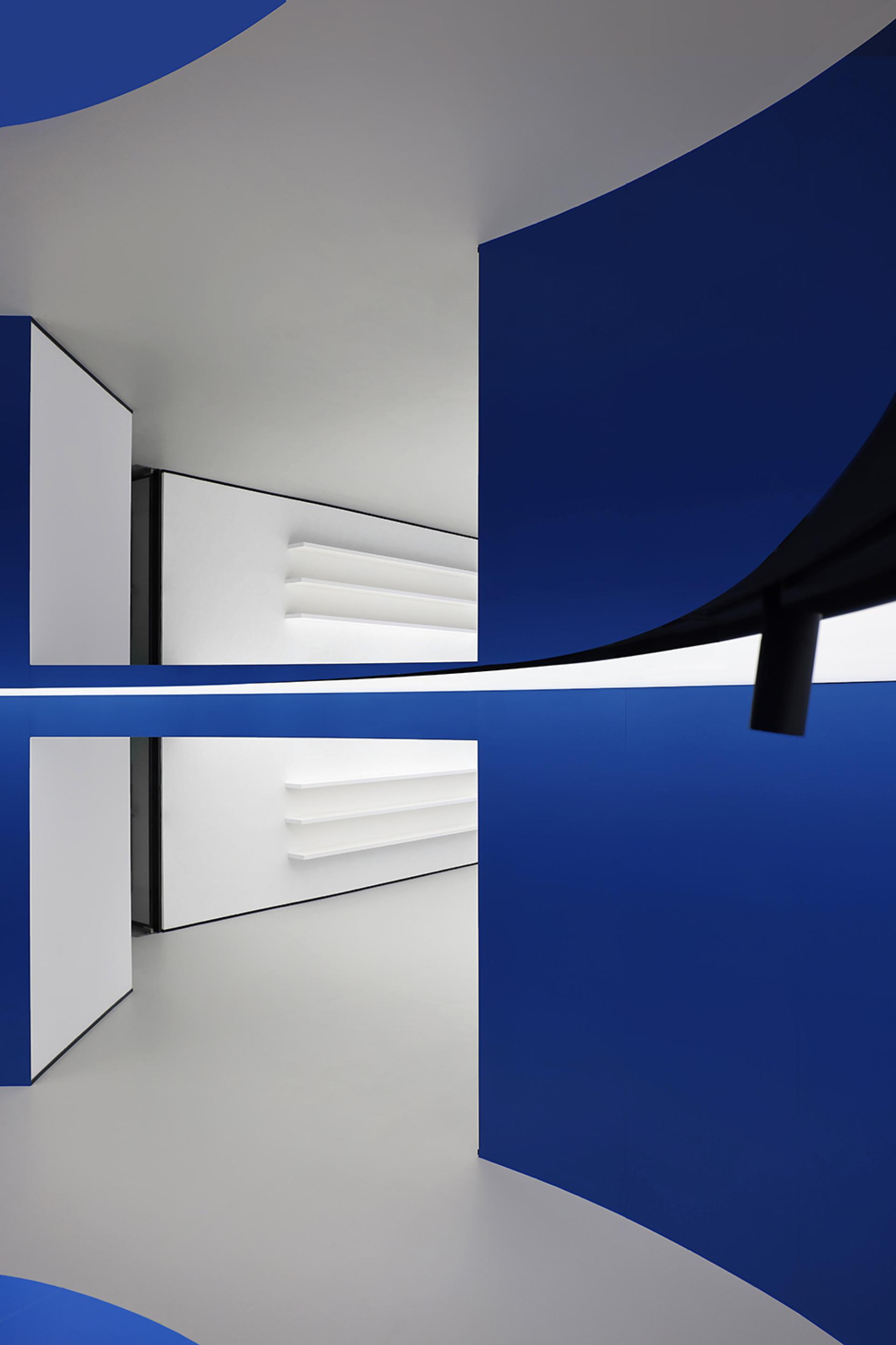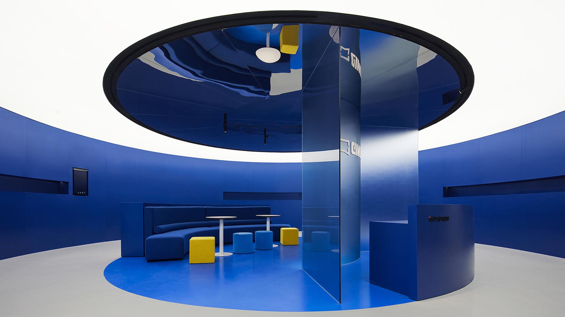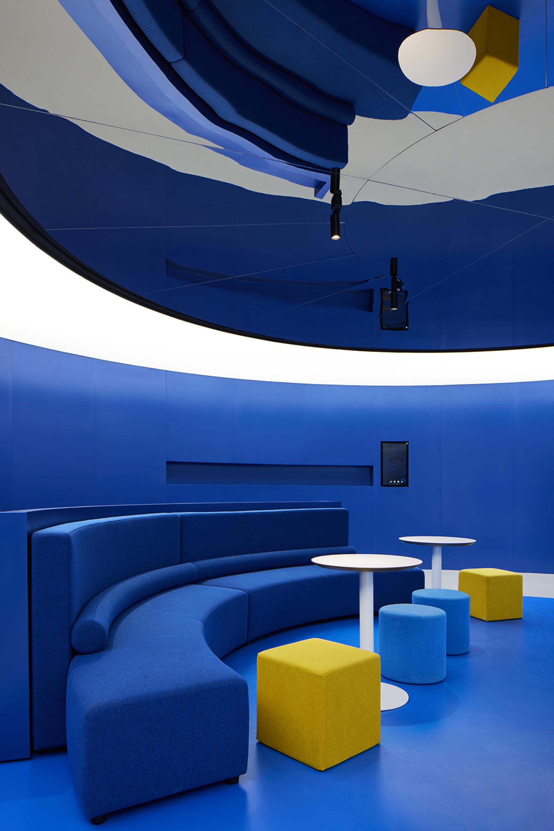 品牌色在齐物科技品牌视觉创达中起到核心作用,作为空间的主题色齐物蓝,发挥色彩冷静、专注、智慧的视觉情感应用于空间设计中。