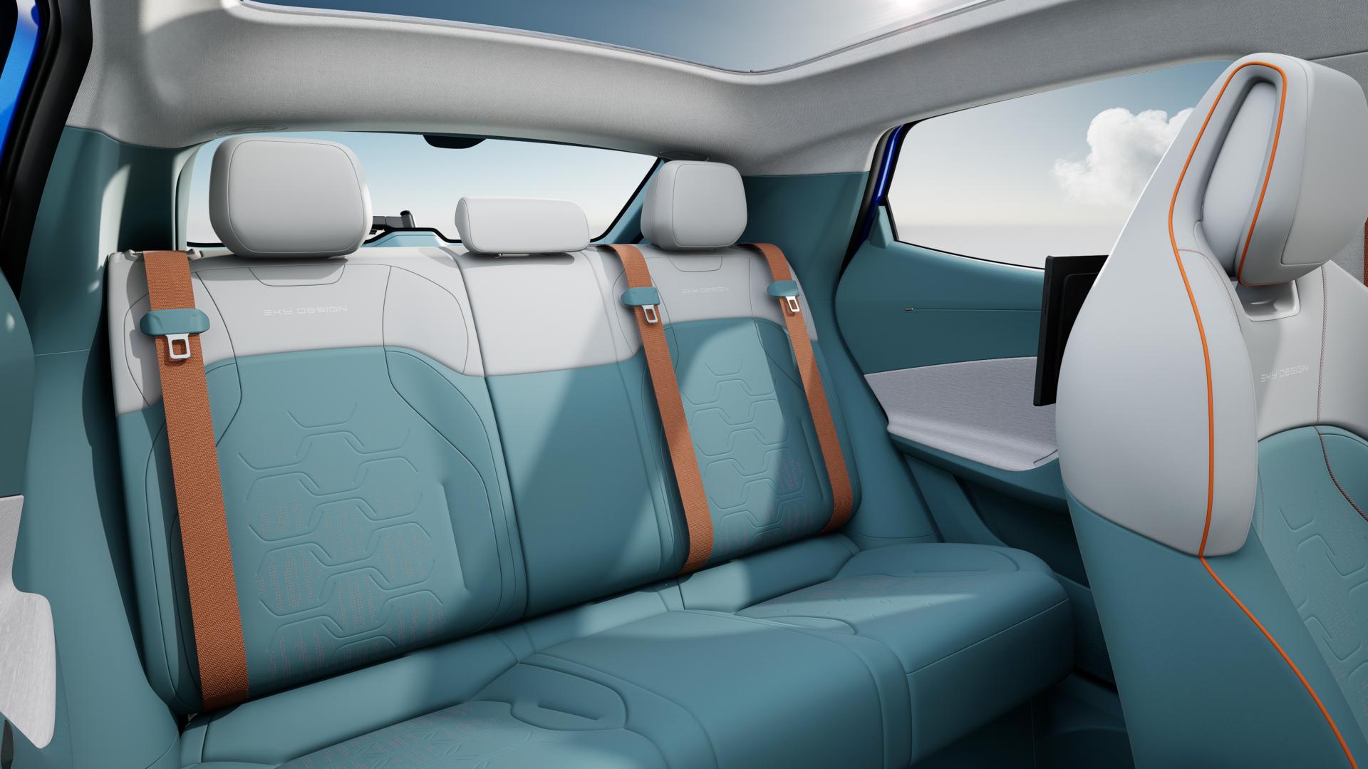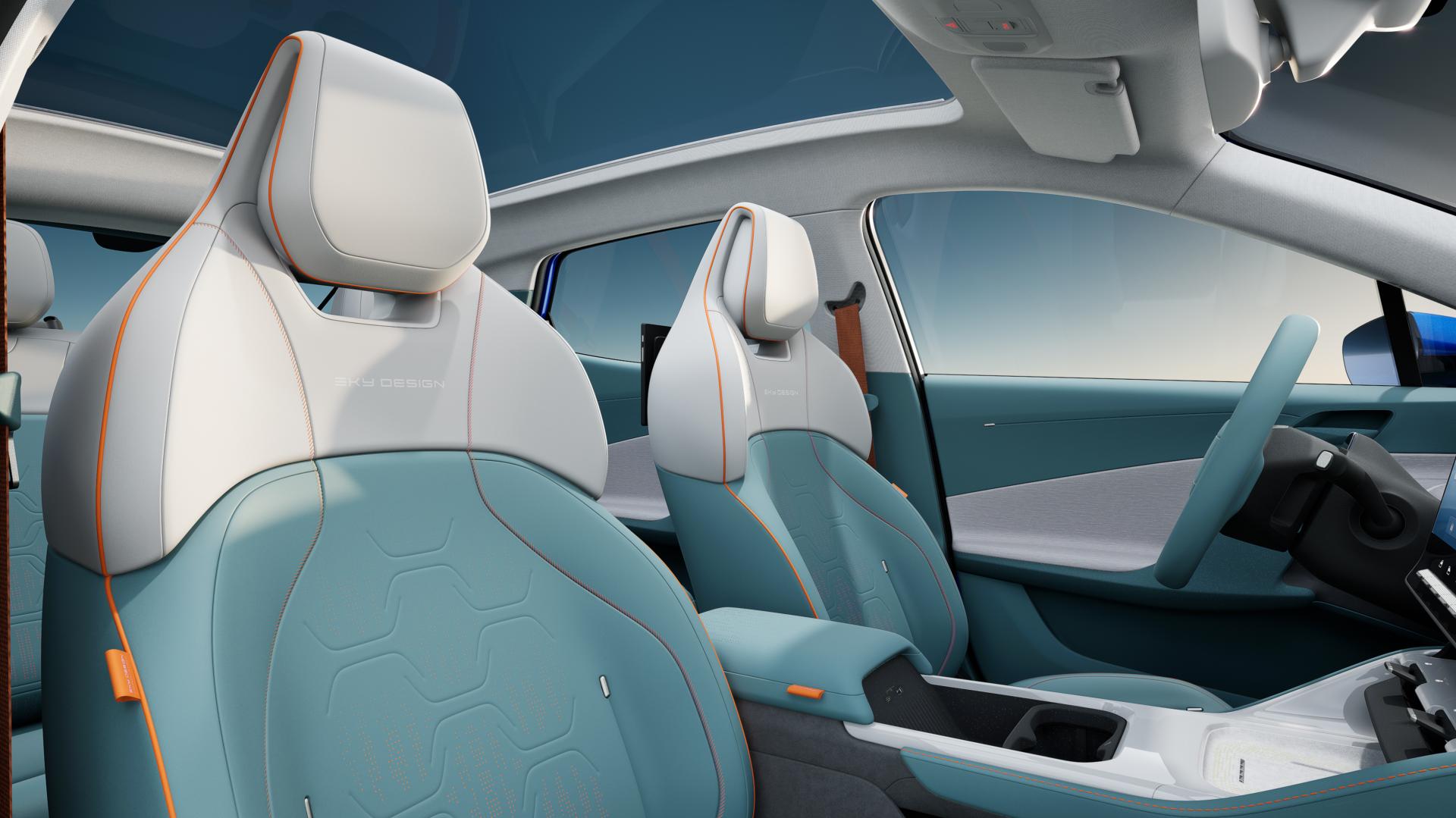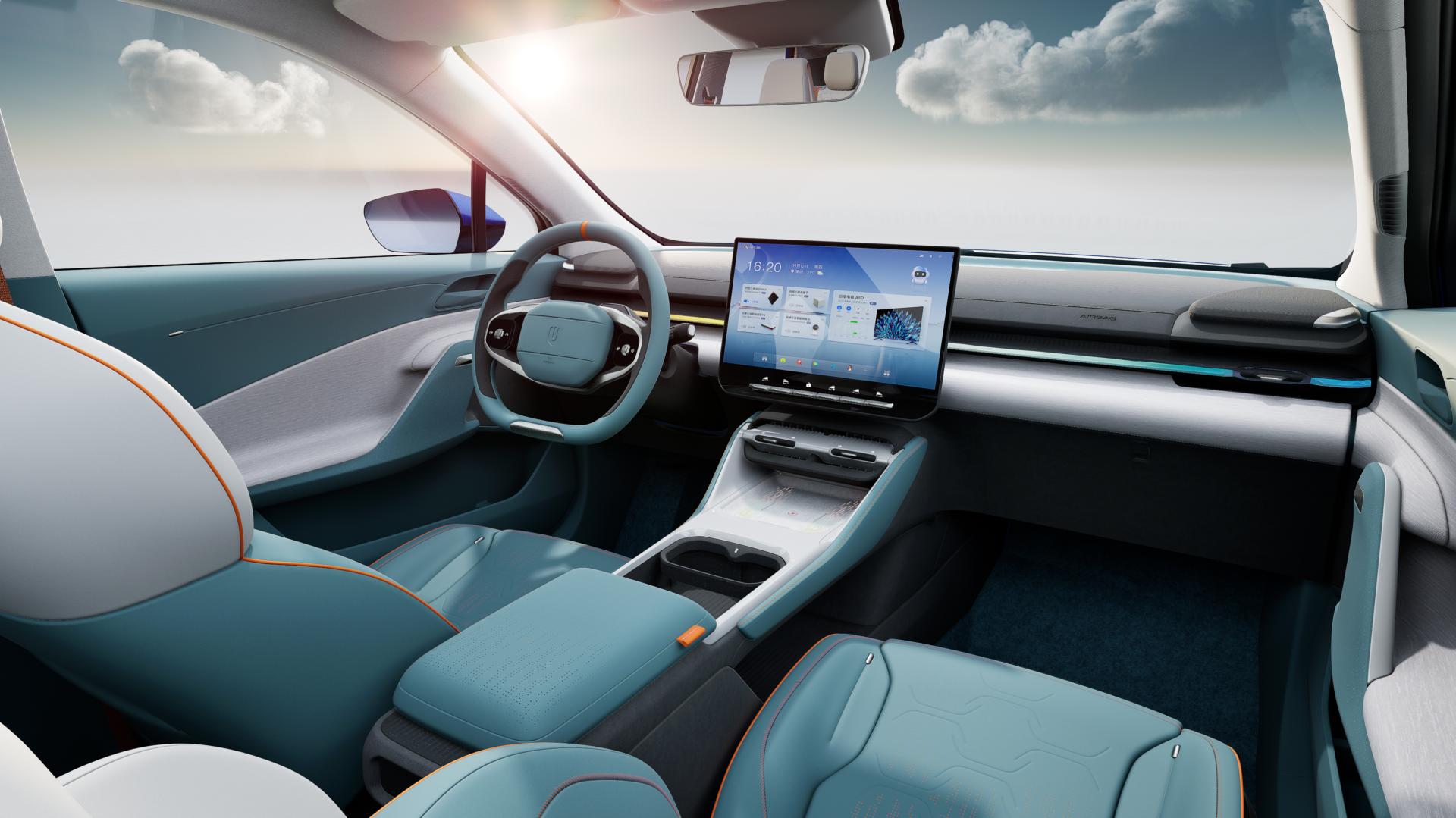 The interior of Skyworth Q blends Eastern and Western cultures to redefine the driving experience: The cockpit dashboard design integrates Western architectural aesthetics with Eastern horizontal symmetry art, creating a spacious and dynamic interior space. The serene and shimmering crystal ambient lighting, with its diamond-cut facets gently changing colors, casts a romantic and warm glow over the interior. The speakers at both ends of the dashboard float in the space, adding a sense of infinite technology and future fantasies.