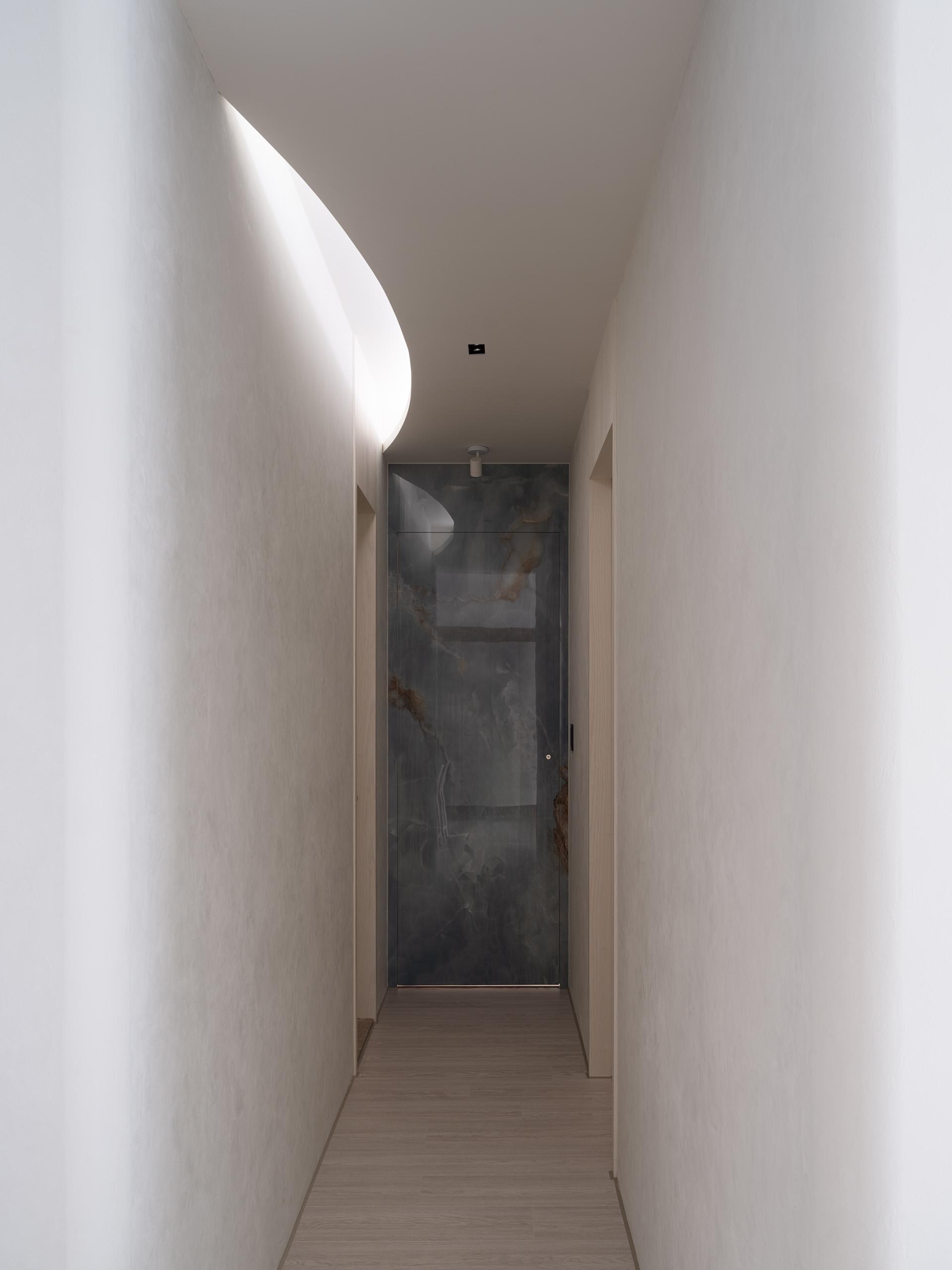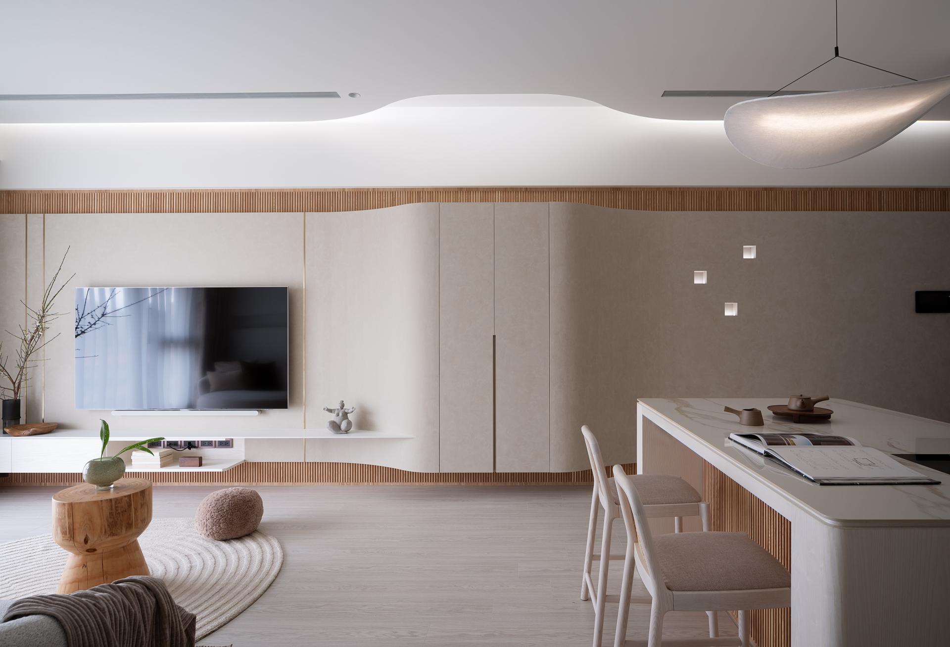 This project involves planning a private residence. Due to the layout being relatively long and narrow, the designer opted for soft curved lines and incorporated a suitable storage system to create a beautiful and practical home. The extensive use of curved shapes on the walls and ceilings required the use of modern 3D modeling technology to ensure precise joints. Additionally, the project includes the integration of smart home appliances that can easily adjust lighting, air conditioning, etc. via mobile phone or voice commands. This not only improves daily convenience but also contributes to environmental protection and energy conservation.