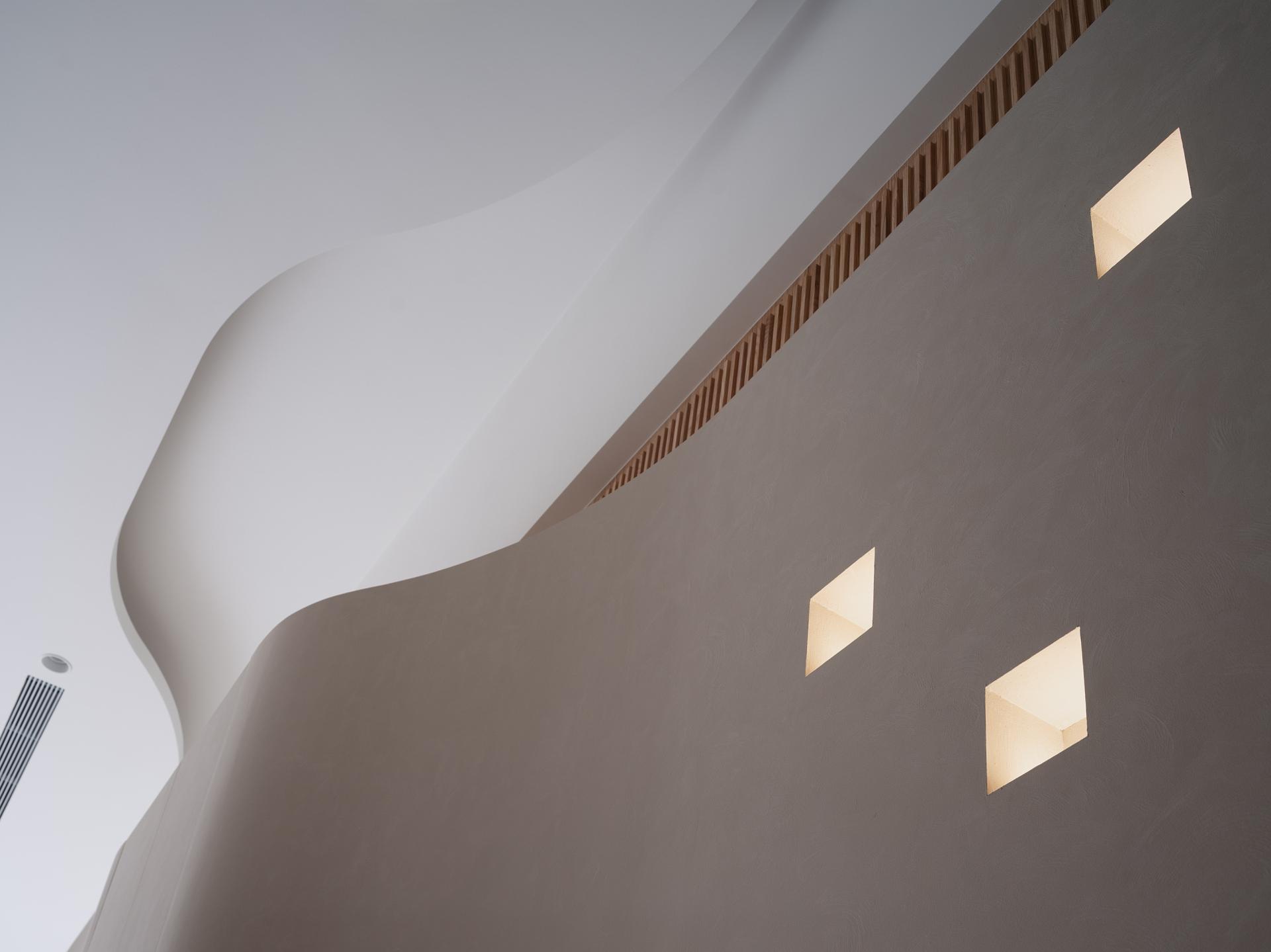 In this design, curves are used as the main focus. Precise structural calculations and craftsmanship techniques ensure that all curves meet aesthetic and functional requirements. Paired with warm earth tones, natural and environmentally friendly wood, and green building materials, this design creates a visually vibrant effect and brings people closer to nature. When occupants return to their warm and harmonious home, they feel as if they have returned to the embrace and protection of their mother, and they are immersed in a sense of security.