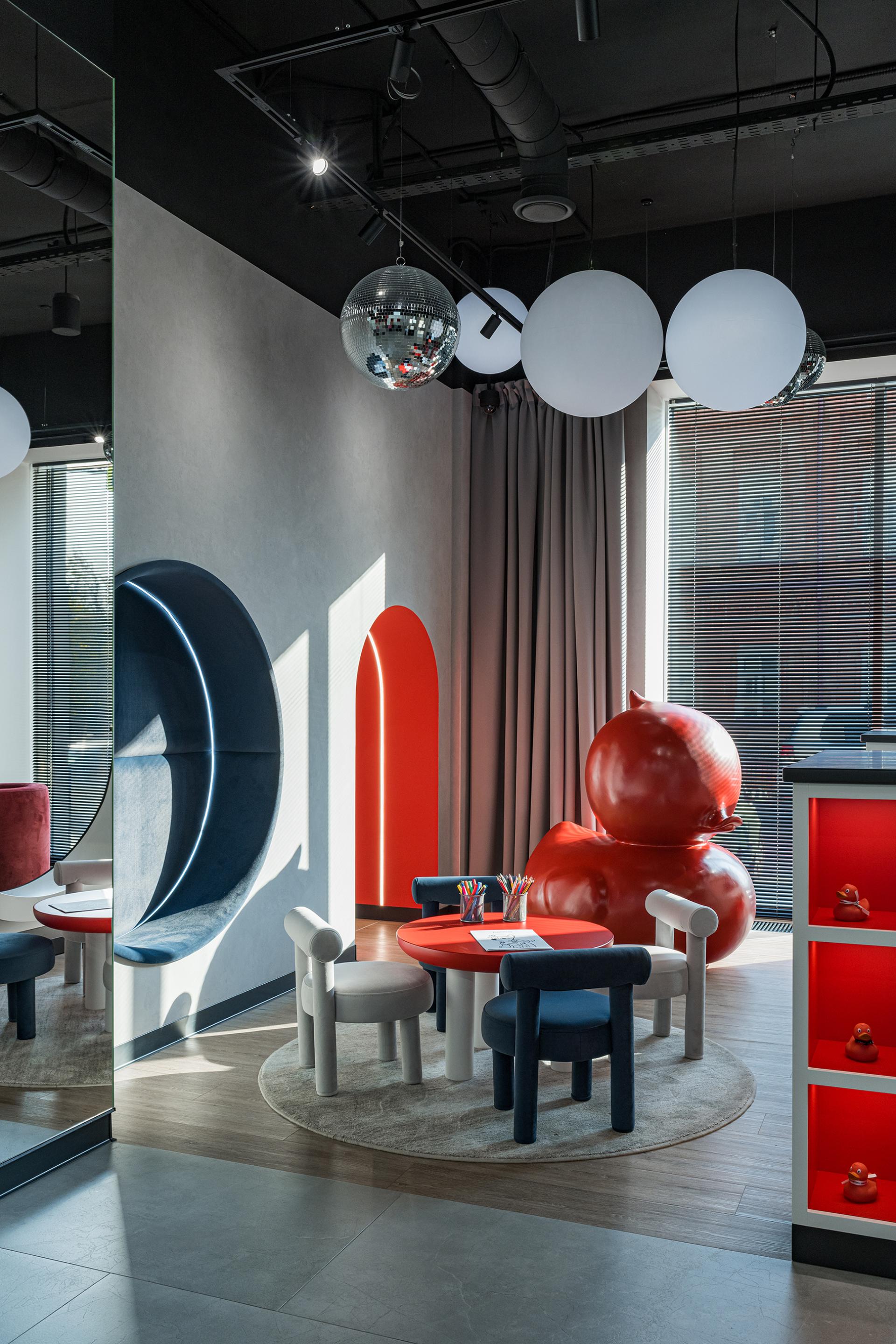 One of the standout features is the illuminated walls and glowing ceiling. These elements not only capture attention but also create a unique ambiance that emphasizes the company’s innovative approach. Lighting plays a vital role in shaping the overall perception of the space, instilling warmth and hospitality.