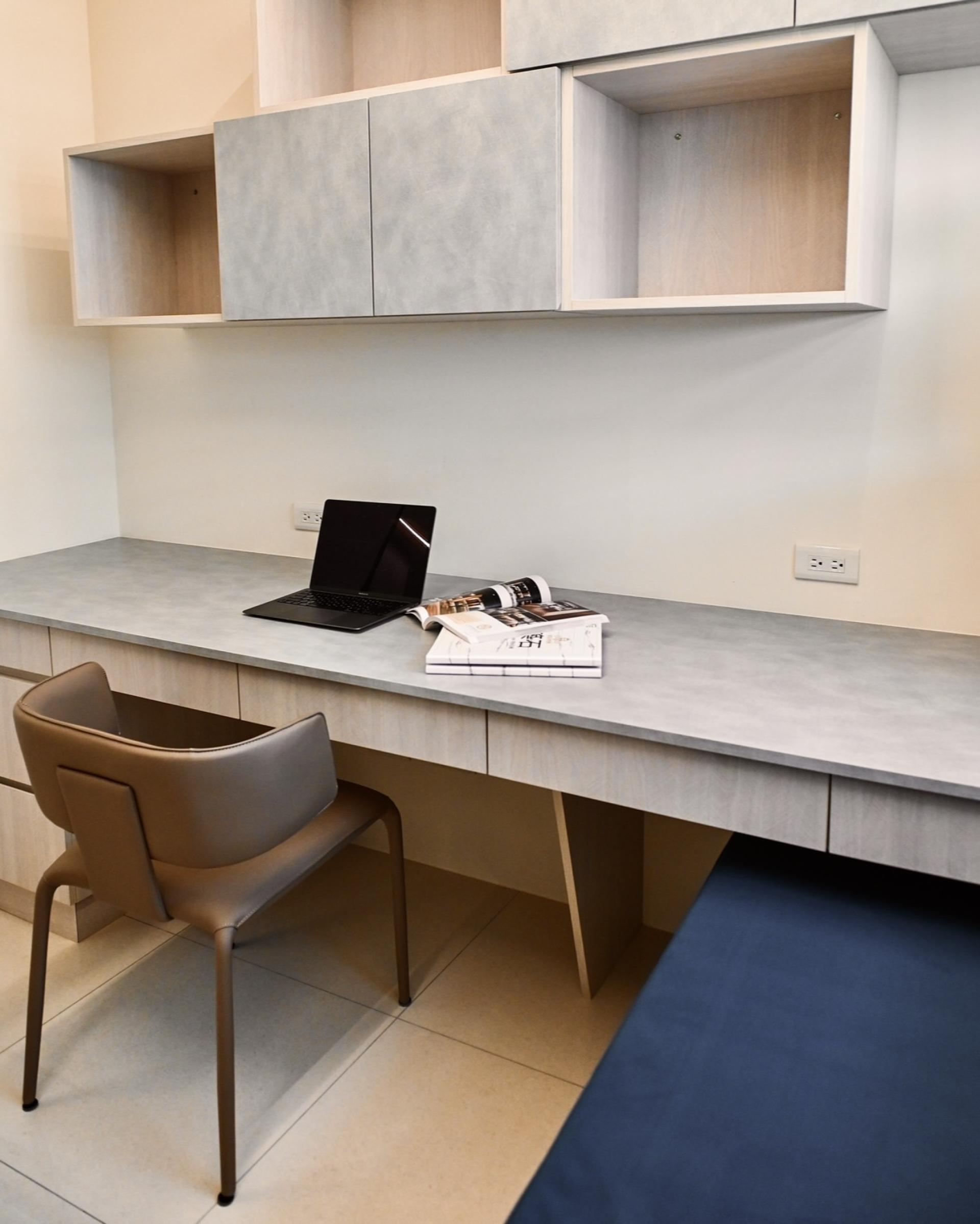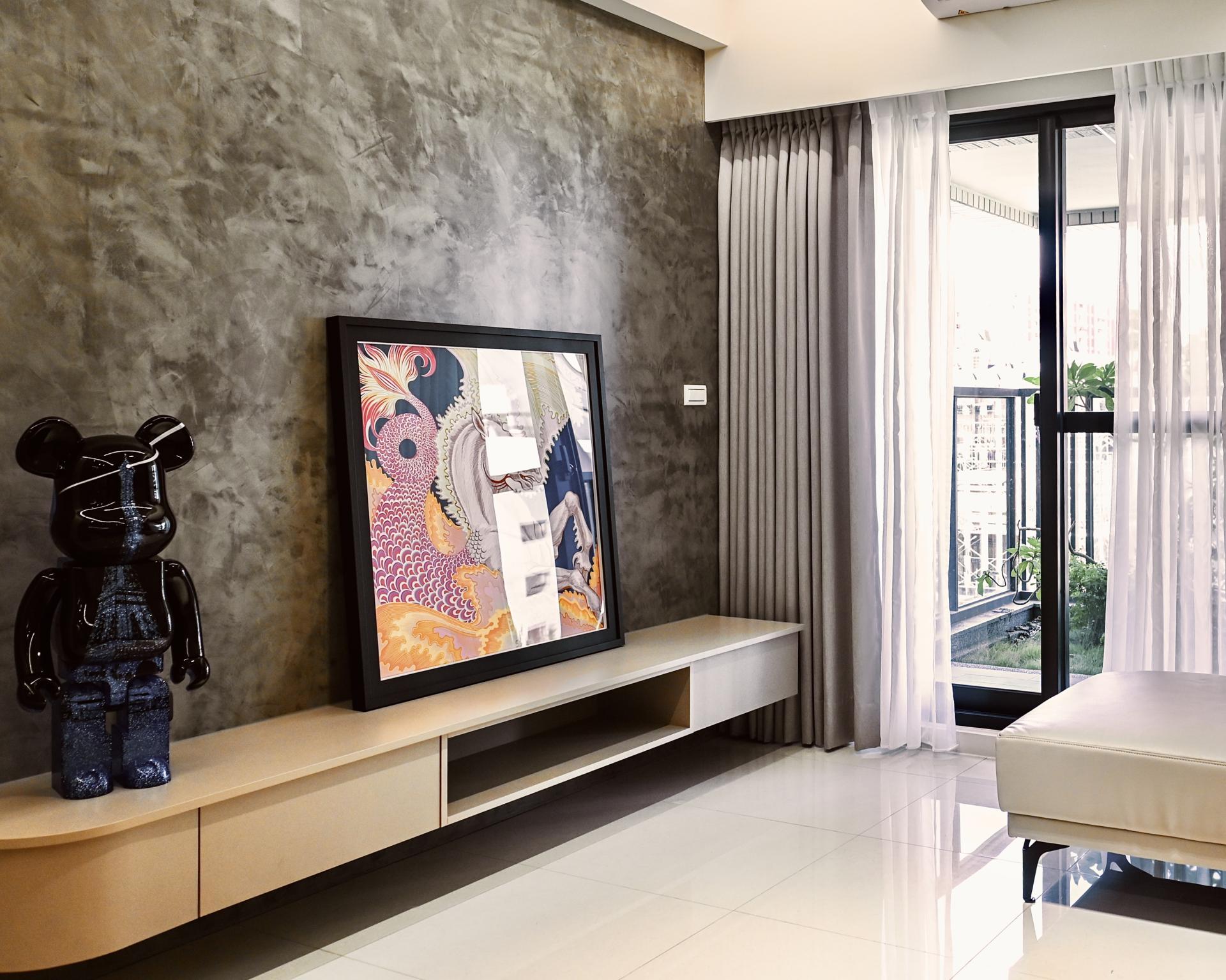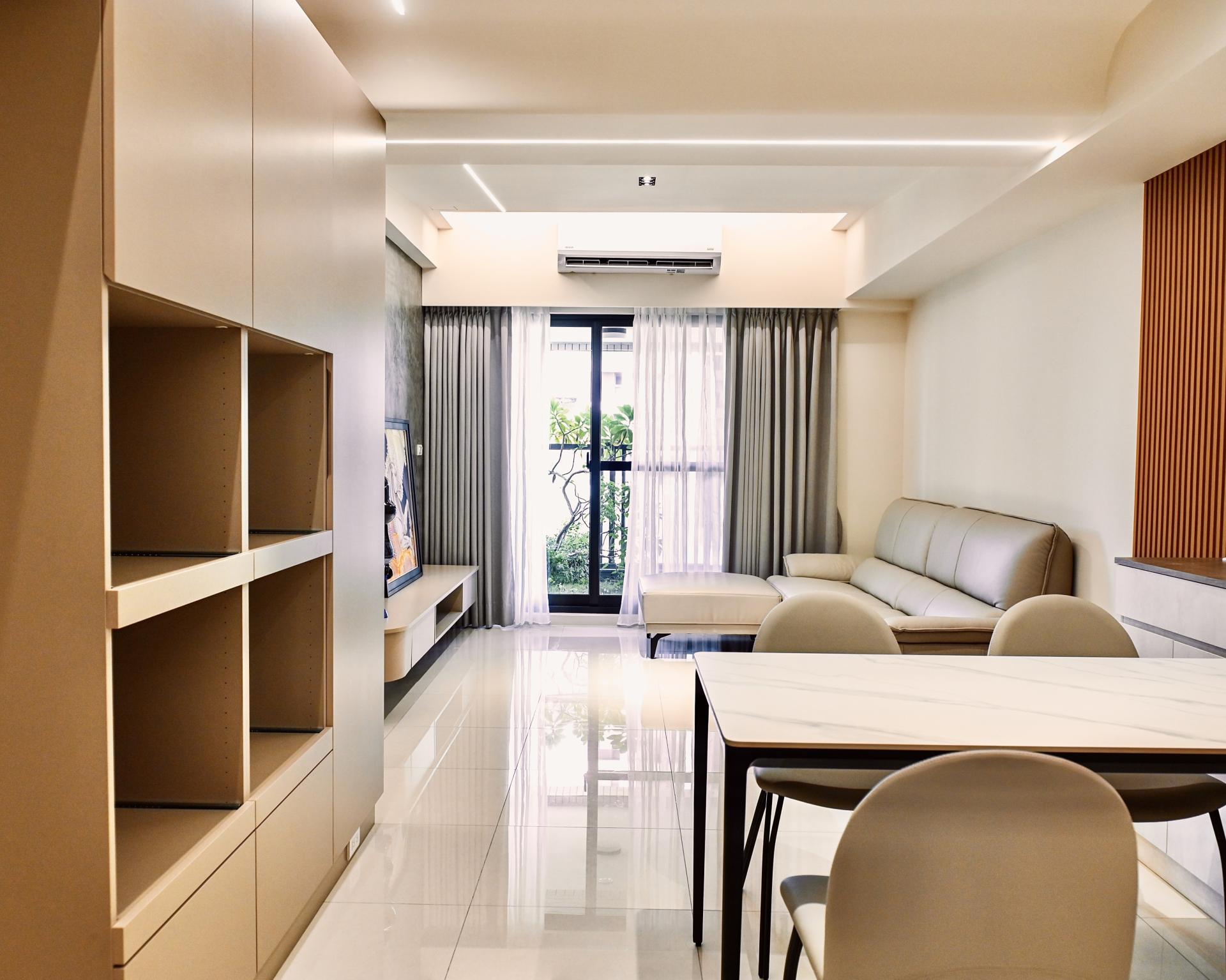 Our primary objective is to create a tranquil residence that aligns with our clients’ sophisticated preferences. This project presents a curated living space where beauty and functionality harmonize through a cohesive color scheme. A sleek ceiling accentuates the room’s clean lines and geometric layout, reinforcing its contemporary appeal. Expansive floor-to-ceiling windows bring in abundant natural light, illuminating greenery throughout and blurring the line between interior and exterior for an open, refreshing atmosphere.