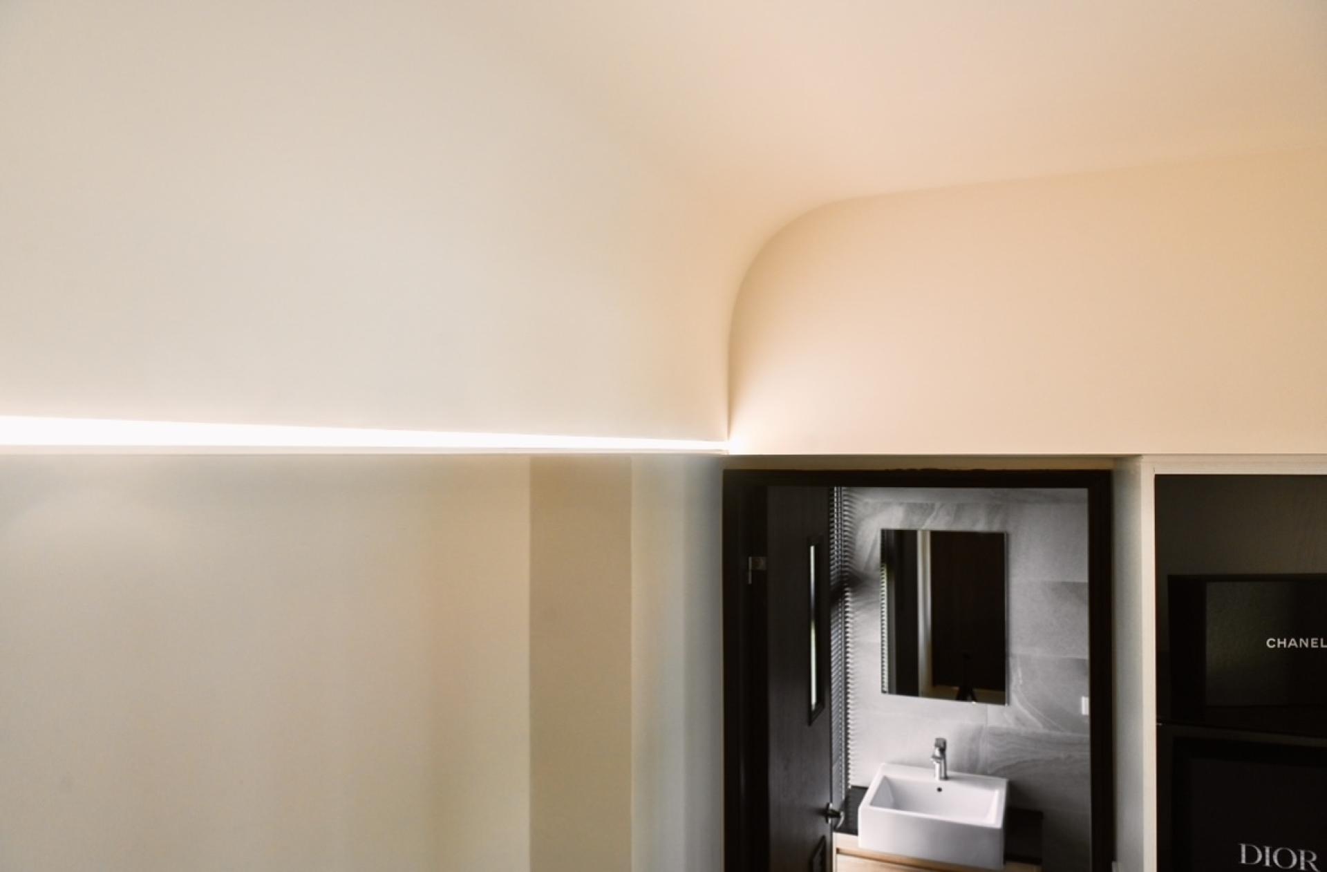 Greenery and organic textures are seamlessly woven throughout, balancing contemporary simplicity with timeless warmth. Rounded forms, such as bedside details, add softness, creating a sense of comfort and relaxation. Every detail—from plant placement to layered textures—reflects precision and intent.