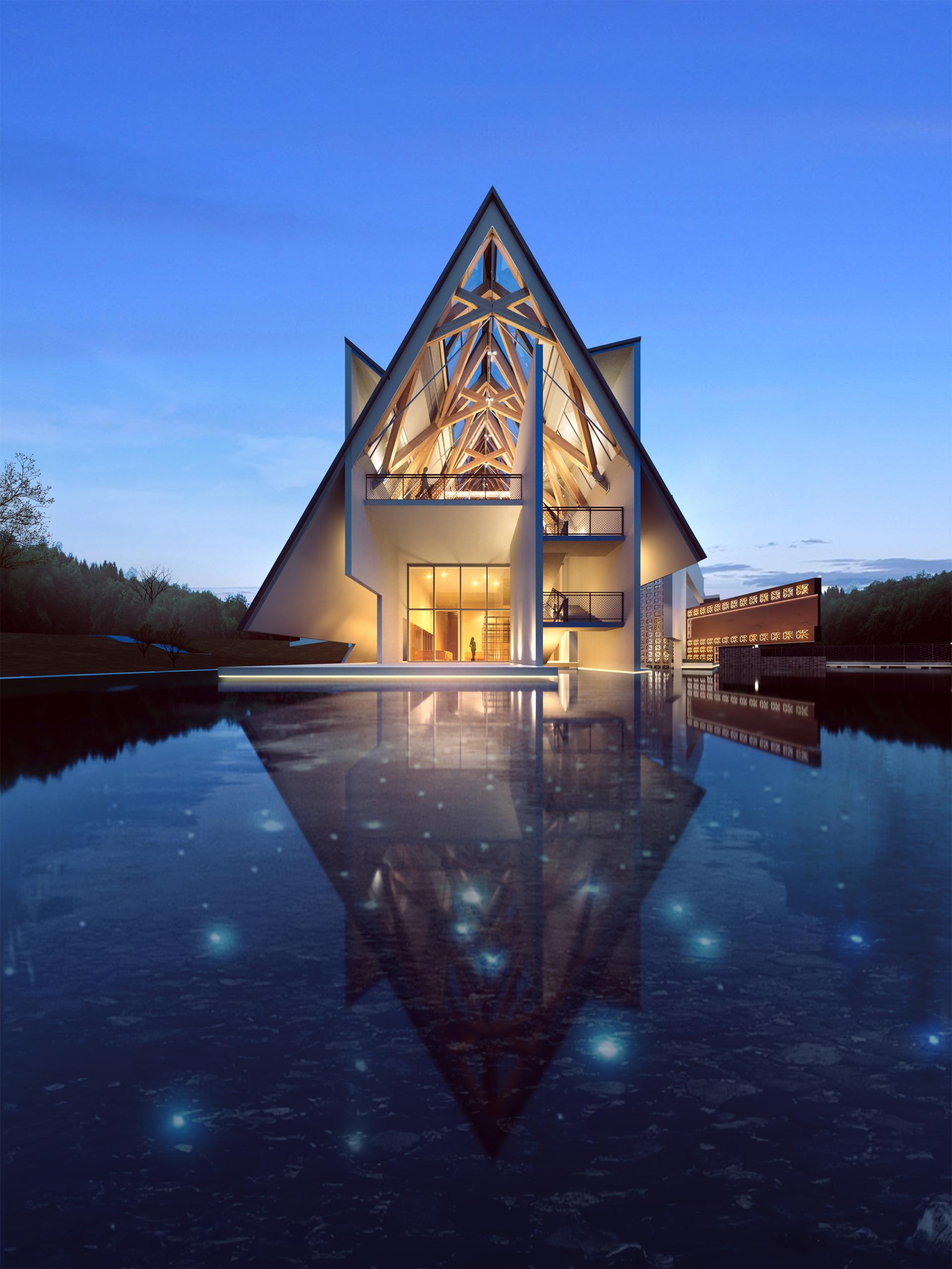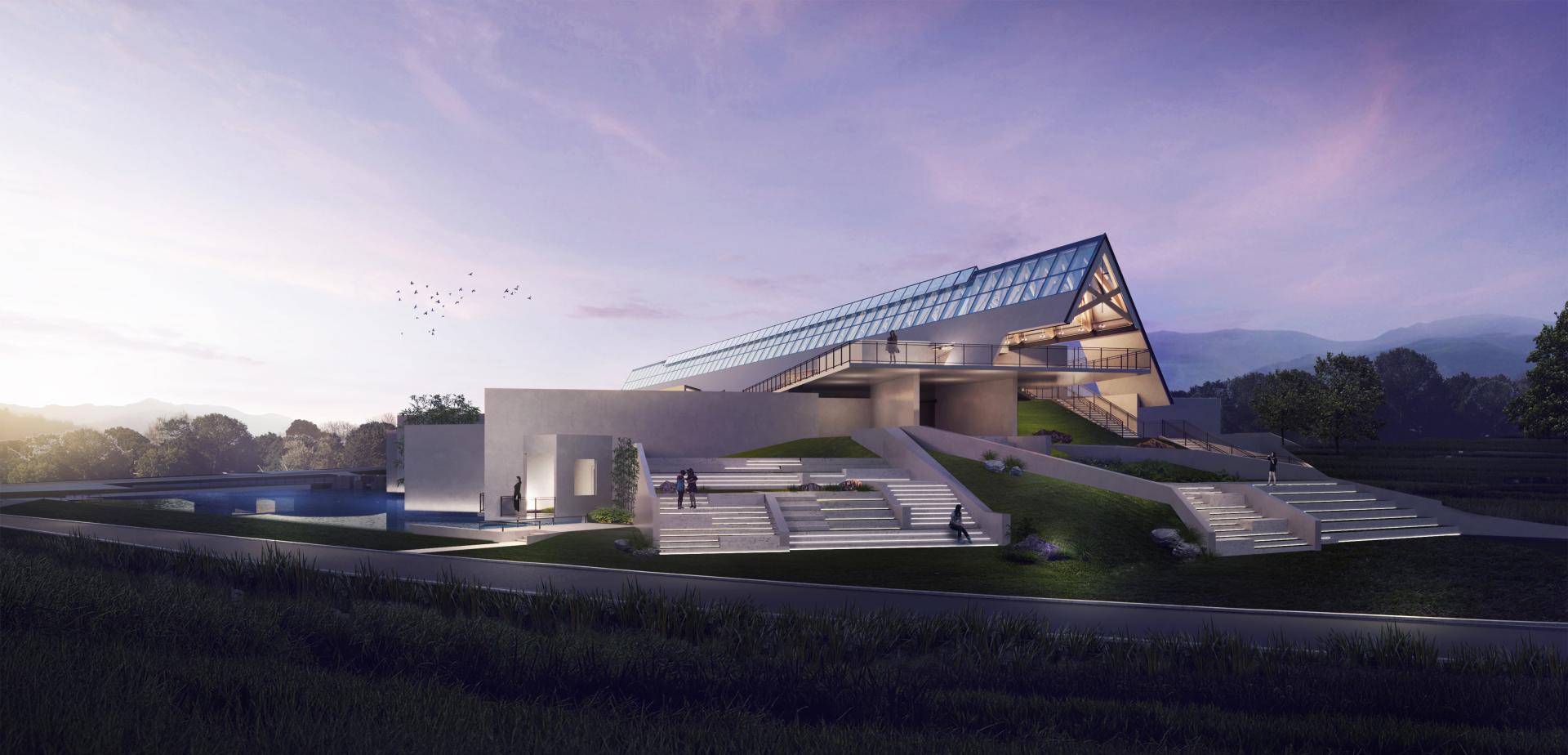 The center uses the texture of the site as the language of geometric composition. Through the transformation and combination of geometric shapes, it cooperates with landscapes, fields, squares, and platforms to complete the construction of spatial points, lines, and surfaces. The design uses constructivist techniques to abstractly illustrate, associate, and reconstruct geometric space situations. It integrates with the site environment in a regular and free space form, blurs the boundaries with the use of wall pieces, and extends the landscape form, creating an architectural image with regional cultural and artistic characteristics, achieving an organic combination of man and nature, and becoming a place for the town to tell stories, thereby awakening people's sense of identity with the spatial culture of the town.