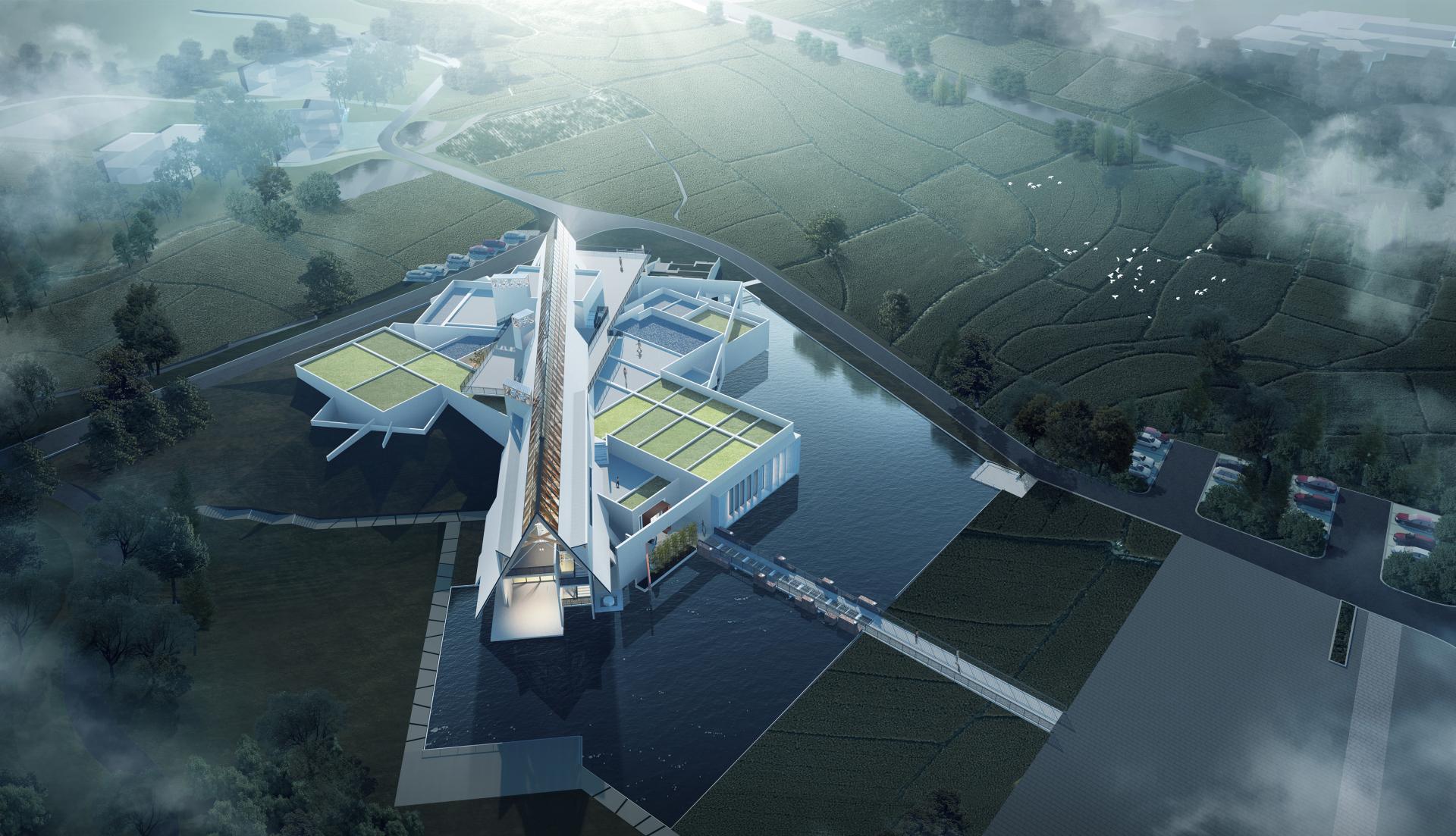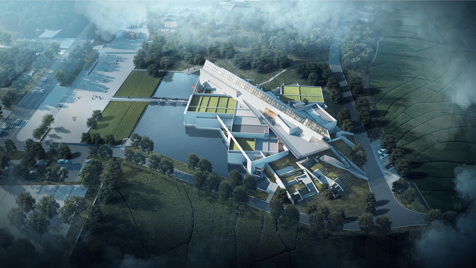 The center organize different geometric spaces into narrative contextual space with the tour streamlines, realizing the organic continuity of different types of spaces. According to the characteristics of the site environment, the main entrance passes through the rice fields and water from the square, and then turns in the traditional chinese garden style. At the same time, elements such as stairs, bridges, platforms and courtyards are added to the streamlines, and the space is unfolded layer by layer during the journey.