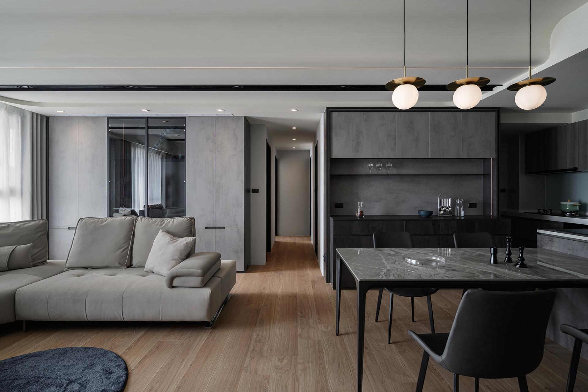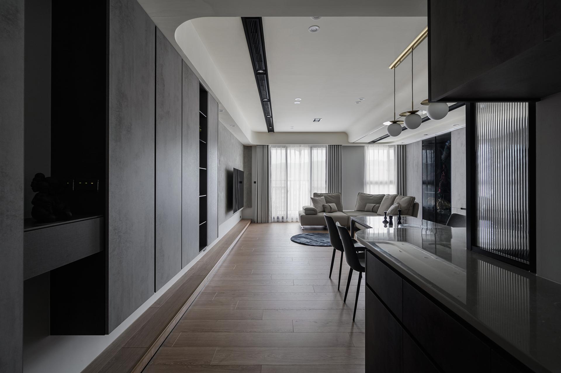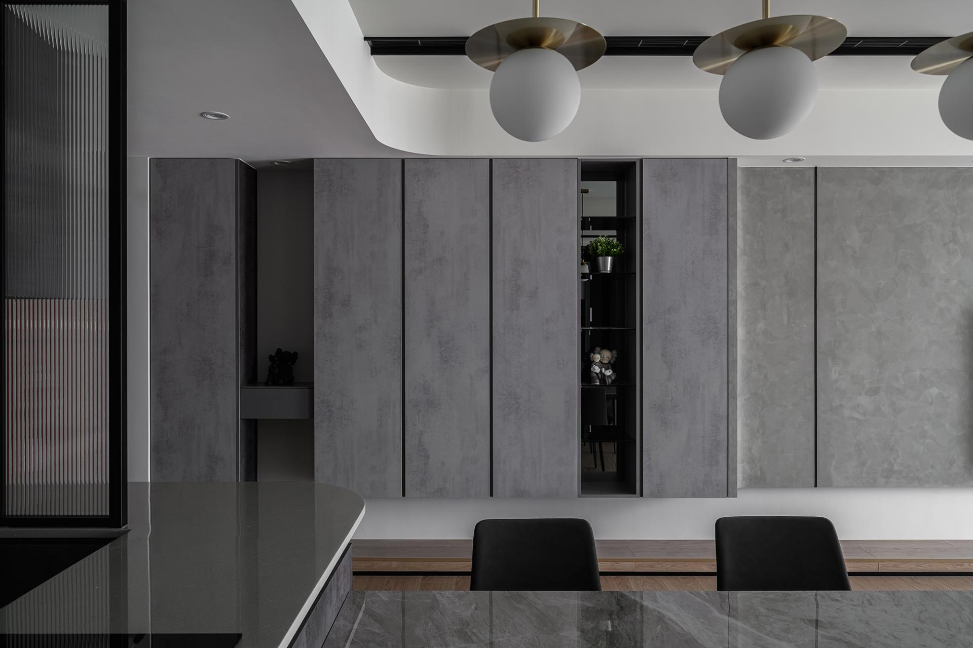 In contemporary urban environments, characterized by their bustling pace and inherent stress, this project endeavors to establish a tranquil, relaxing, and harmonious living space for its occupants. To evoke the desired aura of mystery, the designer has opted for a dark gray color palette and has skillfully integrated a variety of materials, thereby creating an elegant atmosphere enriched by warm lighting. Furthermore, a diverse selection of cabinet configurations has been implemented to provide ample and flexible storage solutions that cater to the residents' organizational requirements.