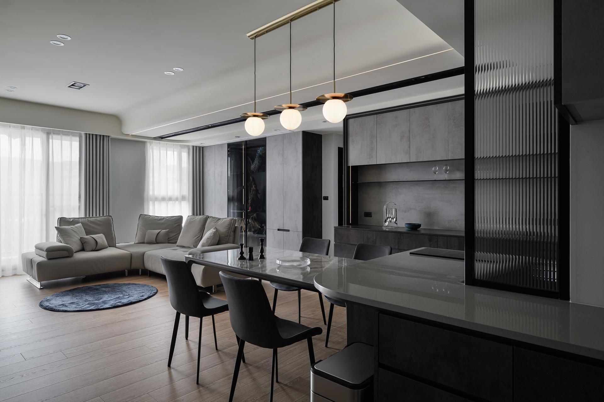This project exemplifies an open planning layout that increases the perception of space within a limited area and facilitates more efficient circulation. It enhances both flexibility and utility, while also promoting communication and interaction among family members. This design allows the homeowner to engage in cooking or other tasks without sacrificing emotional connections with their family. Furthermore, the designer took into consideration the presence of children in the household; as such, the entire residence features handle-free cabinets that mitigate the risk of injury from collisions, thereby improving overall safety.