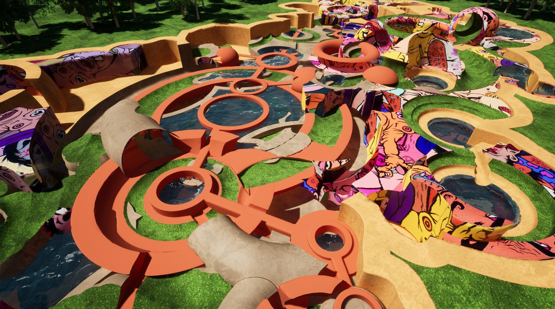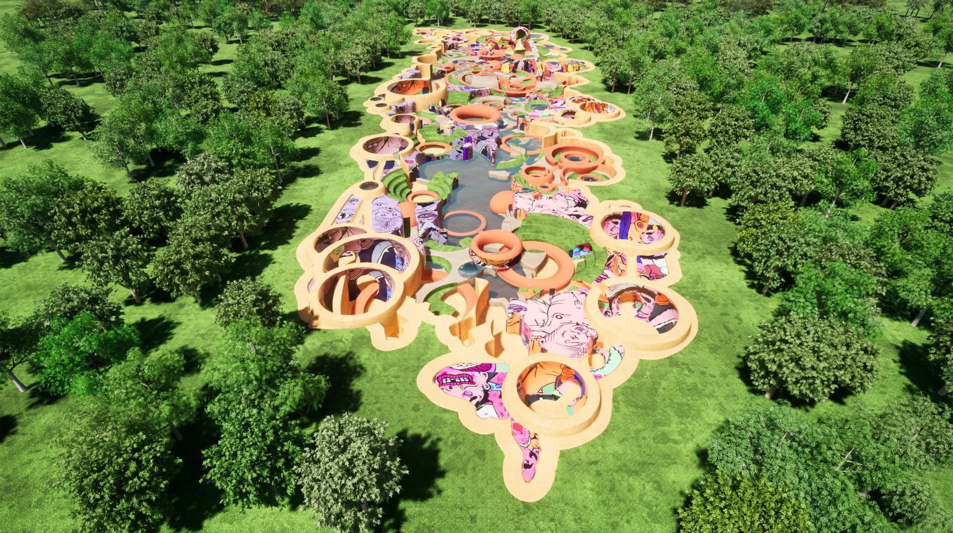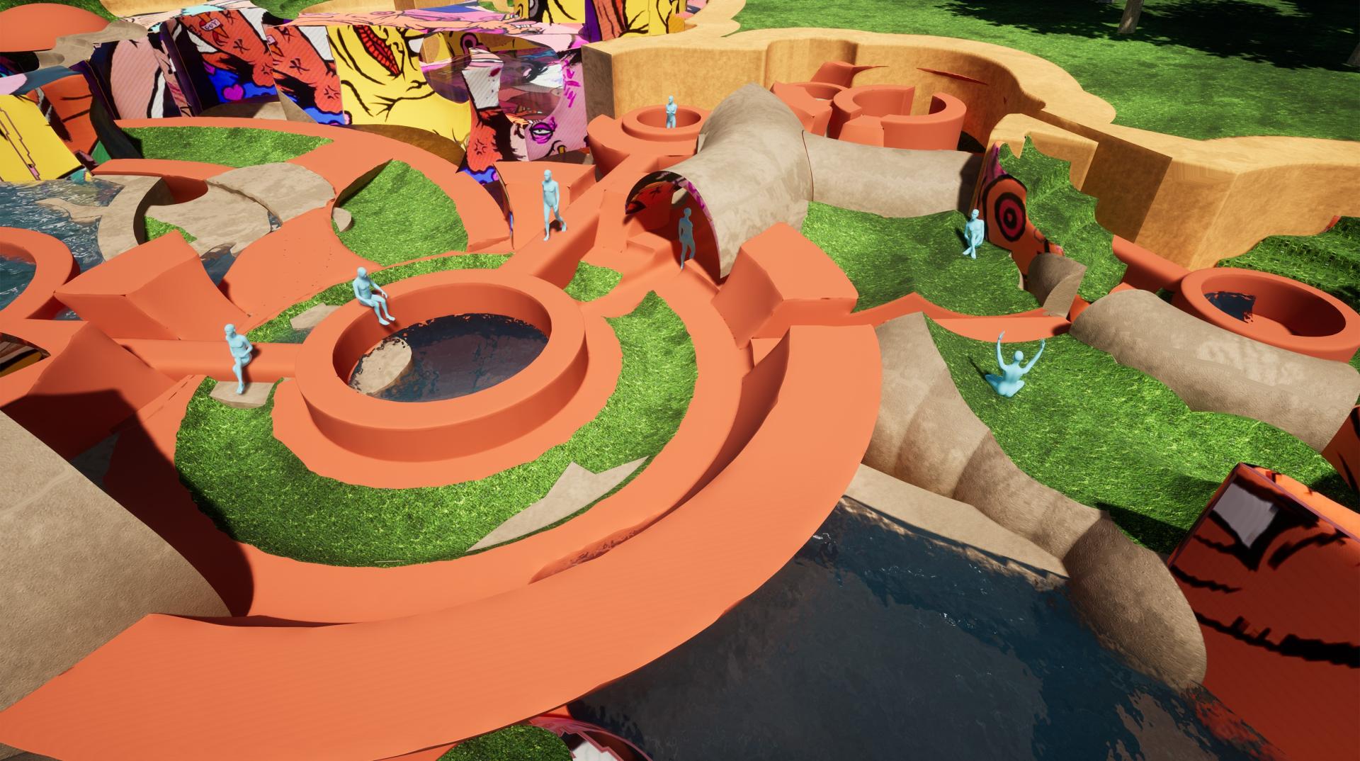 During this pandemic all public parks have been closed because they could not sufficiently promote social distancing. A park as a public space not only allows people to learn and improve themselves, but also offer a place to communicate and relax. We developed a playful idea of using simulated rounded, isolated figures and cluster them all together to create the site. In the final product, users are traveling within this cluster, while being discouraged to cluster themselves. How does a public area could be shaped according to social distancing rules? A decentralization strategy has been implemented to create several spaces and pathways to distribute clusters of people into small groups or individuals. Circular divisions create ever changing functions and forms through intersections and redirection. The center of the circles are less accessible to discourage our natural tendency to cluster at a center. Instead users travel and rest within varying rings around the center. It is a flexible design that offers a response to the uncertainty of tomorrow’s public space.