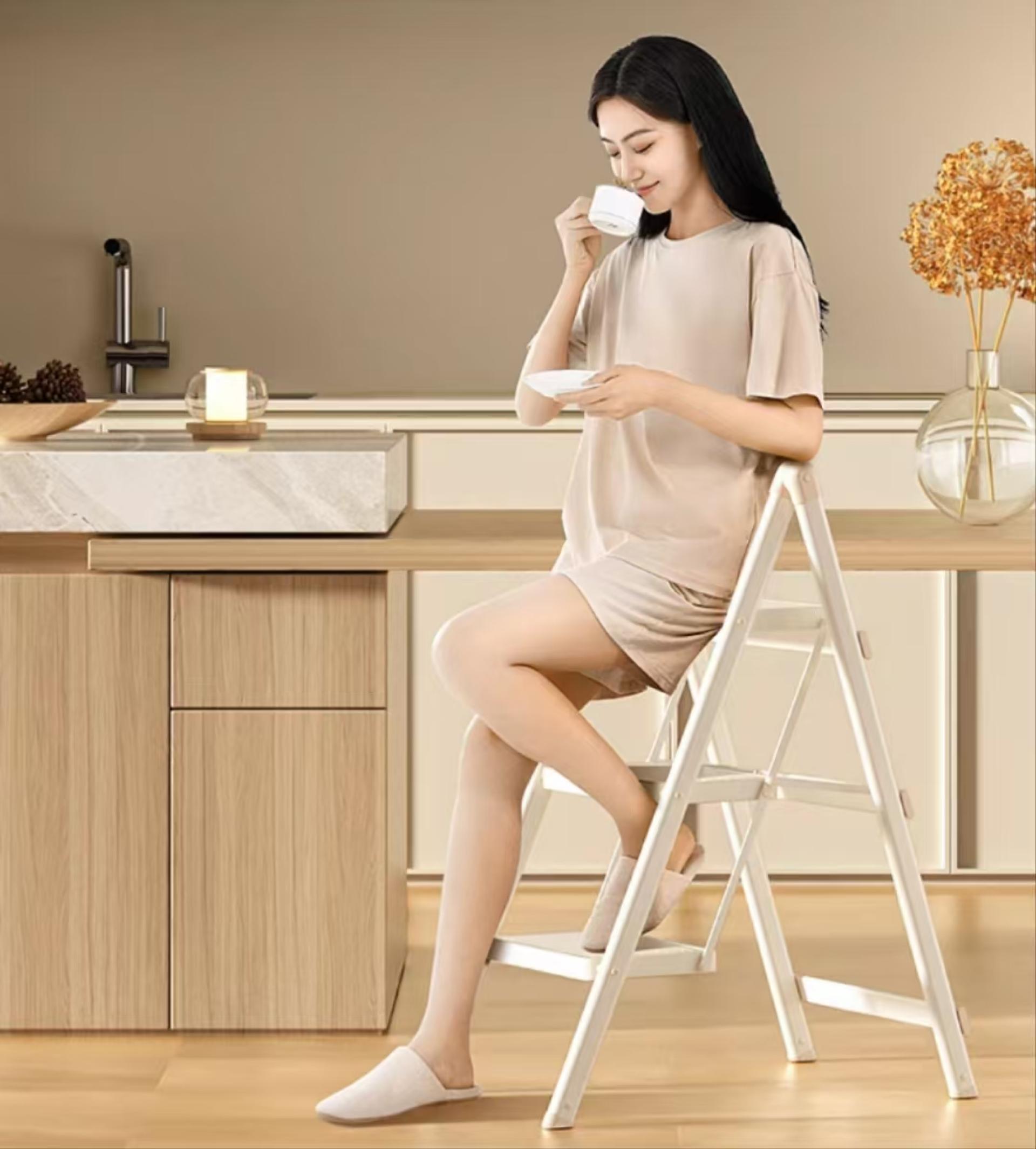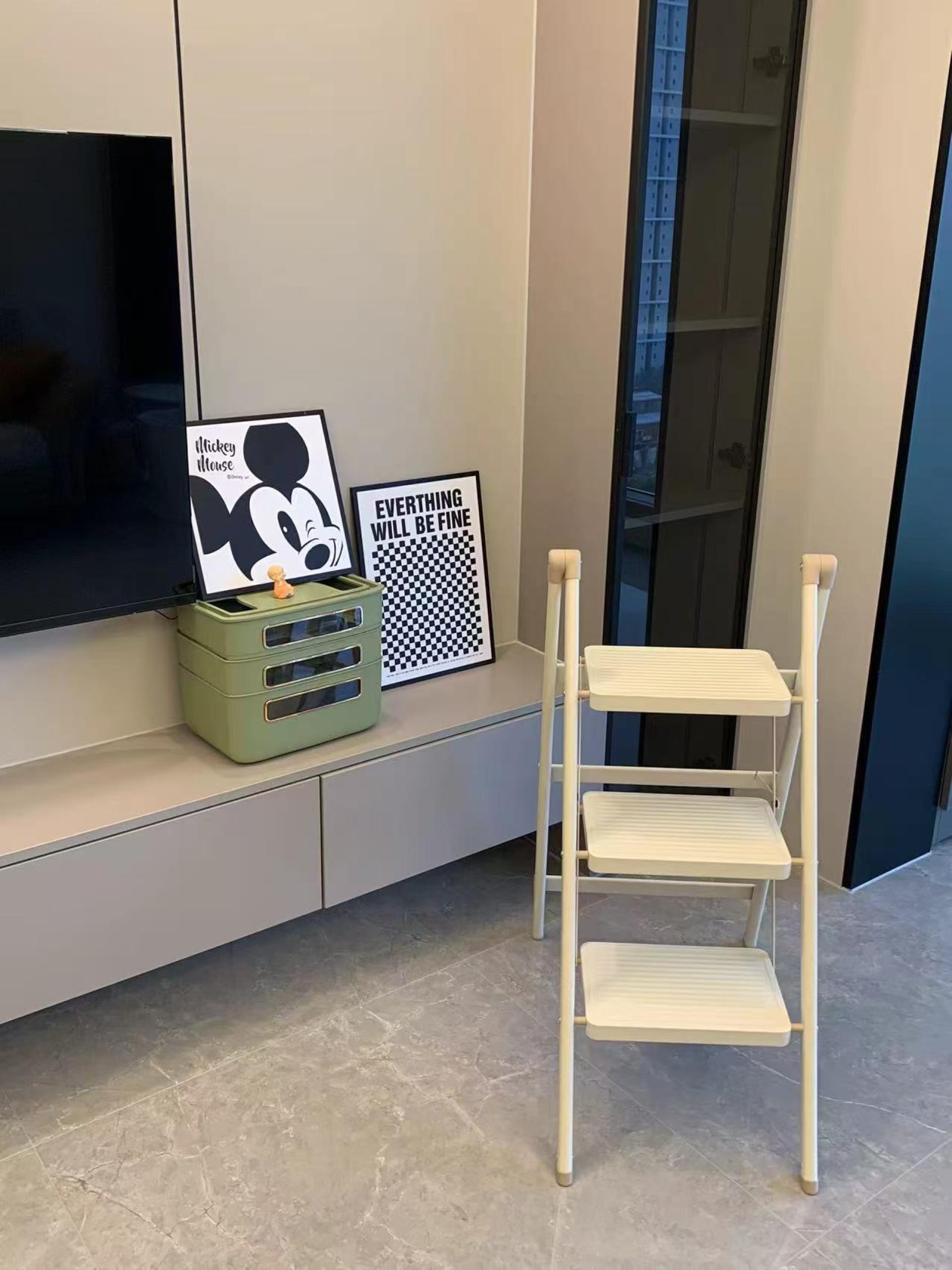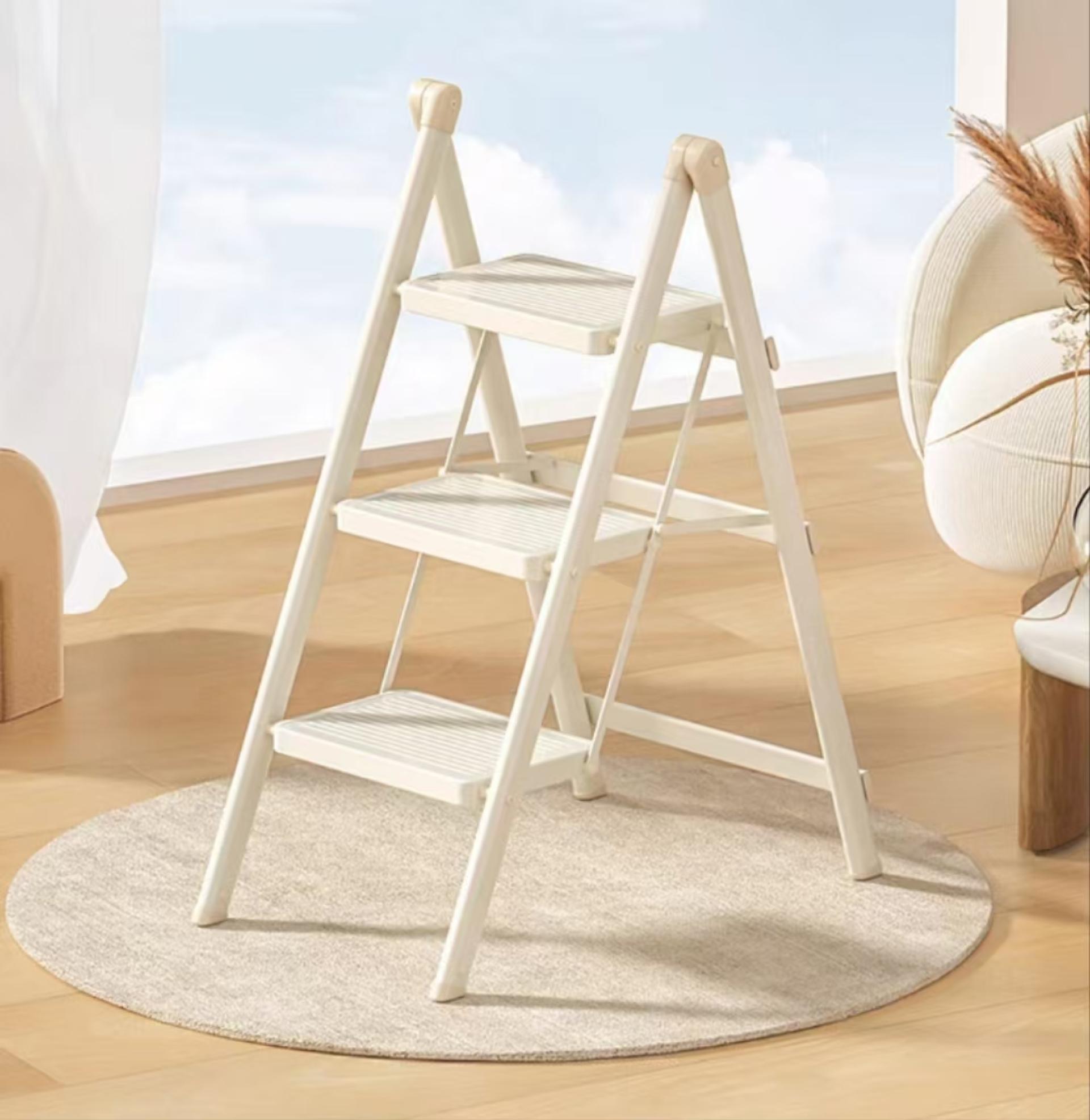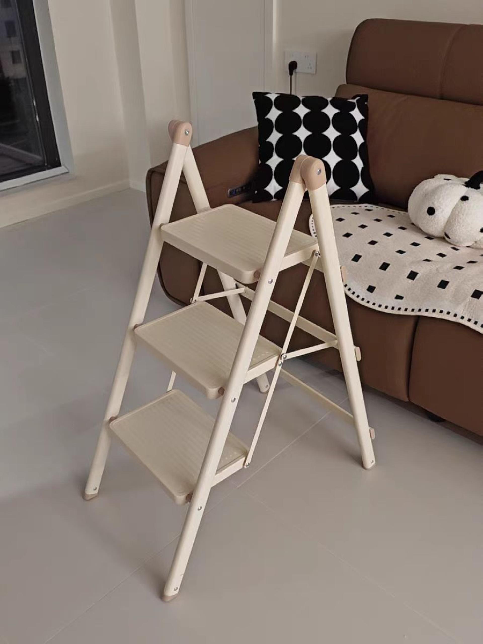 This product fully considers the actual needs of users. Reasonable pedal spacing design provides a comfortable step space, making the climbing experience more pleasant. The product is ready to use, no need to install it yourself, one-button folding, easy to operate. Lightweight design, only 5kg ladder weight, women and elderly can also lift it easily, free from the constraints of bulky furniture. The horseshoe-style two-way anti-skid and soft rubber foot pad design is suitable for a variety of household floors, silent and anti-skid, does not damage the floor, so you can feel more at ease and comfortable during use.