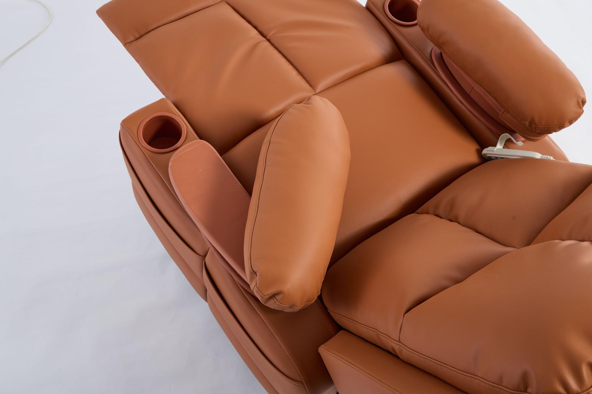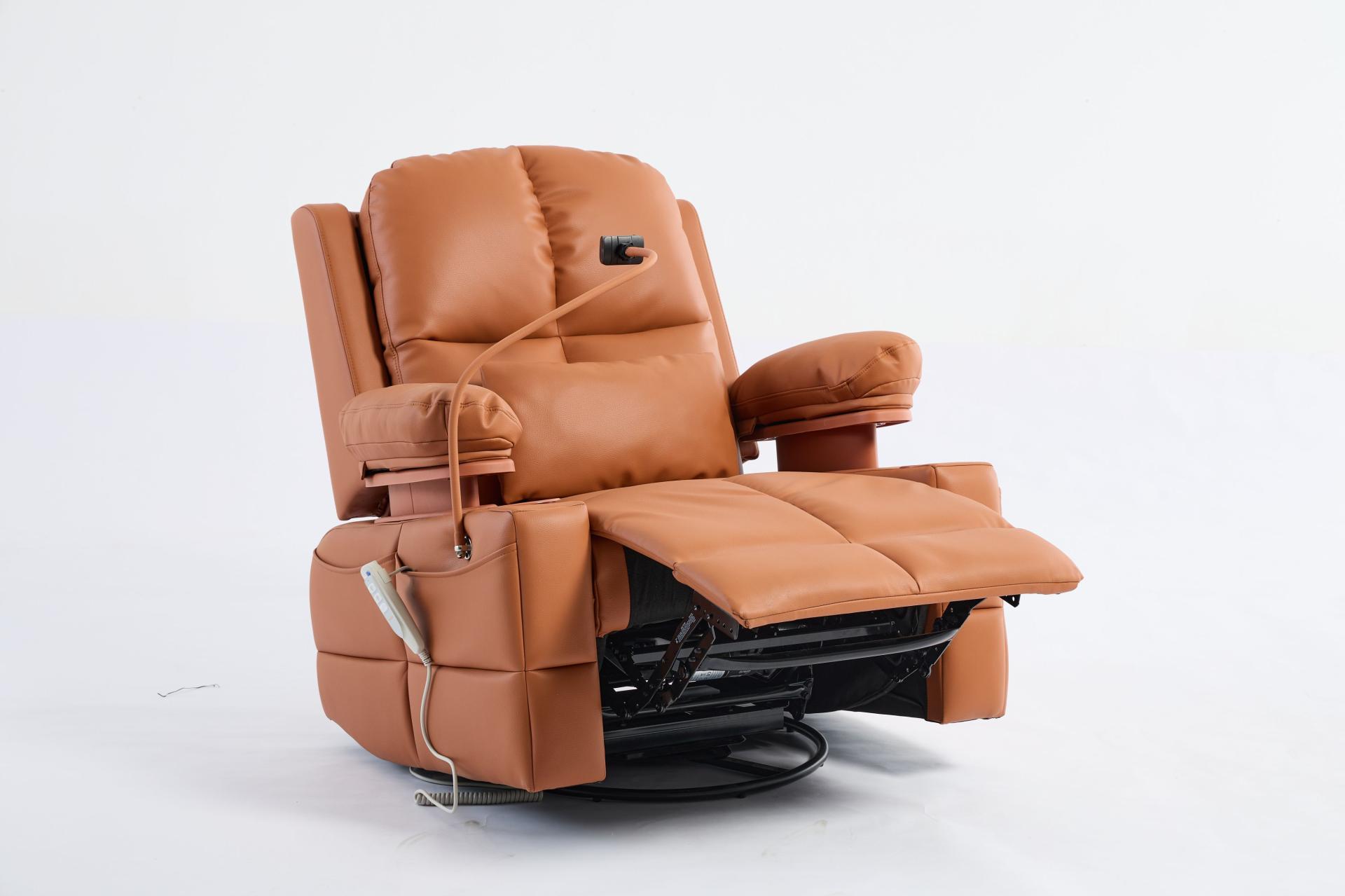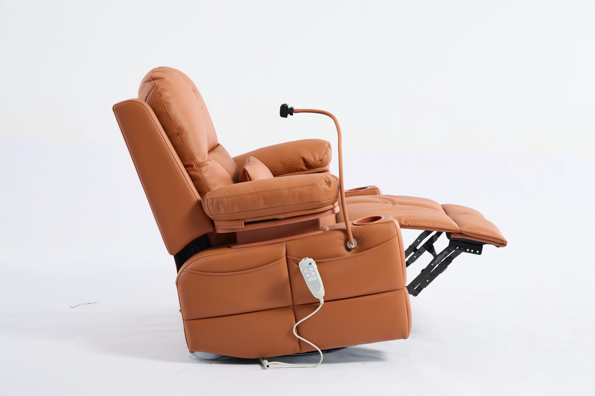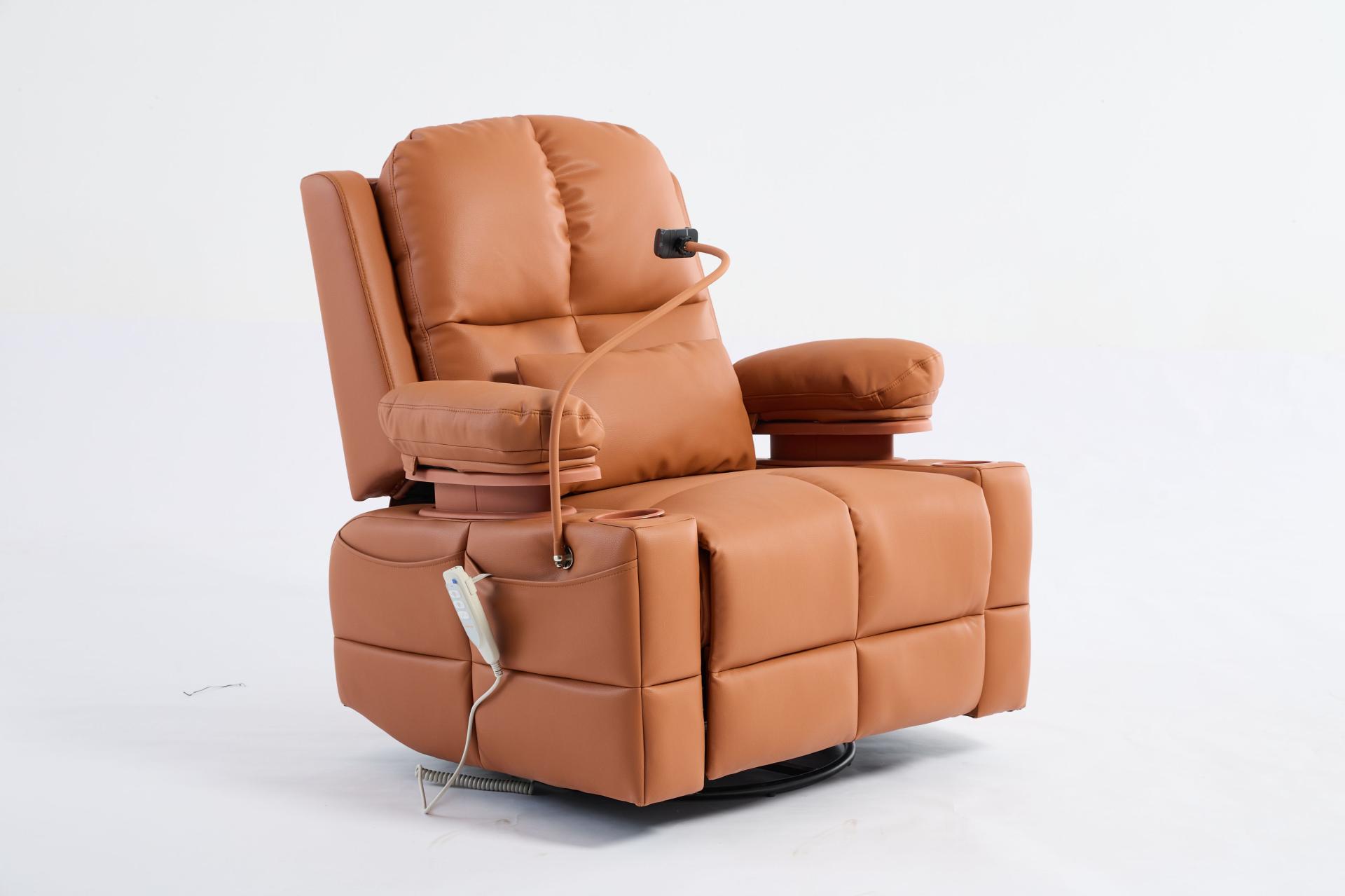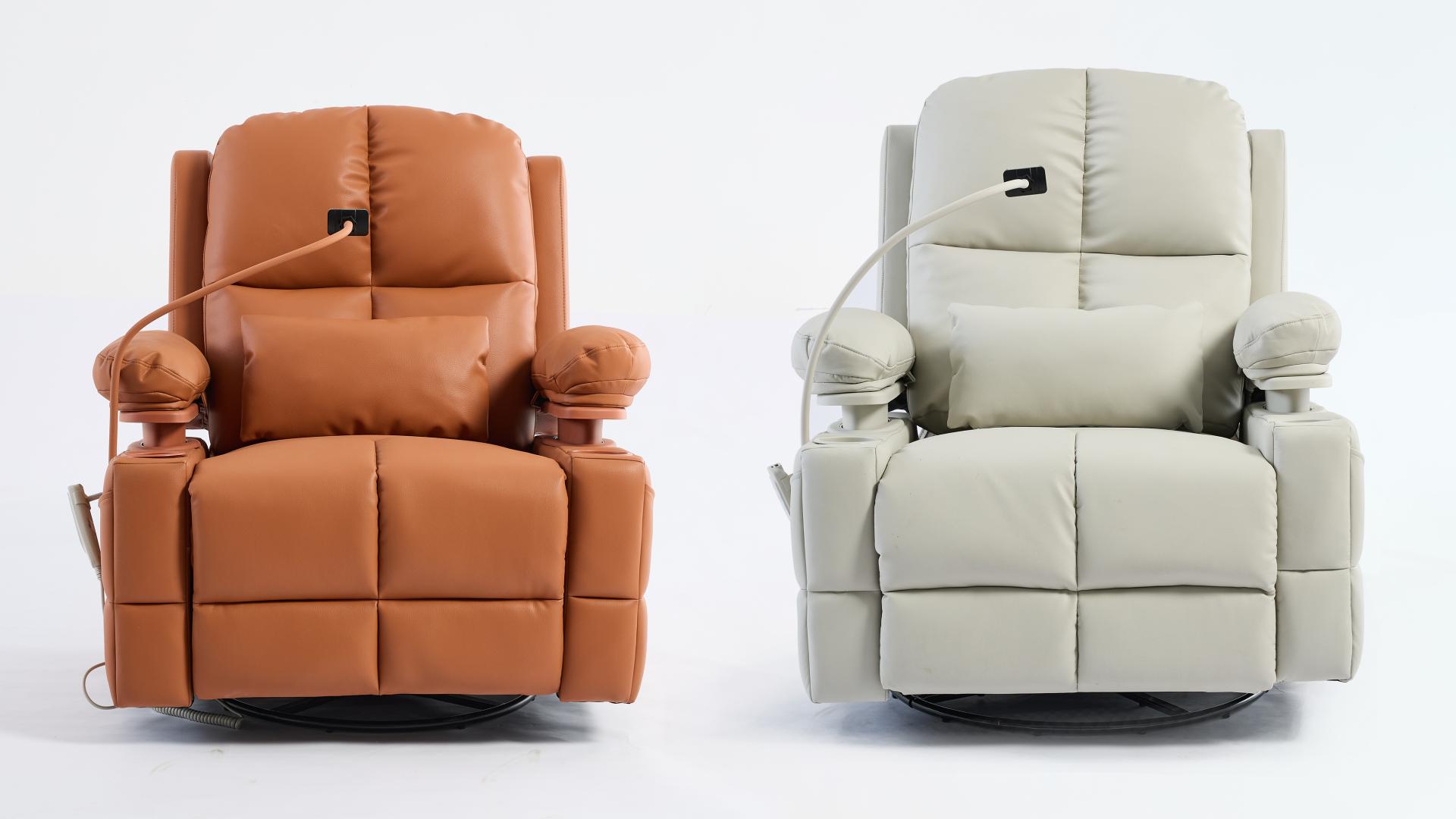 Incorporating ergonomic principles, the chair's functional design includes adjustable armrests that provide additional support and mitigate muscle tension associated with extended breastfeeding. Furthermore, the storage compartments within the armrests offer convenient access to personal items such as snacks, tissues, or mobile devices, minimizing unnecessary movements for optimized ease of use. The chair is also furnished with holders for mobile phones and tablets, compatible with a wireless charging feature, as well as cup holders on either side, ensuring that users can engage with entertainment while maintaining hands-free convenience, thereby enriching the overall use experience.