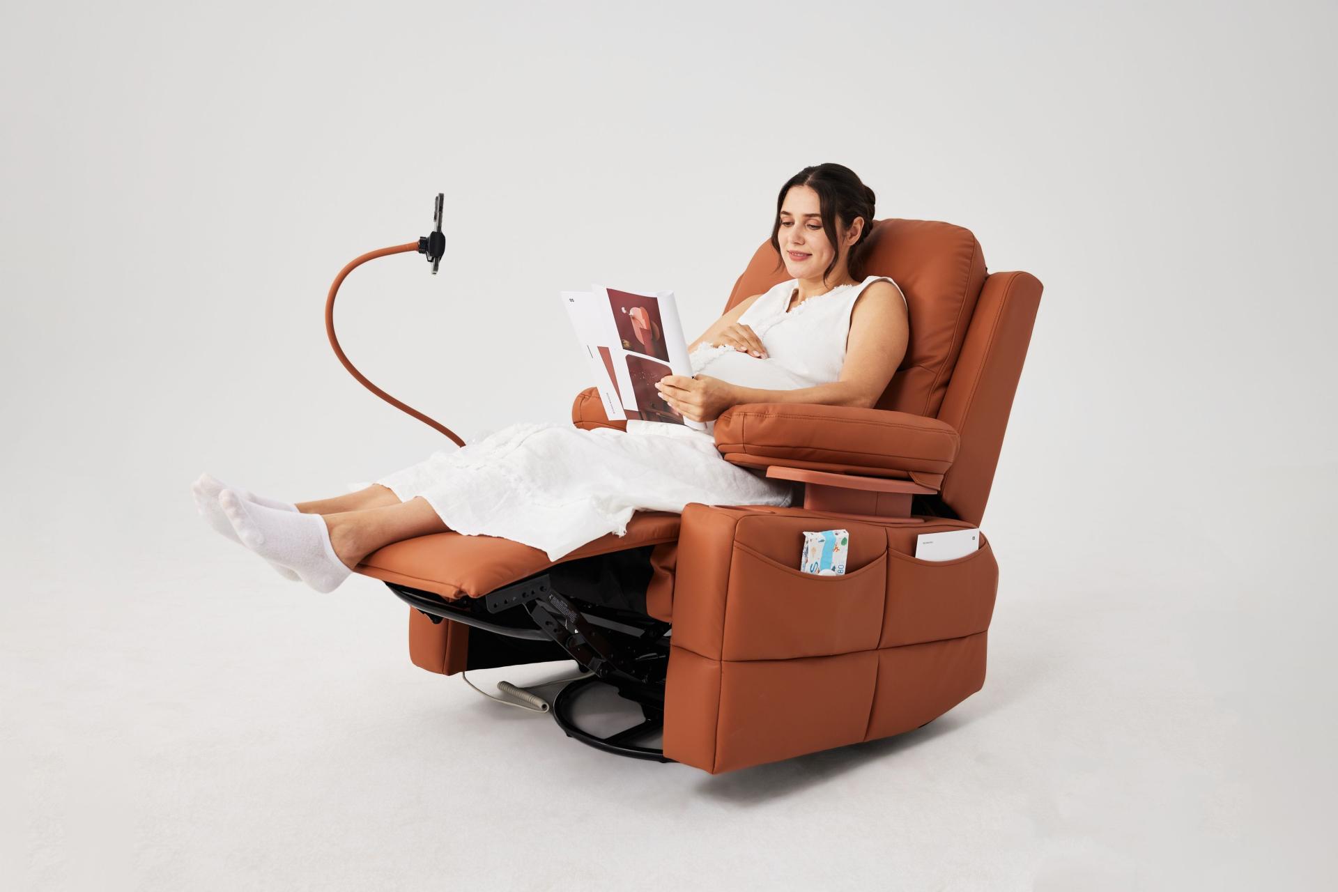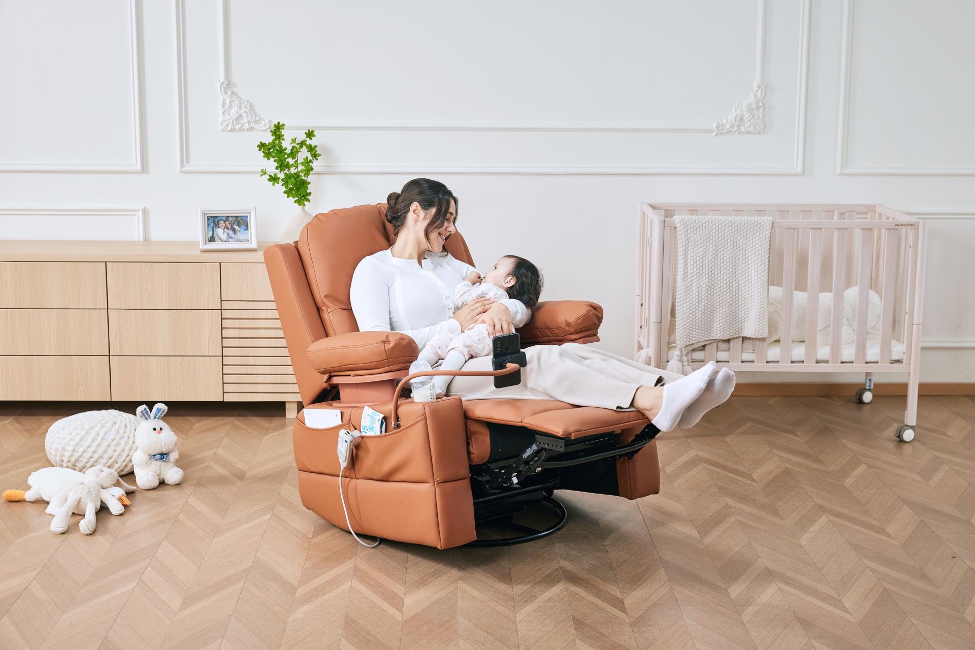 The Mamazing Lullapod Chair is thoughtfully designed for new mothers by integrating various advanced technologies and user-centric features, offering an exceptional user experience. As the core functional innovation, it achieves multi-angle adjustment, enabling precise modifications to both the backrest and footrest. Such adjustments can accommodate different breastfeeding positions and significantly alleviate pressure on the neck, back, and lumbar areas, thus markedly facilitating pregnancy and postnatal recovery. The retractable footrest allows for the elevation of the legs, promoting blood circulation and reducing leg oedema, which is particularly beneficial for the well-being of new mothers.