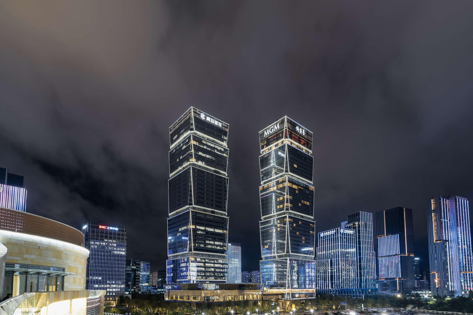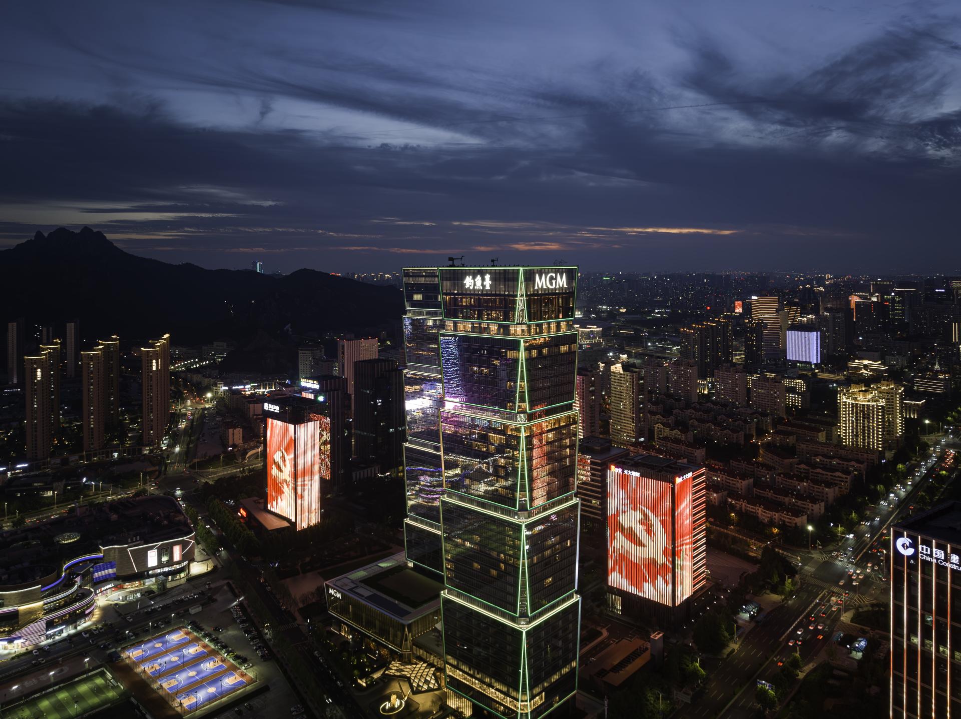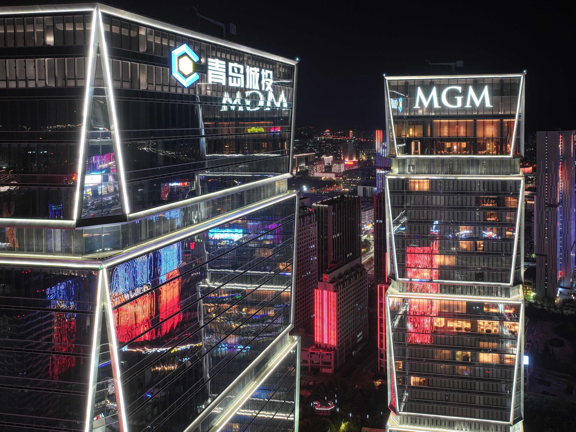 The project is located in the core area of Laoshan, Qingdao, and consists of two 201.8-meter twin towers. Among them, Tower 1 has two five-star hotels— MGM and Diaoyutai. Tower 2 is an intelligent Grade A office building. The architectural concept is inspired by "treasure boxes". Each tower is made up of five treasure boxes that are stacked to create a "higher" shape, conveying the artistic conception of traditional Chinese creations. Continuing the design concept of the treasure box, the lighting design at night tried to explore the different image from day time, making each treasure box as a unit, creating a visually floating three-dimensional effect. The south side of the podium is connected to a large public square, which hosts the annual beer festival, which is an important festival venue. The entire building is backed by a mountain and faces the sea, and it is next to the Shilaoren Beach. The geographic location add up the value of this project, a landmark surround by great nature and is able to gather people here for festival. The architectural concept is inspired by "treasure boxes". Each tower is made up of five treasure boxes that are stacked to create a "higher" shape, conveying the artistic conception of traditional Chinese creations. When you drive along the most beautiful sea side in Laoshan District, they stand in front of you with unique architectural shape. You will be amazed by the expressive power of the architect's art and the grandeur of buildings. Continuing the design concept of the treasure box, the lighting design at night tried to explore the different image from day time, making each treasure box as a unit, creating a visually floating three-dimensional effect. The lighting highlights the unique frame structure of the buildings, which is the main lighting strategy of all. Secondly, the outline emphasis of the detail on facade which keep the exterior less busy but very elegant at different angles and moments. The lighting also consider the difference of glow-out lighting from hotel and office.