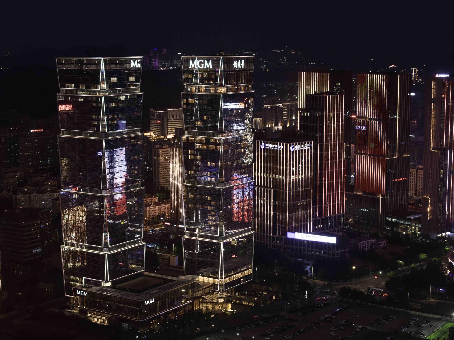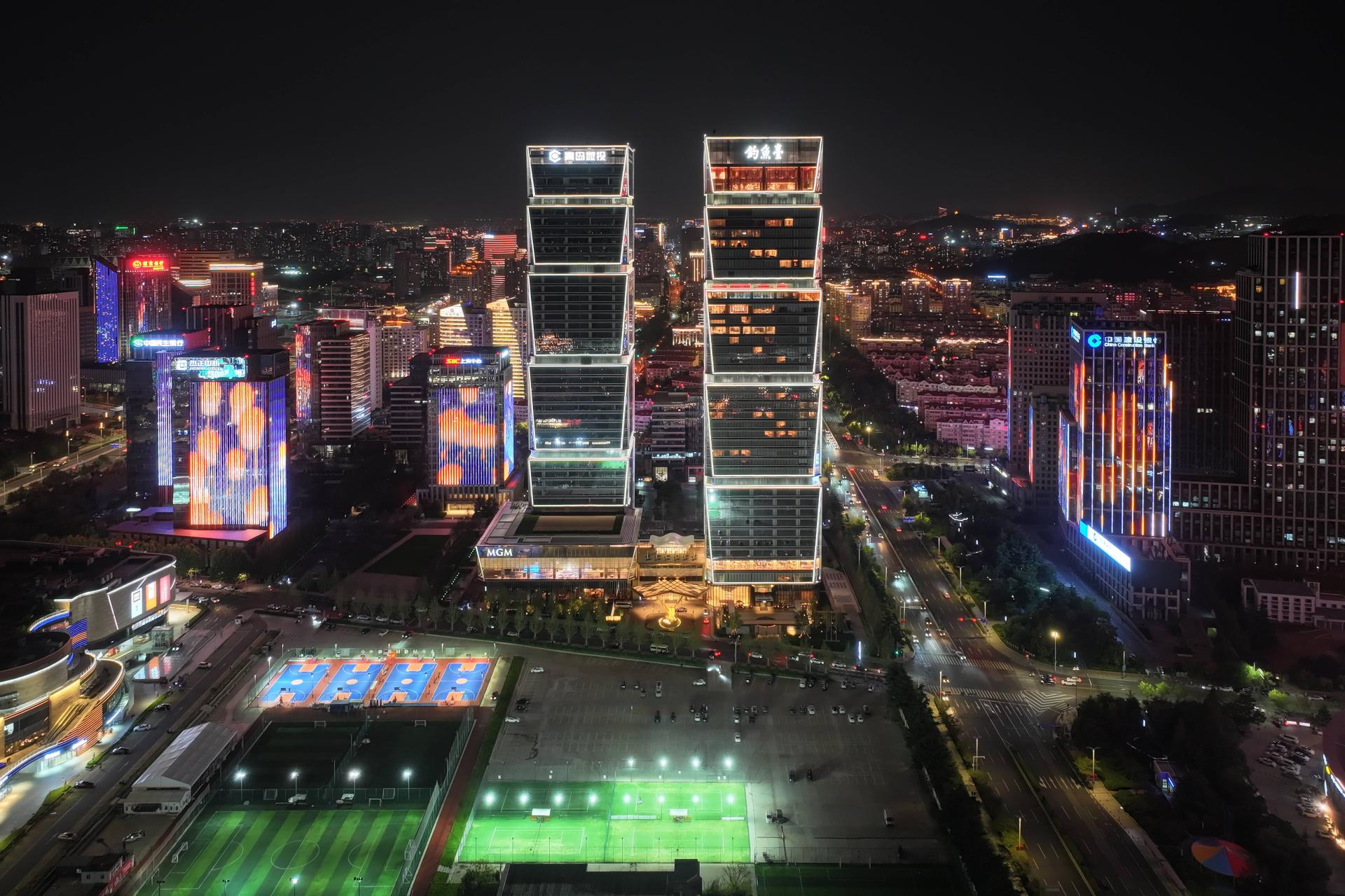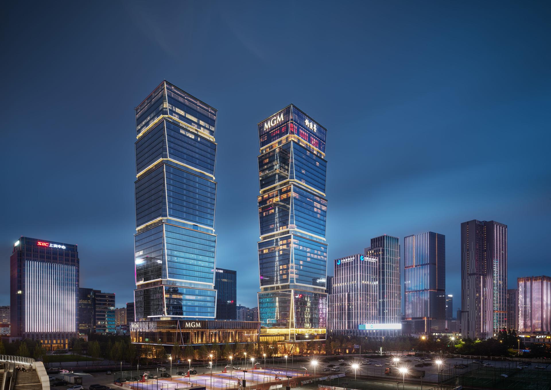 The project is located in the core area of Laoshan, Qingdao, and consists of two 201.8-meter twin towers. Among them, Tower 1 has two five-star hotels— MGM and Diaoyutai. Tower 2 is an intelligent Grade A office building. The architectural concept is inspired by "treasure boxes". Each tower is made up of five treasure boxes that are stacked to create a "higher" shape, conveying the artistic conception of traditional Chinese creations. Continuing the design concept of the treasure box, the lighting design at night tried to explore the different image from day time, making each treasure box as a unit, creating a visually floating three-dimensional effect. The south side of the podium is connected to a large public square, which hosts the annual beer festival, which is an important festival venue. The entire building is backed by a mountain and faces the sea, and it is next to the Shilaoren Beach. The geographic location add up the value of this project, a landmark surround by great nature and is able to gather people here for festival. The architectural concept is inspired by "treasure boxes". Each tower is made up of five treasure boxes that are stacked to create a "higher" shape, conveying the artistic conception of traditional Chinese creations. When you drive along the most beautiful sea side in Laoshan District, they stand in front of you with unique architectural shape. You will be amazed by the expressive power of the architect's art and the grandeur of buildings. Continuing the design concept of the treasure box, the lighting design at night tried to explore the different image from day time, making each treasure box as a unit, creating a visually floating three-dimensional effect. The lighting highlights the unique frame structure of the buildings, which is the main lighting strategy of all. Secondly, the outline emphasis of the detail on facade which keep the exterior less busy but very elegant at different angles and moments. The lighting also consider the difference of glow-out lighting from hotel and office.