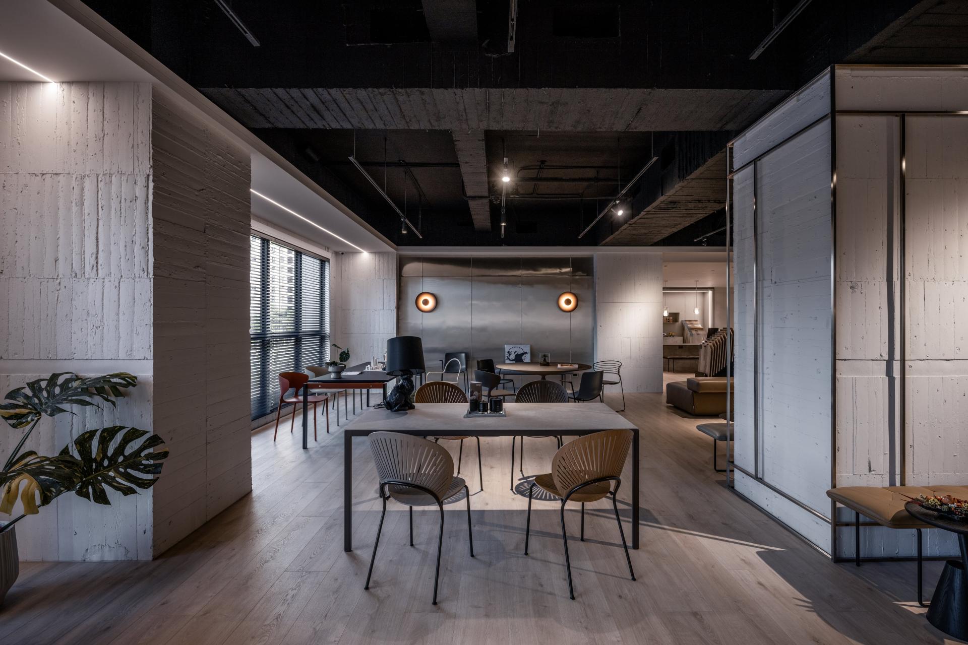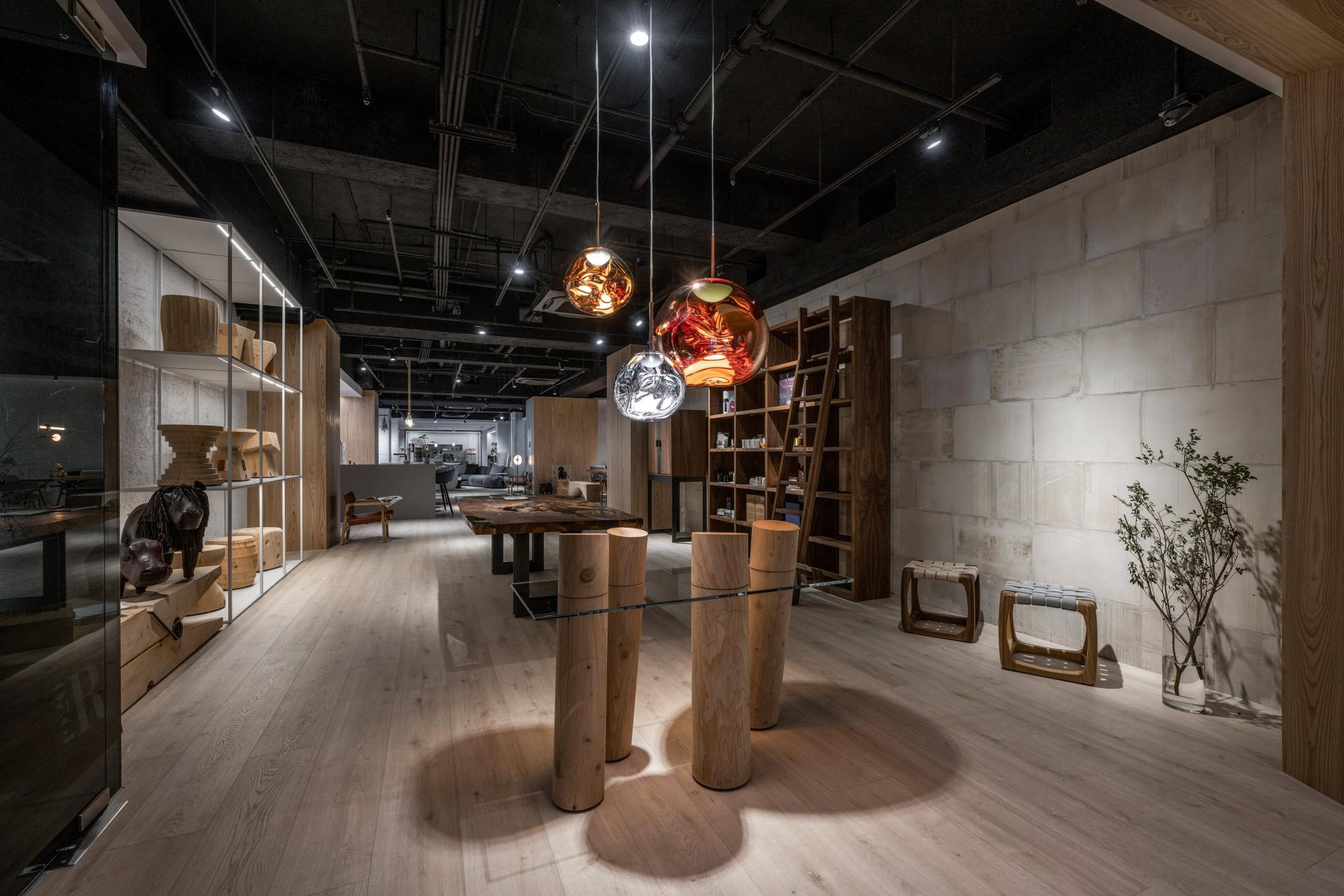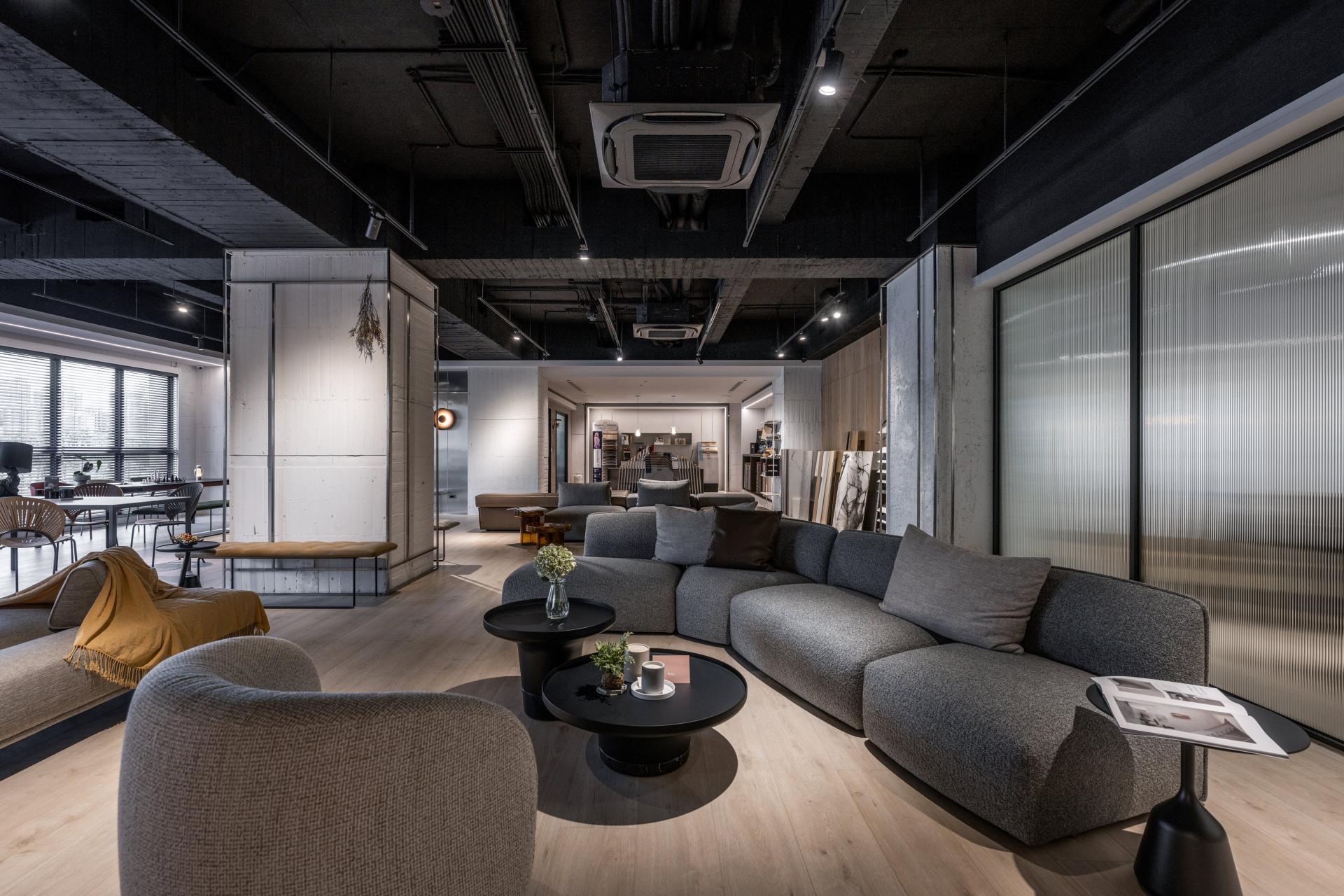 N.C Studio features a multi-branded European item selection, including paints and flooring. To showcase the refinement of premium original brands, the design avoids extensive decoration. Instead, the furniture itself defines the visual experience, allowing old and new styles to blend seamlessly. The space and layout are highly flexible and dynamic, allowing for free-flowing tours. Avoiding using clear sections, but instead using items themselves to define the areas, creates a relaxed experience. With a diverse range of furniture, the color scheme is kept subtle, allowing the items to showcase their unique features and natural colors.