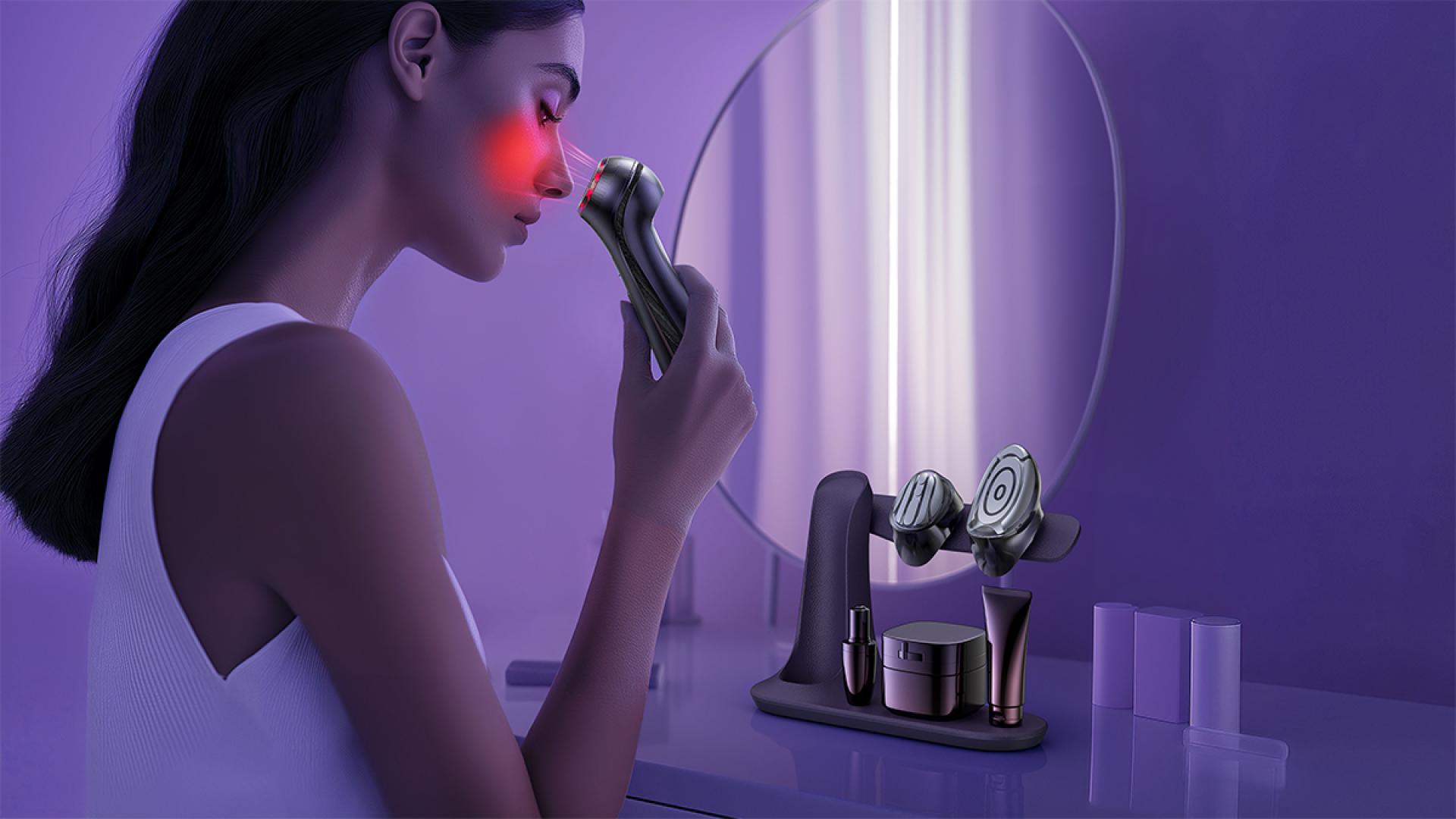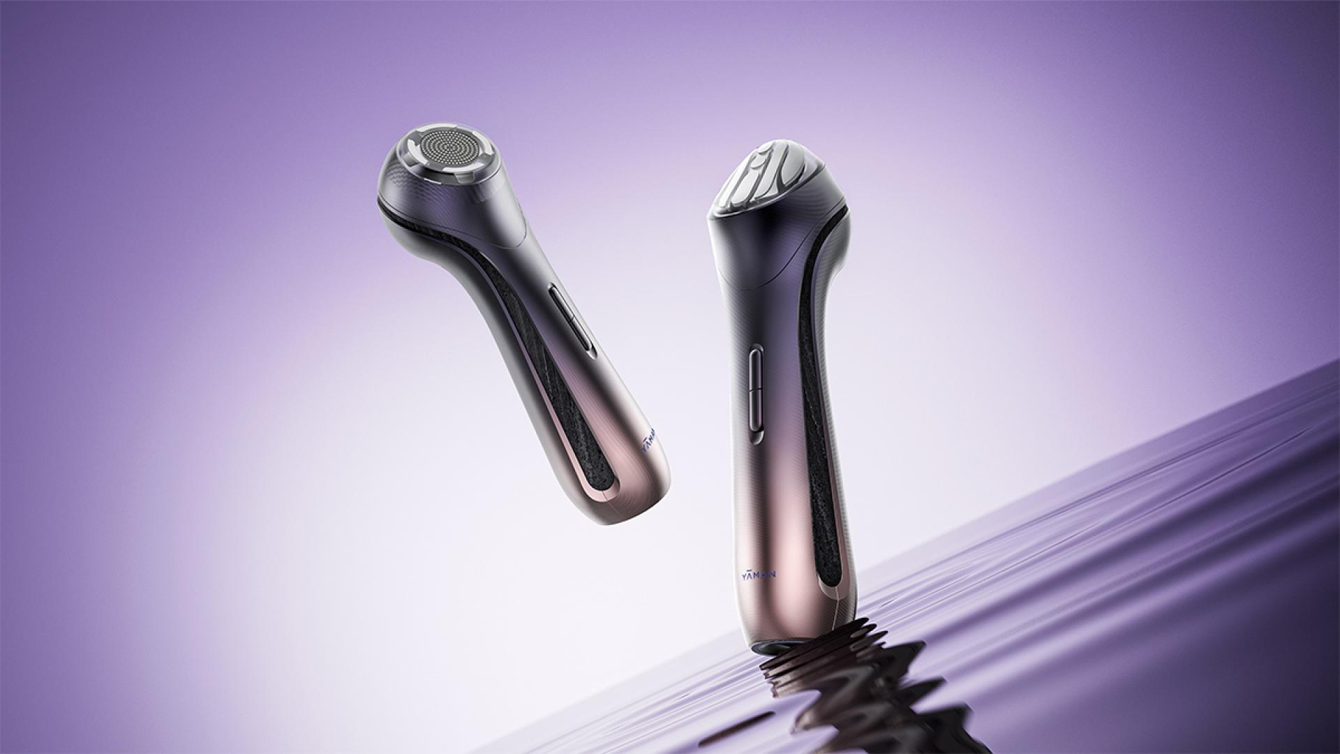 The Yaman S18 beauty instrument boasts a modern and high-tech appearance, embodying the fusion of elegant design and practical functionality. The entire body features a purple electroplated shell. The decorative parts on both sides are imitation die-cast carbon fiber texture effect. This design is inspired by sports cars, showcasing a unique sense of individuality and energetic. By using a process that combines in-mold texturing with electroplating, we achieve a glossy yet matte finish. When refracted the varying depths of the coating texture, the fingerprints and other organic substances on the surface will be minimized visually. The coating features a special micro-nano structure that prevents fingerprints and oil from adhering tightly, reducing their visibility and light scattering, thereby avoiding fingerprint. Notably, we have meticulously designed precise textures on the outer ring of the gold microneedle head, enhancing its precision and exceptional functionality.
