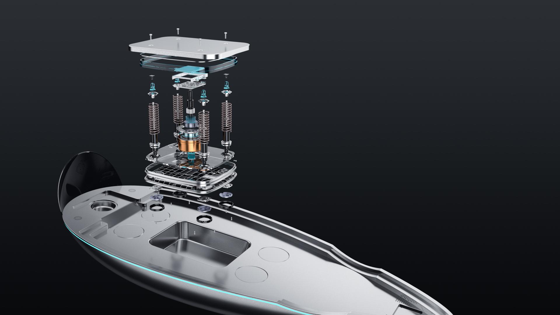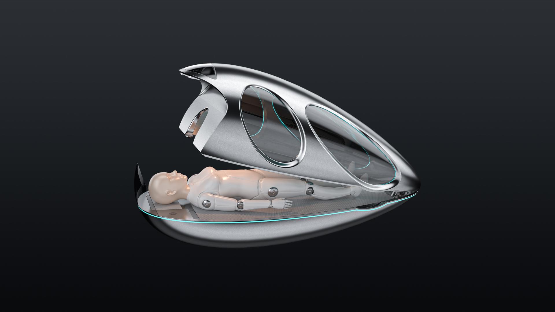 Inspired by the "droplet" concept from Liu Cixin's sci-fi epic "The Three-Body Problem," the smooth teardrop shape of the KKhan Rhythm Cab not only enhances the product’s sense of technology and uniqueness but also symbolizes vitality and harmony with nature. The unique opening "window" on the side of the cabin adds a touch of dynamism. This design not only gives the product a distinctive identity but also embodies the brand’s spirit of exploring future health technologies.