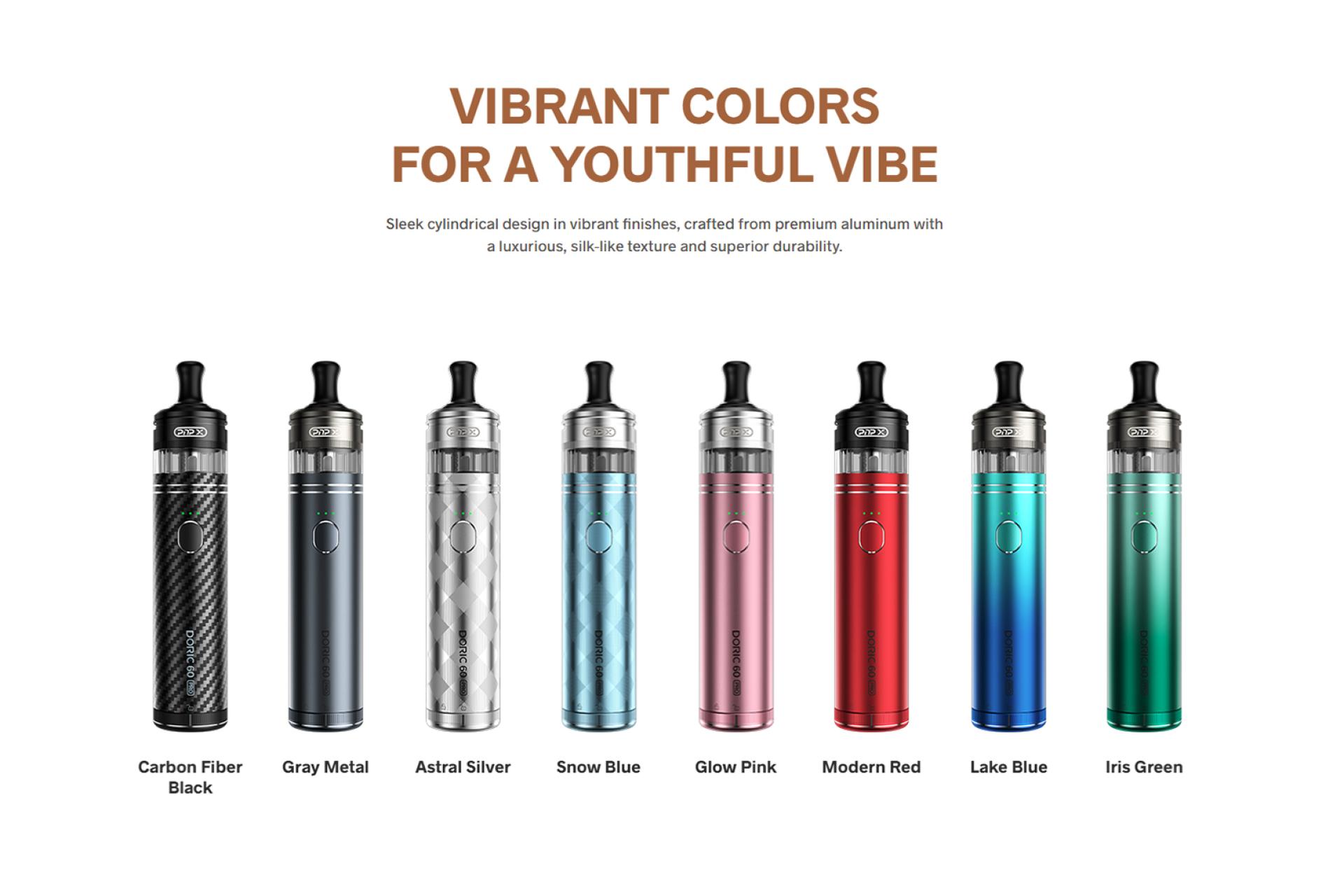 The DORIC 60 Pro features with its sleek cylindrical design, available in an array of vibrant finishes to complement any vaper's style. Crafted from premium aluminium, it exudes a luxurious, silk-like texture while providing superior resistance to shocks and scratches. The textured, anti-slip base ensures the device remains secure in hand, offering both style and stability.
