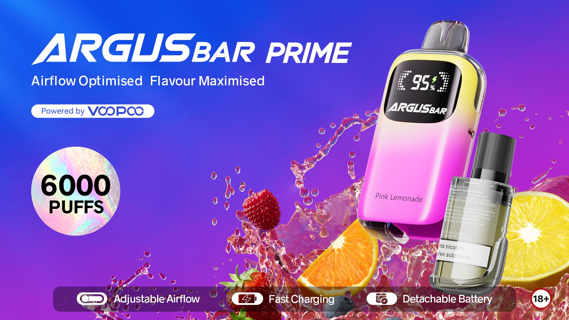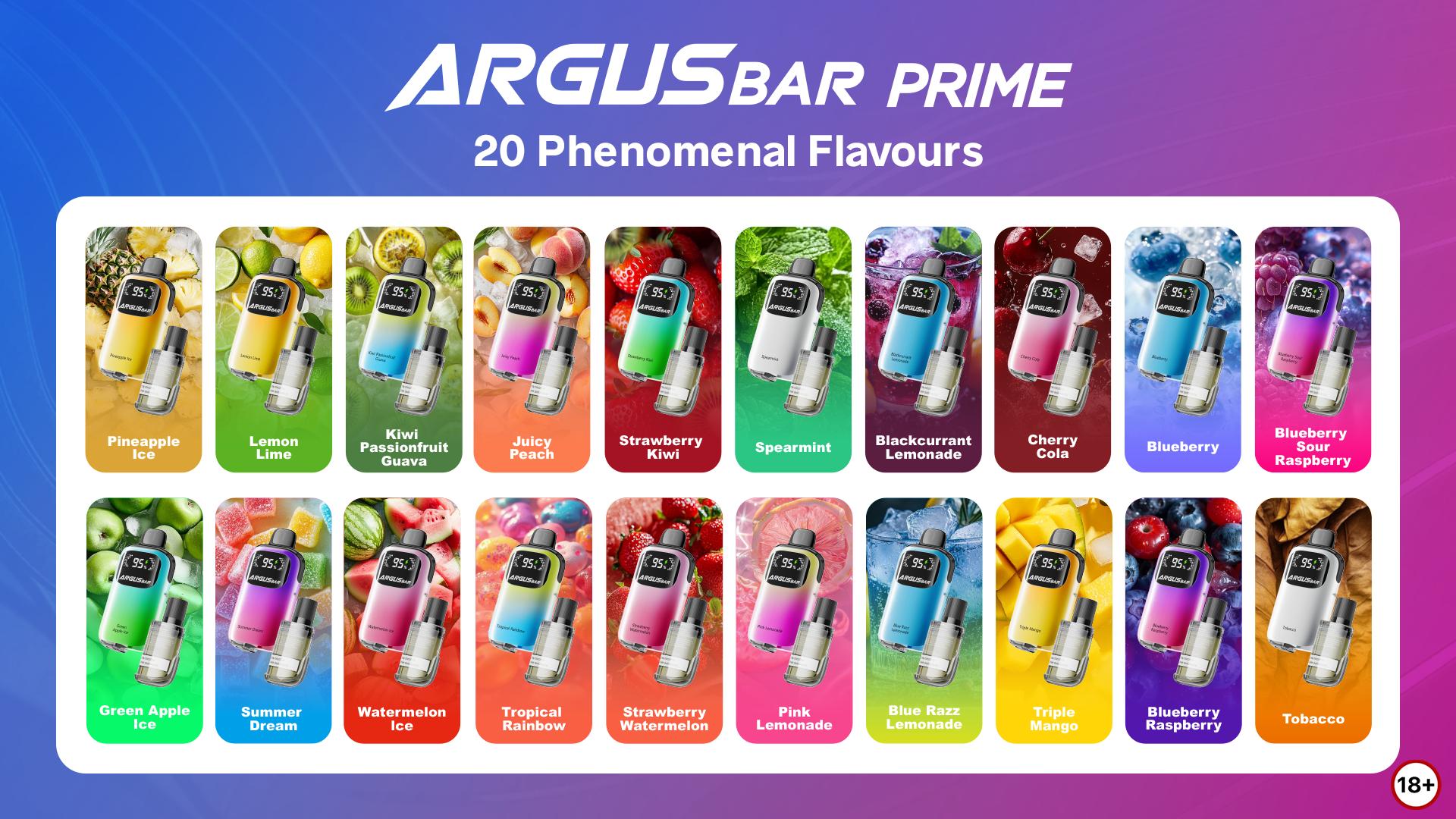 ARGUSBAR PRIME also comes with 20 different flavors, aiming to set a new standard in vaping. It's now available in the UK, offering a great mix of functionality and flavor.