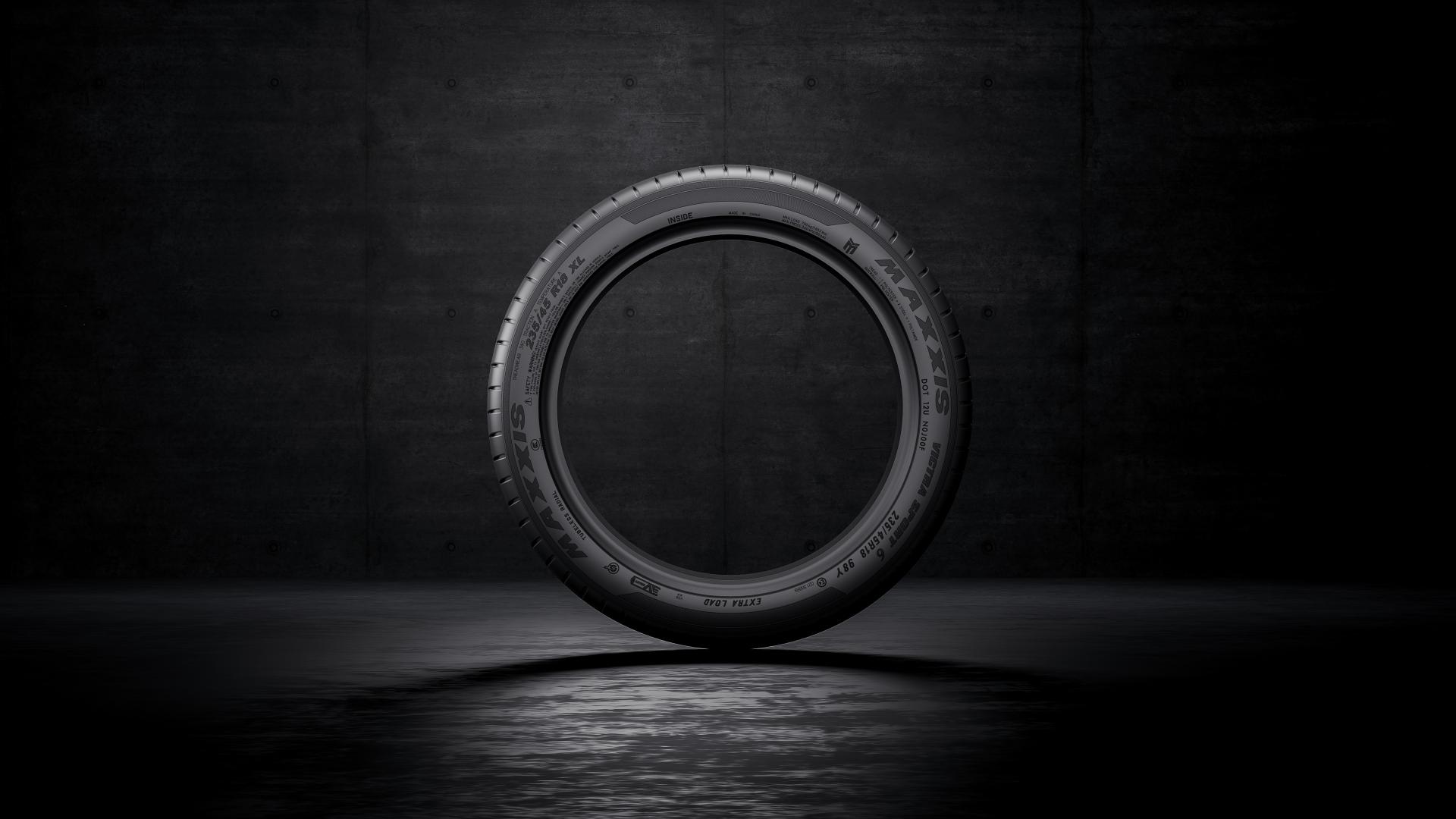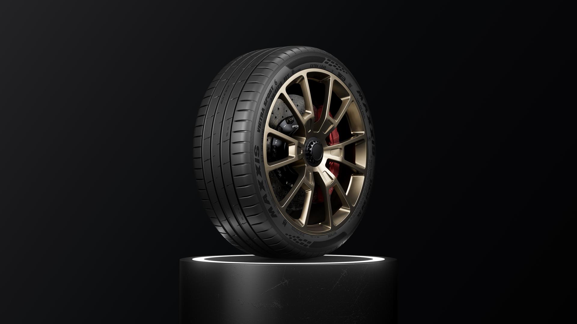 MAXXIS VICTRA SPORT 6 tire showcases a unique lightning-shaped tread pattern that significantly enhances its wear resistance while visually emphasizing the dynamic power of UHP performance tires.
