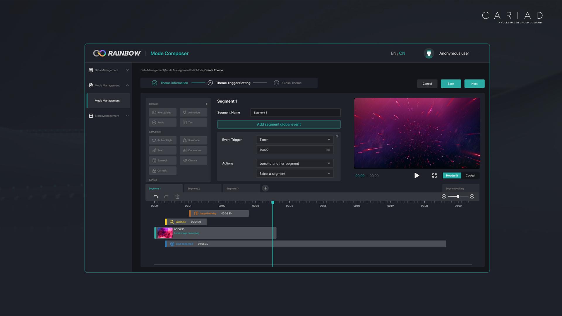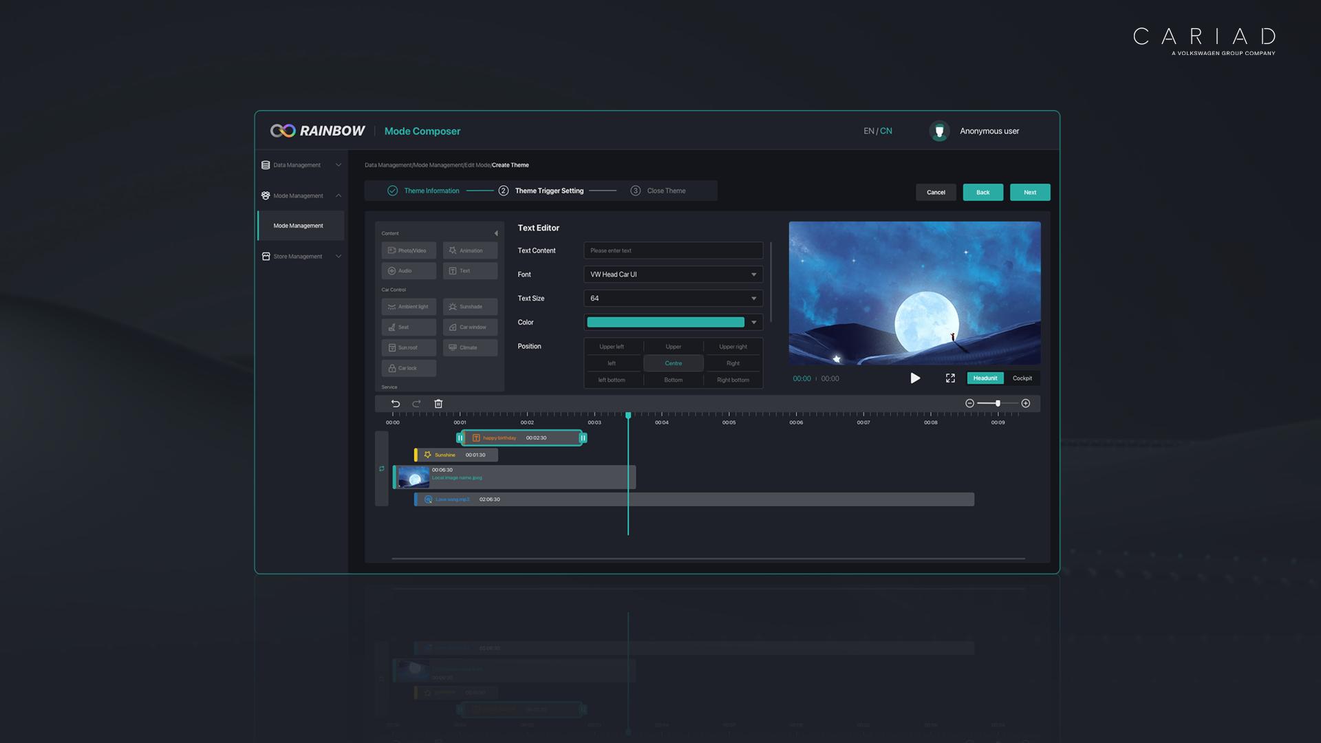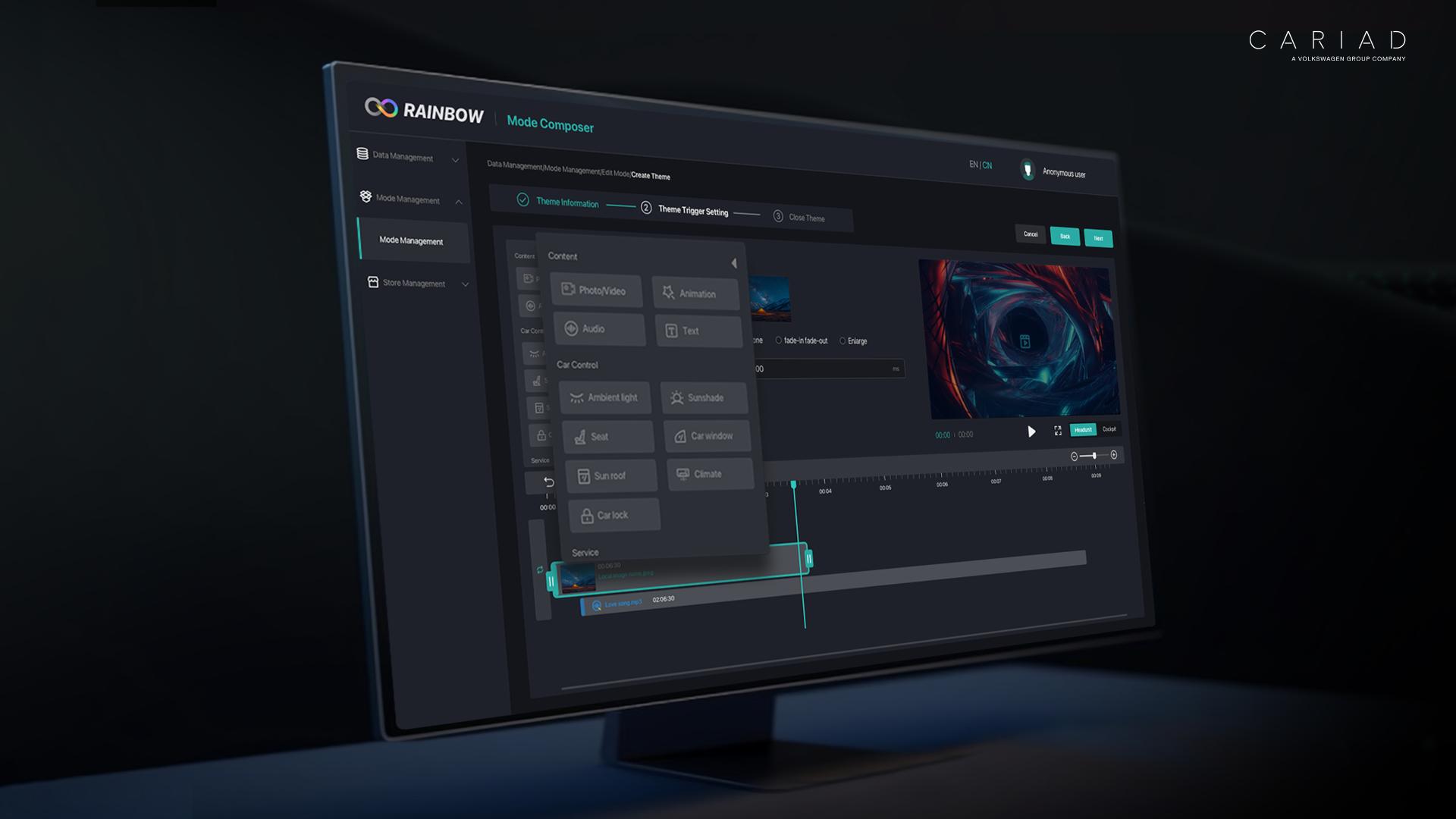 Rainbow redefines the in-car experience by empowering users with a customizable platform that turns vehicles into versatile personal spaces. The platform brings an innovative, user-friendly interface to anyone, enabling the creation of unique in-car modes beyond traditional presets, making every journey a customizable experience.