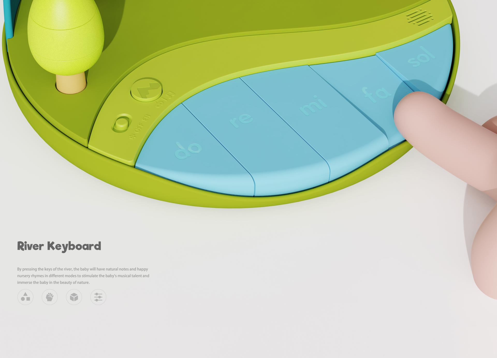 Pressing the river keys will sound notes and nursery rhymes to enhance the musicality