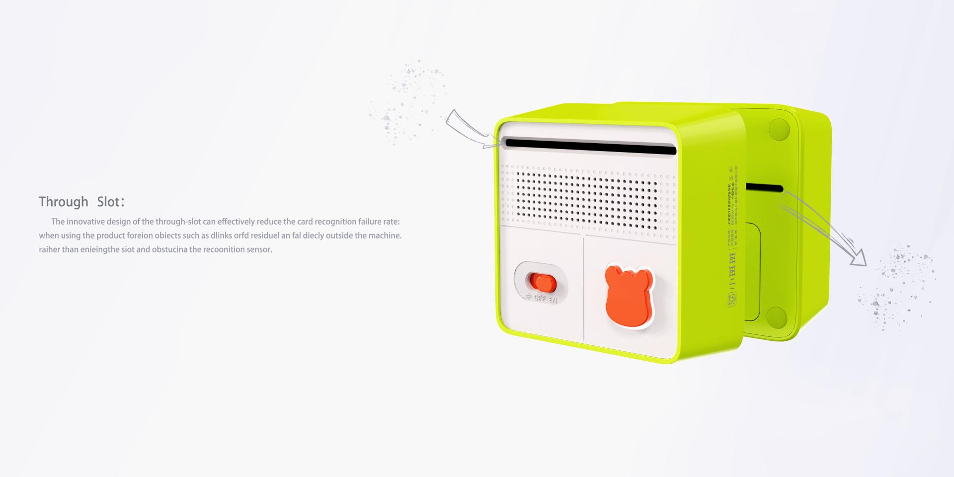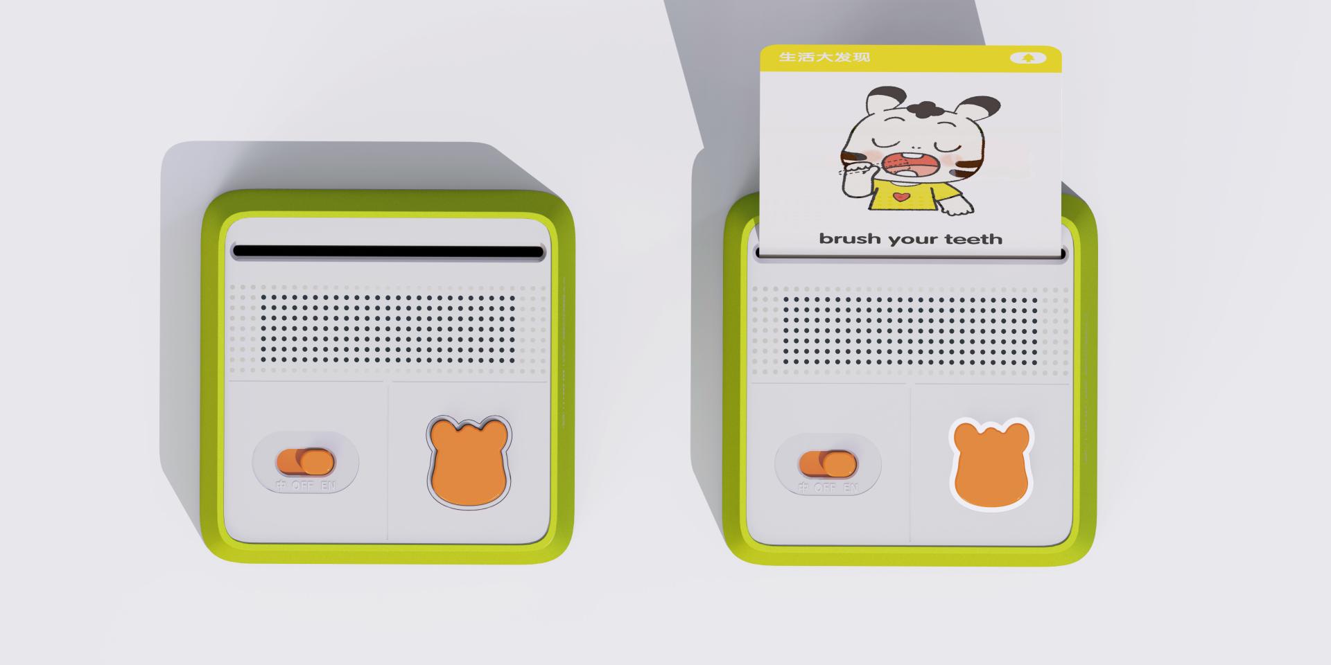 Ease of Use: The toy has a simple, three-dimensional geometric shape, primarily in soft green and white with accents of brand orange. By inserting different cards, children can play a range of interactive instructions and music, enabling them to independently explore a world of sounds and knowledge with just a simple card insertion. The toy is designed to be placed on a flat surface, so it doesn't need to be held during play. Once a card is inserted, it tilts slightly upward, making it easy for young users to see images and text.