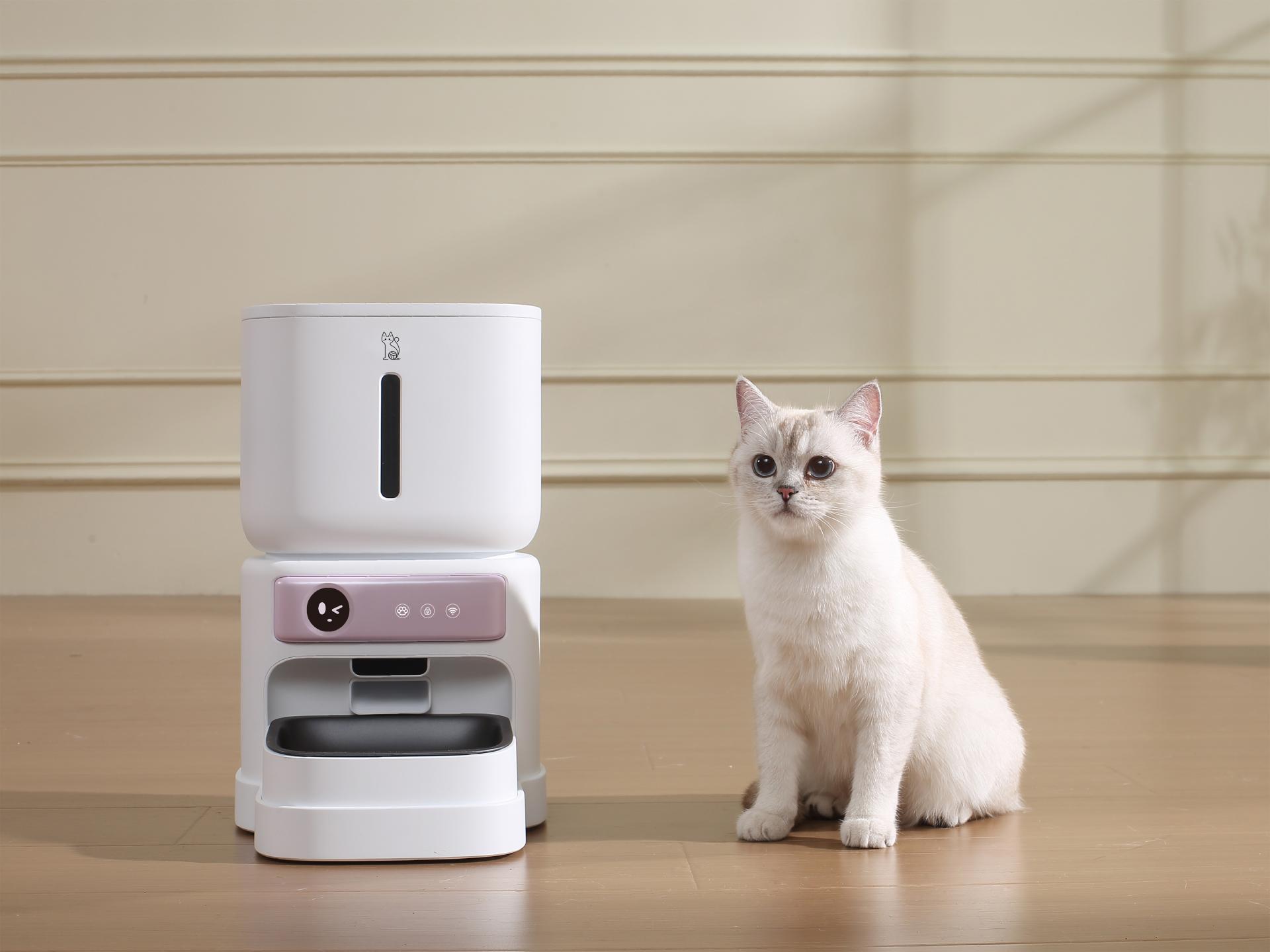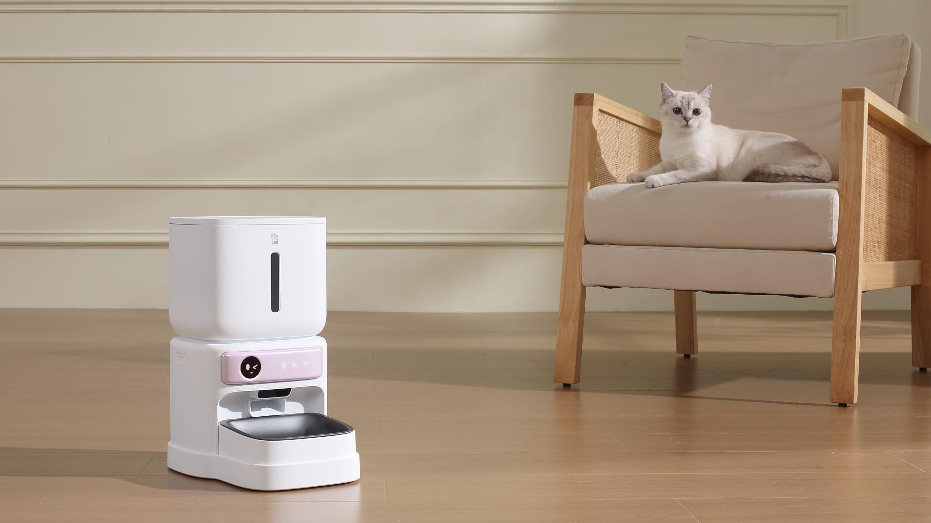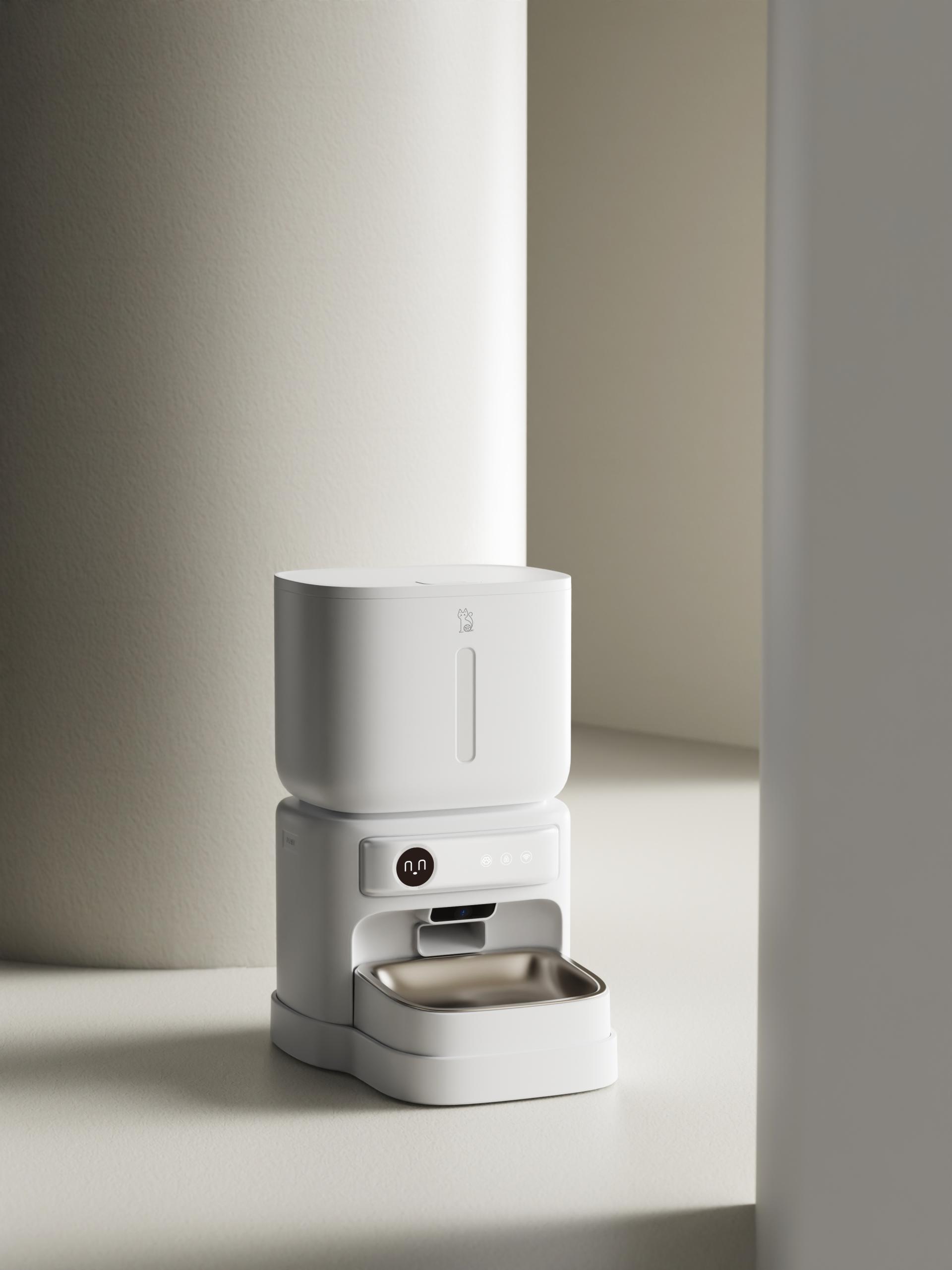 Aesthetically, the feeder's sleek, modern design with smooth contours, low-saturation colors, and large rounded corners reflects the warm and friendly nature of pet care products while harmoniously blending into any interior styles.
