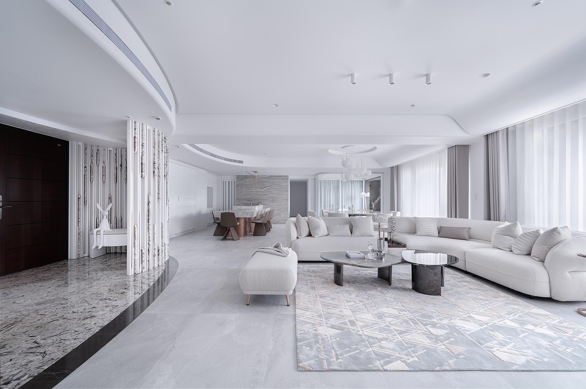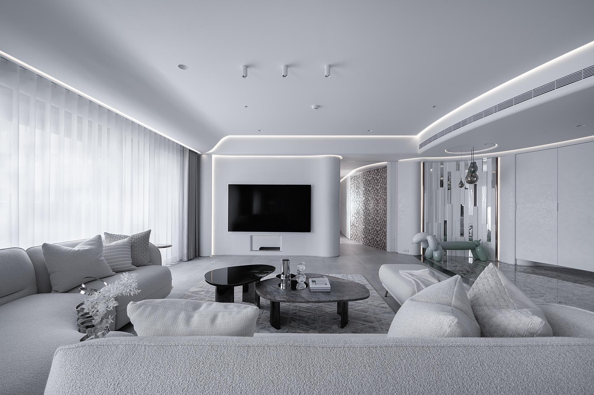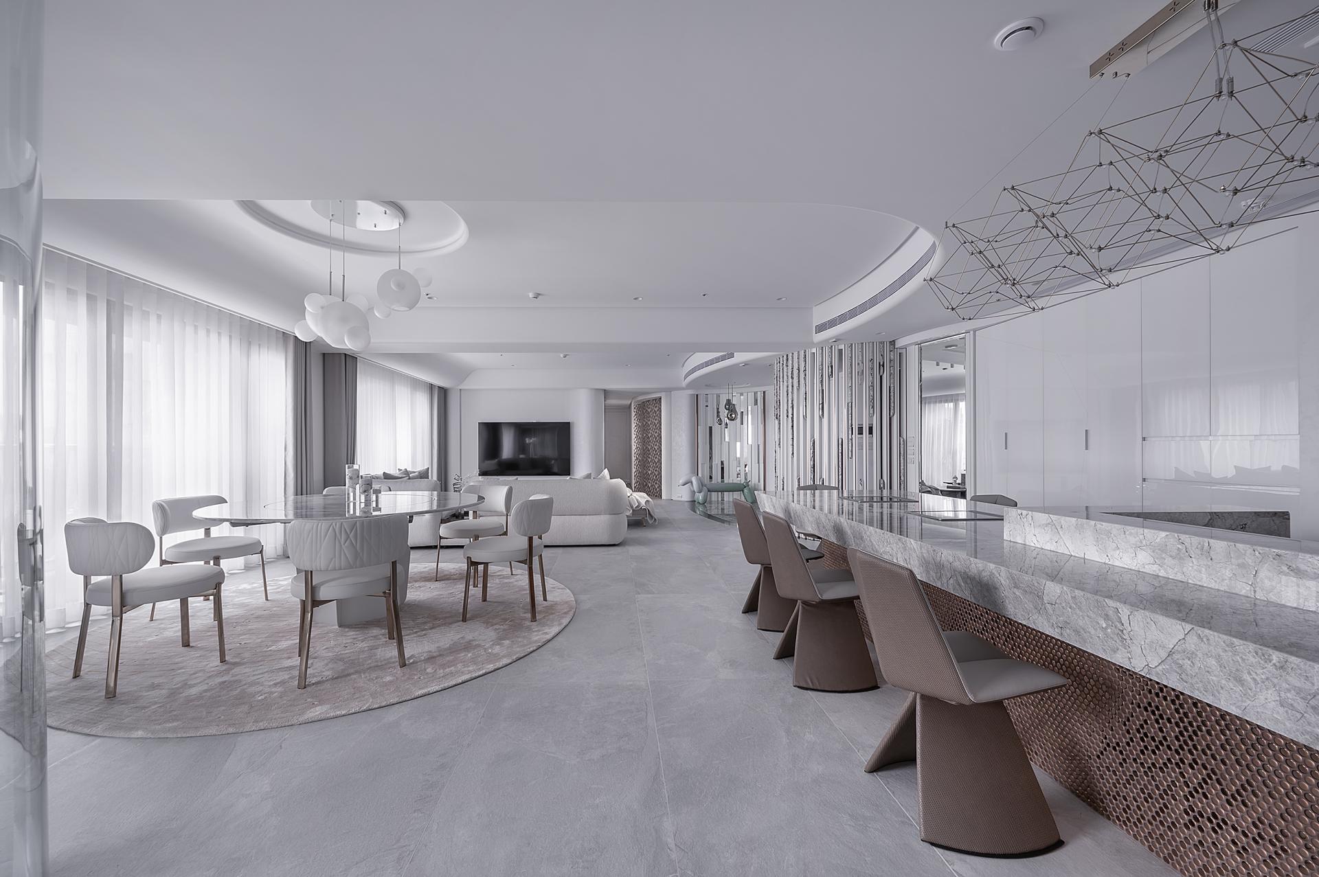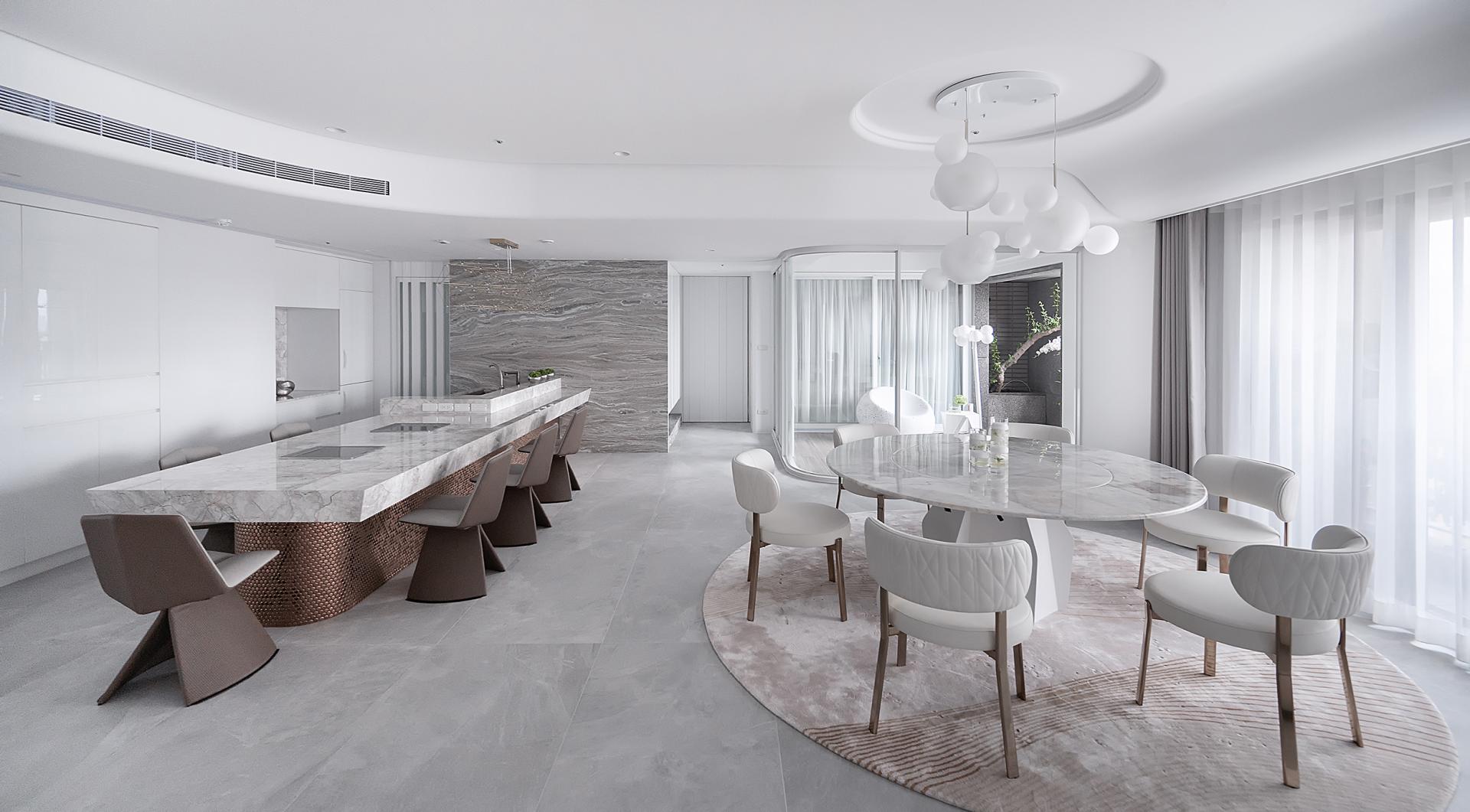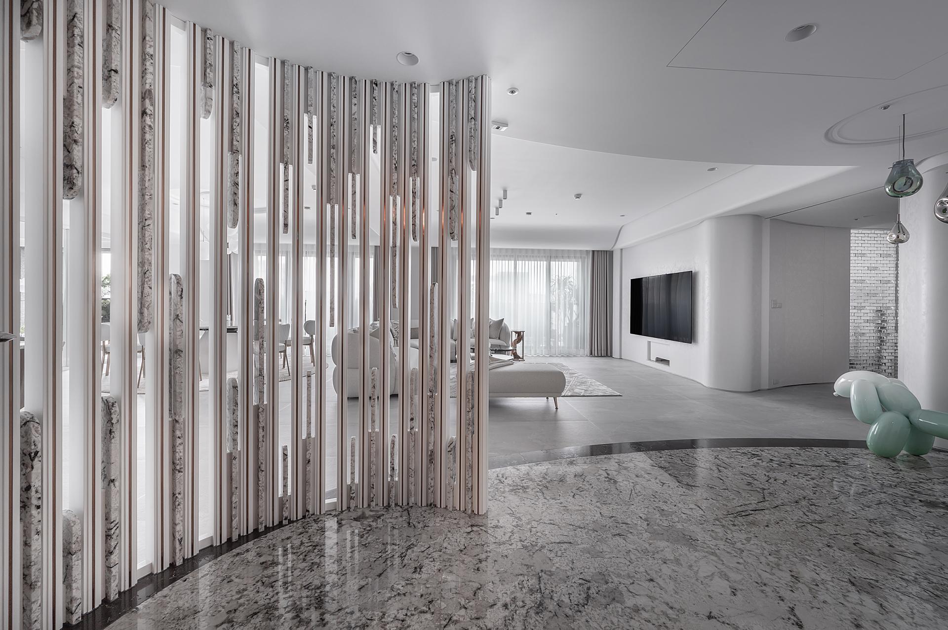 The site is an old apartment. The name, “Chantilly”, comes from the owner's preference for white and the view of the mountains from the windows. The designer incorporated natural elements into the interior and the owner's fondness for music. The foyer is a fusion of modernity and mountain scenery as if surrounded by the curves of heaven and earth. The overall flow of the space is dominated by a curved design. The designer did not limit the original characteristics of the material to bring in the natural curves so that the hard characteristics are transformed into flexible curves to realize the perfect blend of nature and movement.