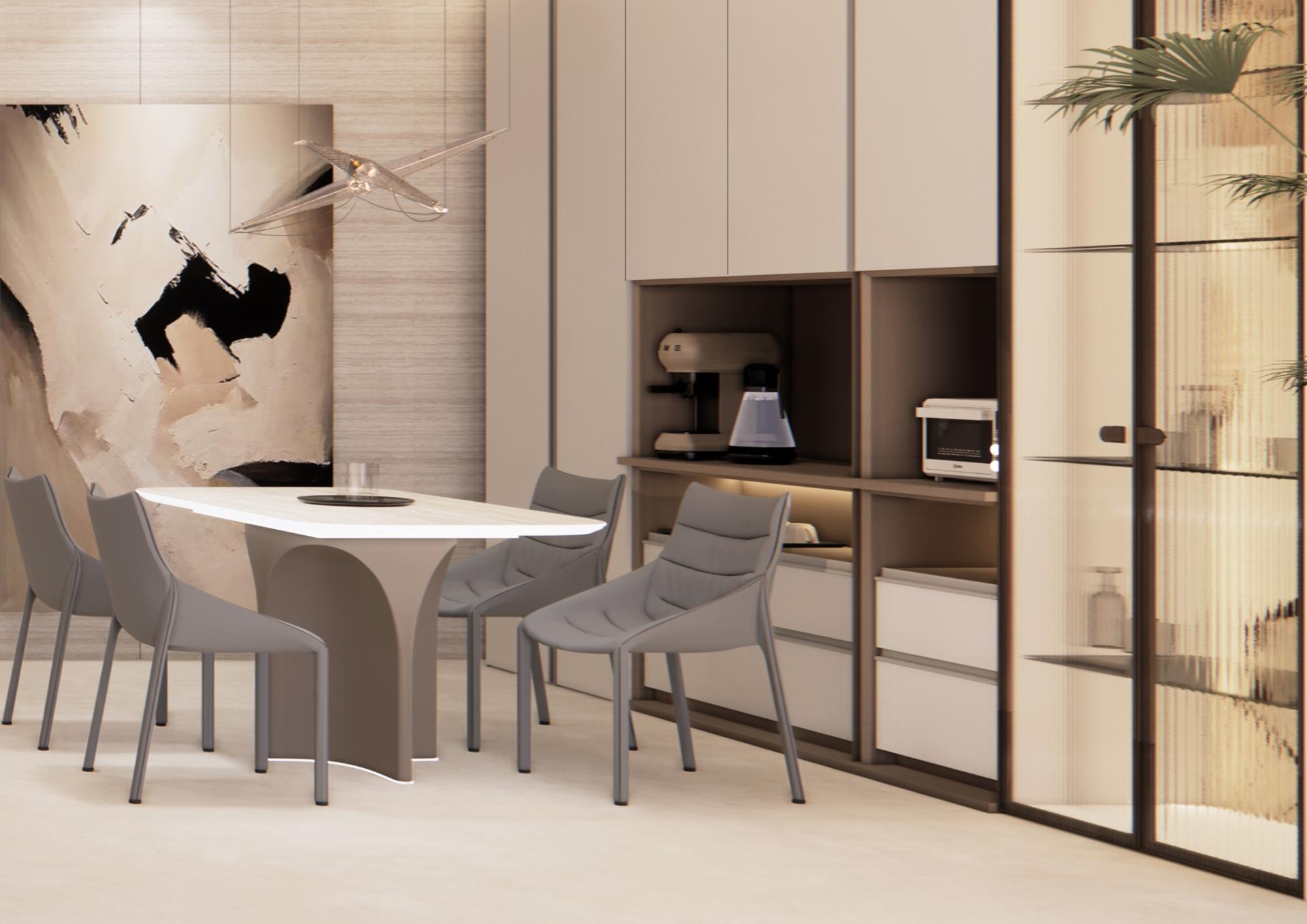Infinite Life drew upon Jiangnan culture and natural elements, mirroring the understated earth tones from Liangzhu civilization, the elegance of West Lake lotus leaves, and the light and shadow interplay on traditional paper umbrellas. Through diverse material employments and a multi-layered design strategy, the project beautifully blends traditional and modern aesthetics while integrating natural and cultural elements, creating a harmonious visual effect. The warm dusk colour palette fosters an inviting atmosphere at home. Coupled with colour blocks of the same scheme, the design energizes the space not only visually but also effectively defines different functional areas.